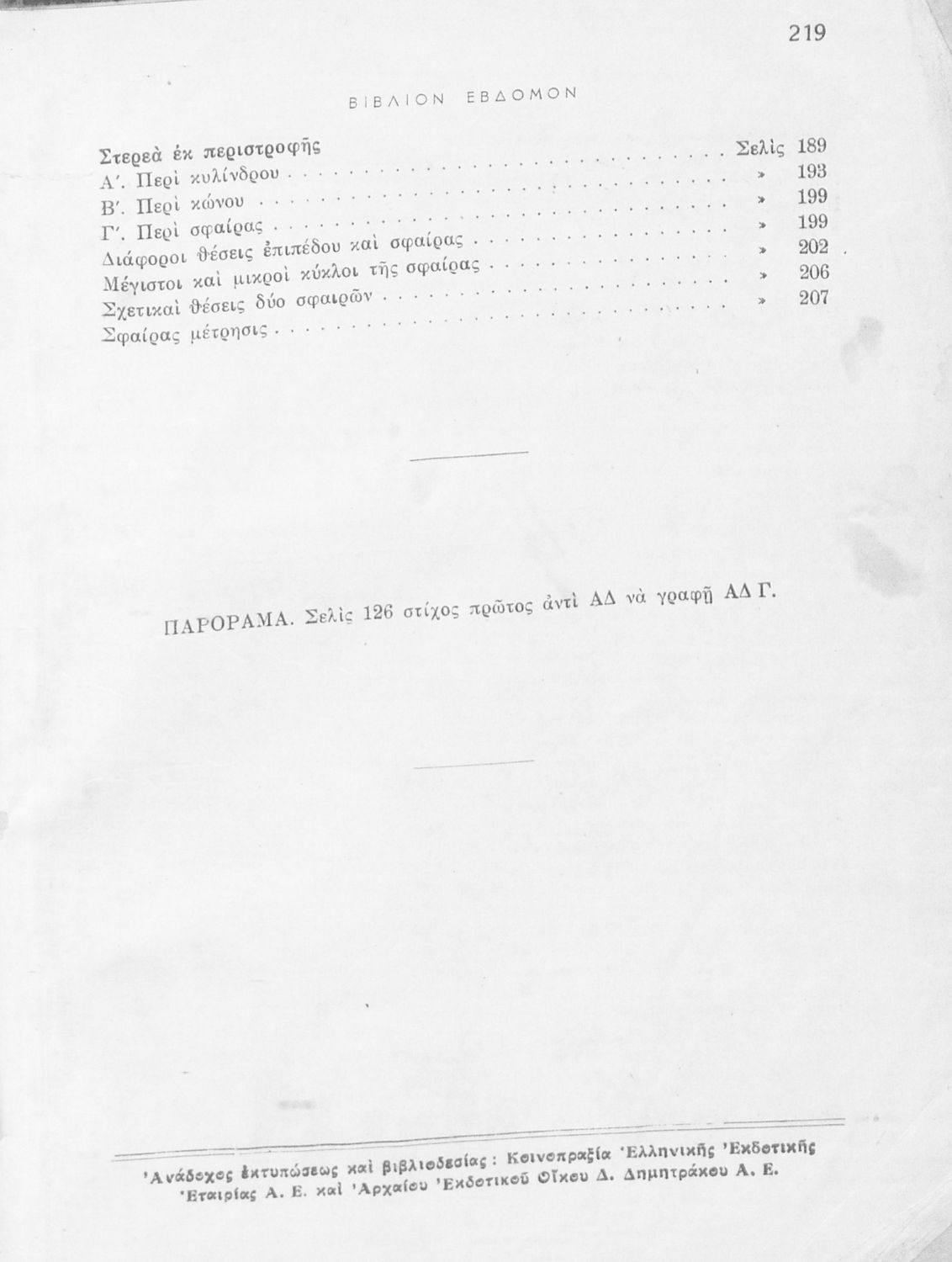 Τίτλος: Θεωρητική γεωμετρία δια τας ανωτέρας τάξεις των Γυμνασίων νέου τύπου