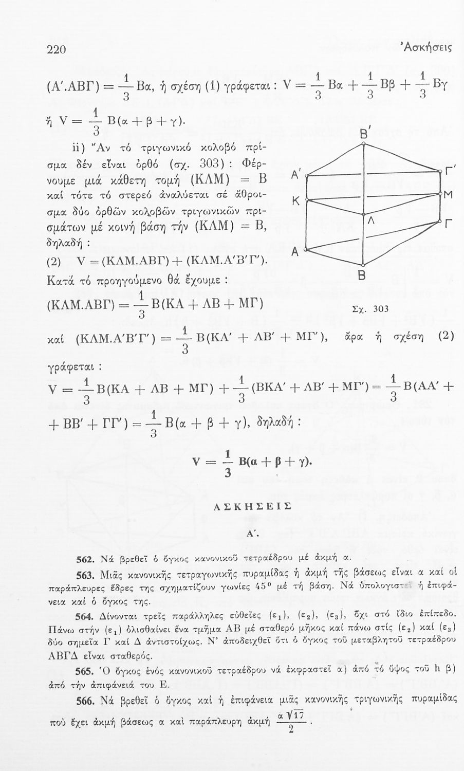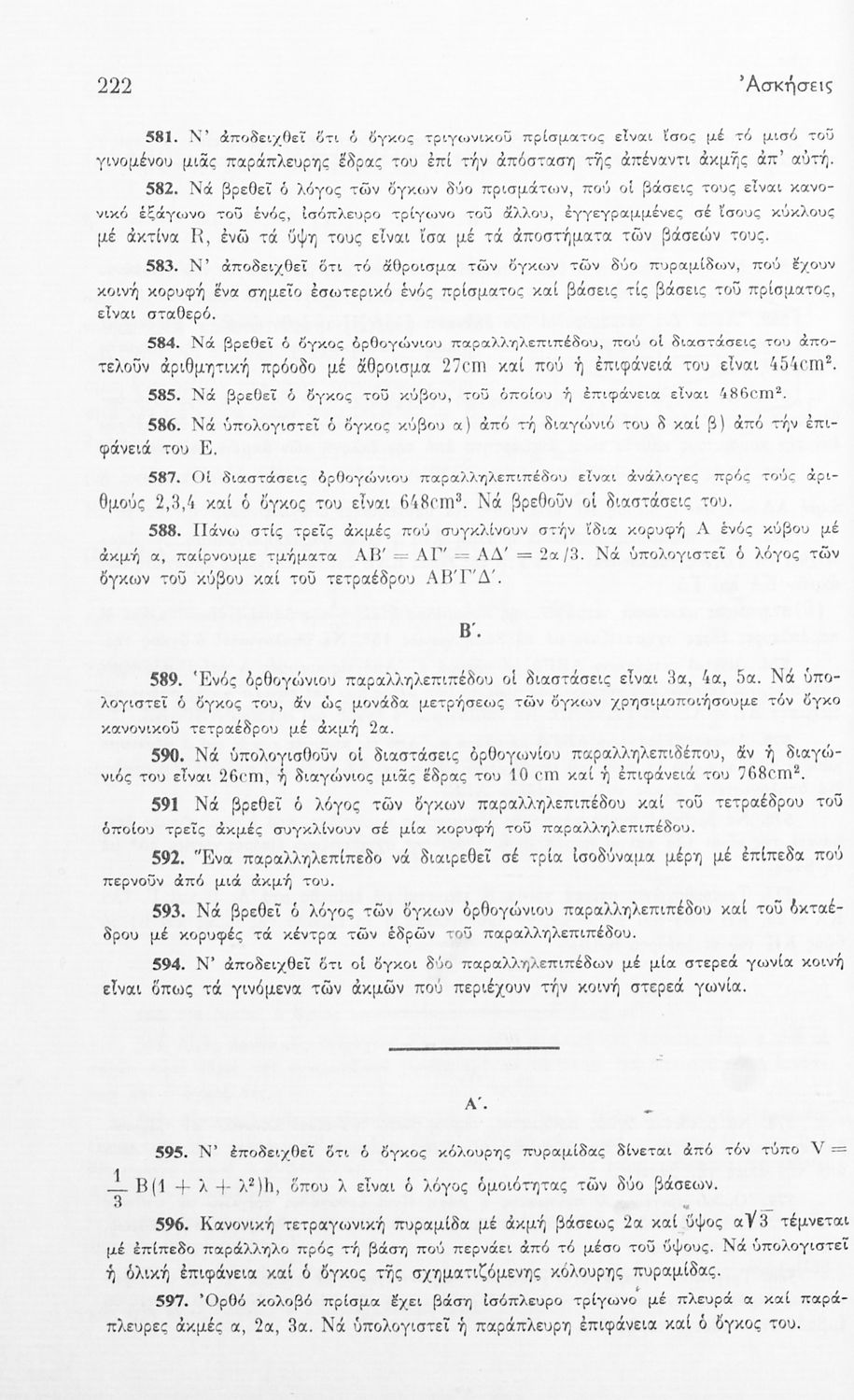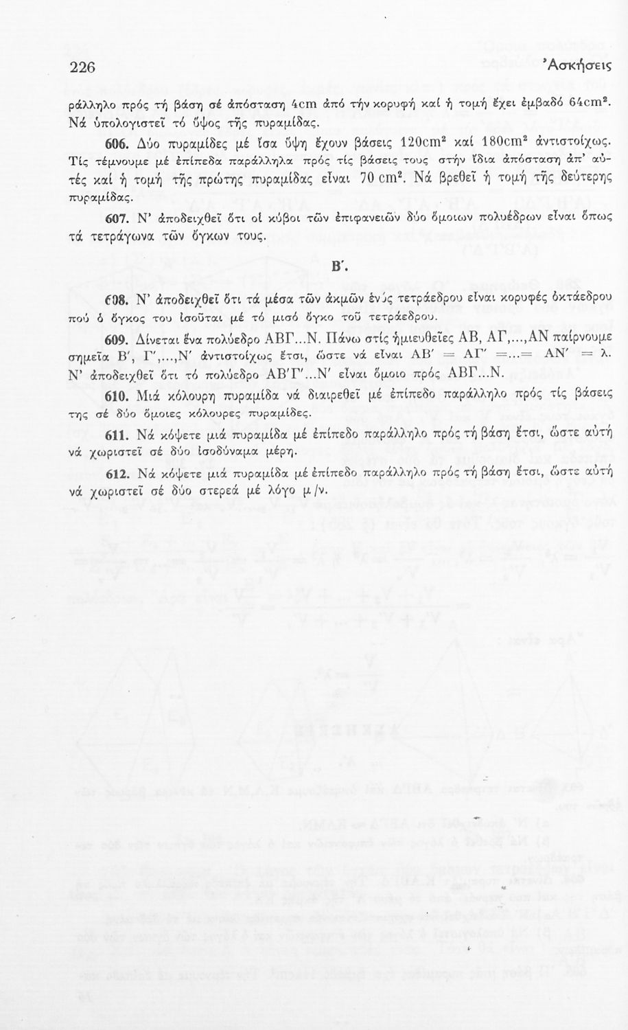Σχολικό εγχειρίδιο Γεωμετρίας για τις Α΄, Β΄ και Γ΄ Λυκείου που περιλαμβάνει θεωρία και ασκήσεις και είναι χωρισμένο σε Επιπεδομετρία και Στερεομετρία.