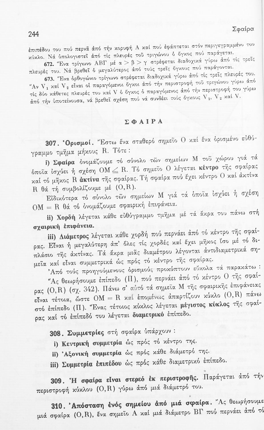 Σχολικό εγχειρίδιο Γεωμετρίας για τις Α΄, Β΄ και Γ΄ Λυκείου που περιλαμβάνει θεωρία και ασκήσεις και είναι χωρισμένο σε Επιπεδομετρία και Στερεομετρία.
