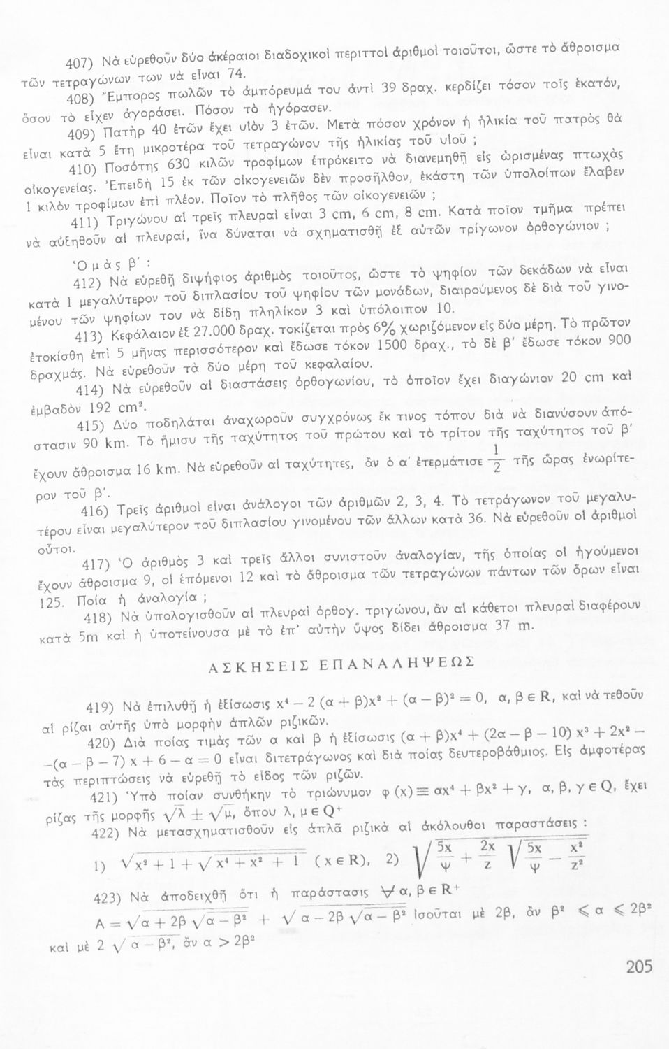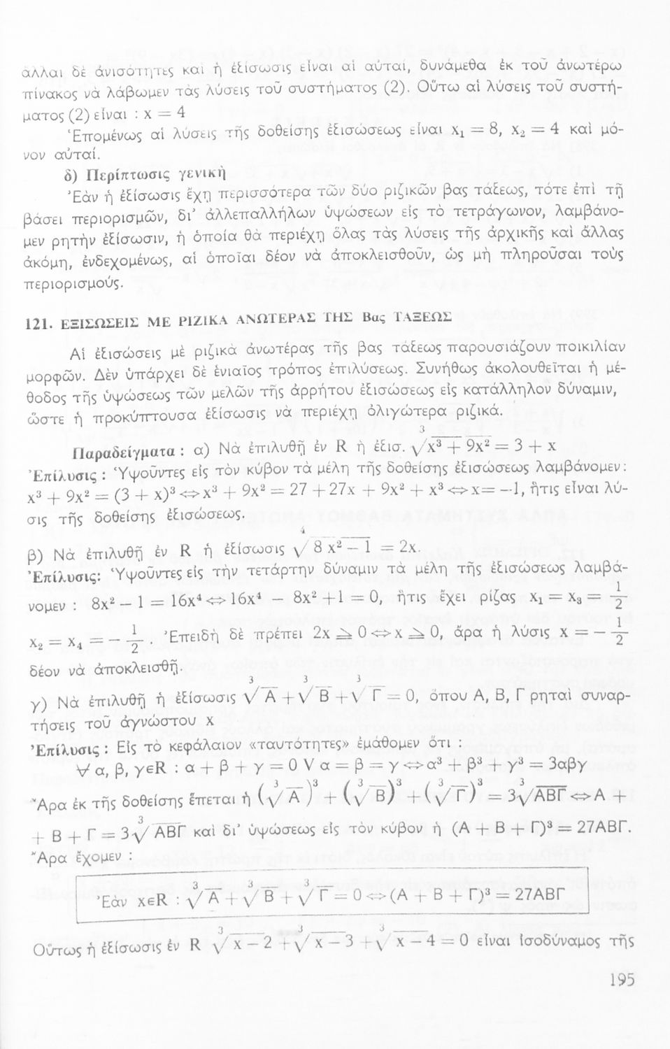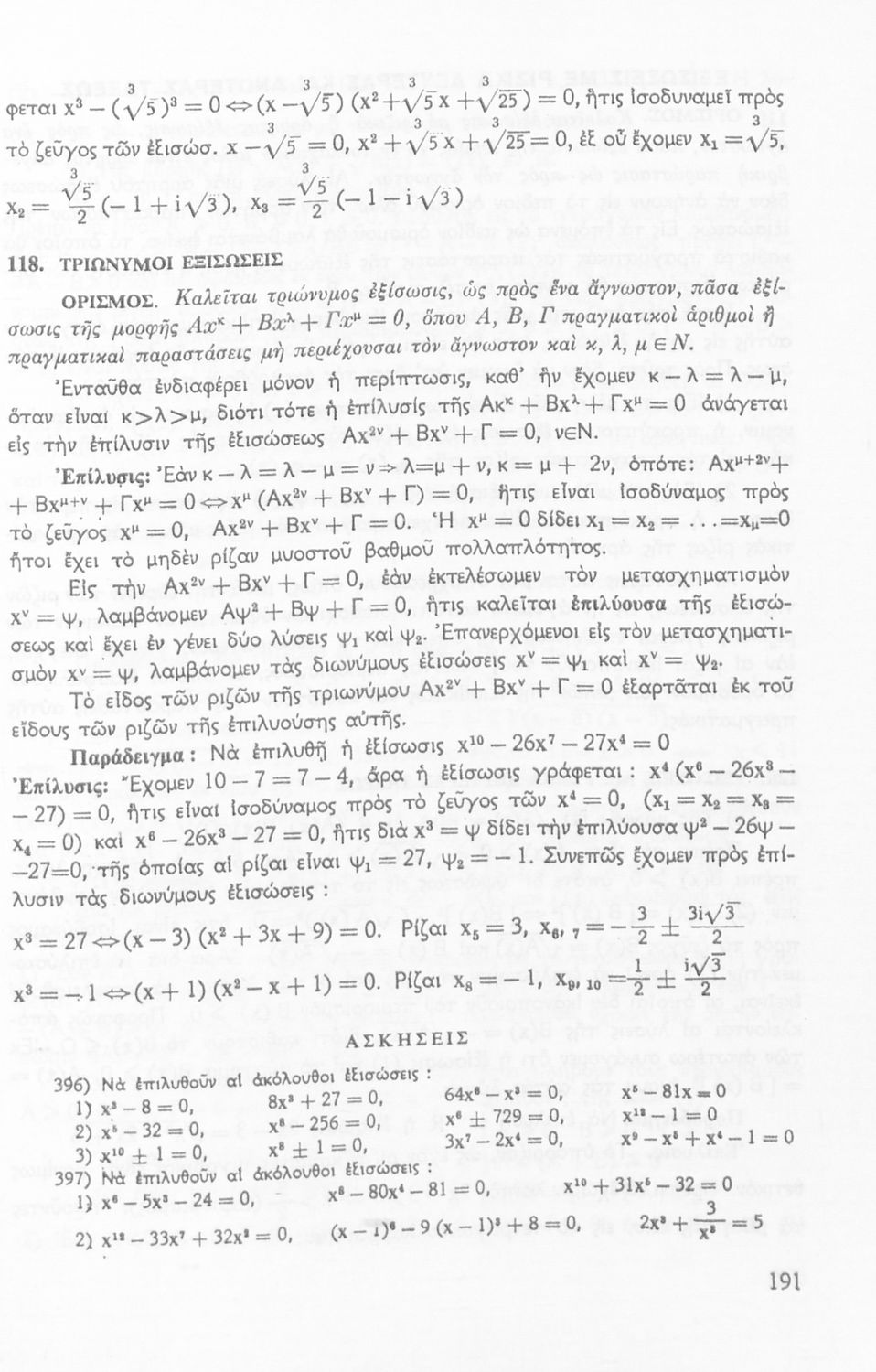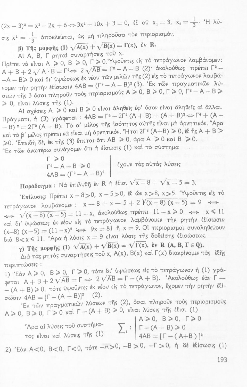 Σχολικό εγχειρίδιο Μαθηματικών Γυμνασίου που είναι χωρισμένο σε θεωρήματα, παραδείγματα και ασκήσεις και περιλαμβάνει στοιχεία Ανώτερης Άλγεβρας και Μαθηματικής Ανάλυσης.
