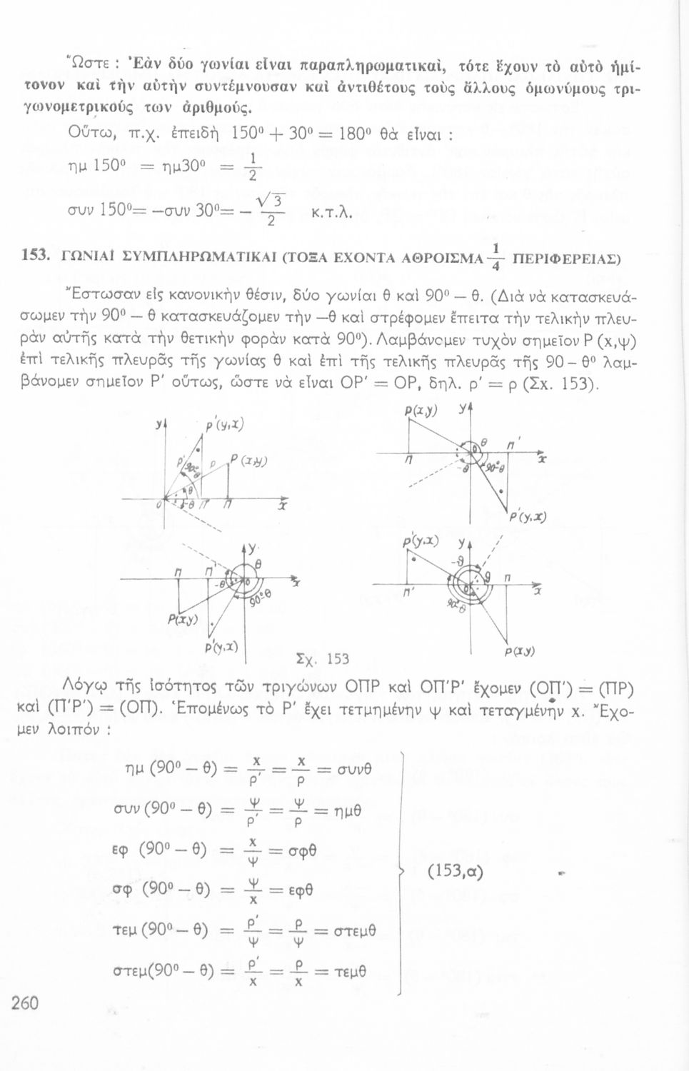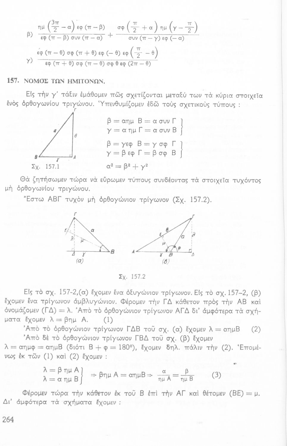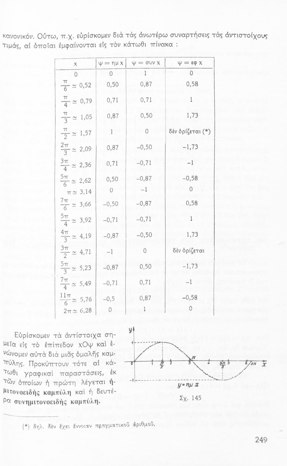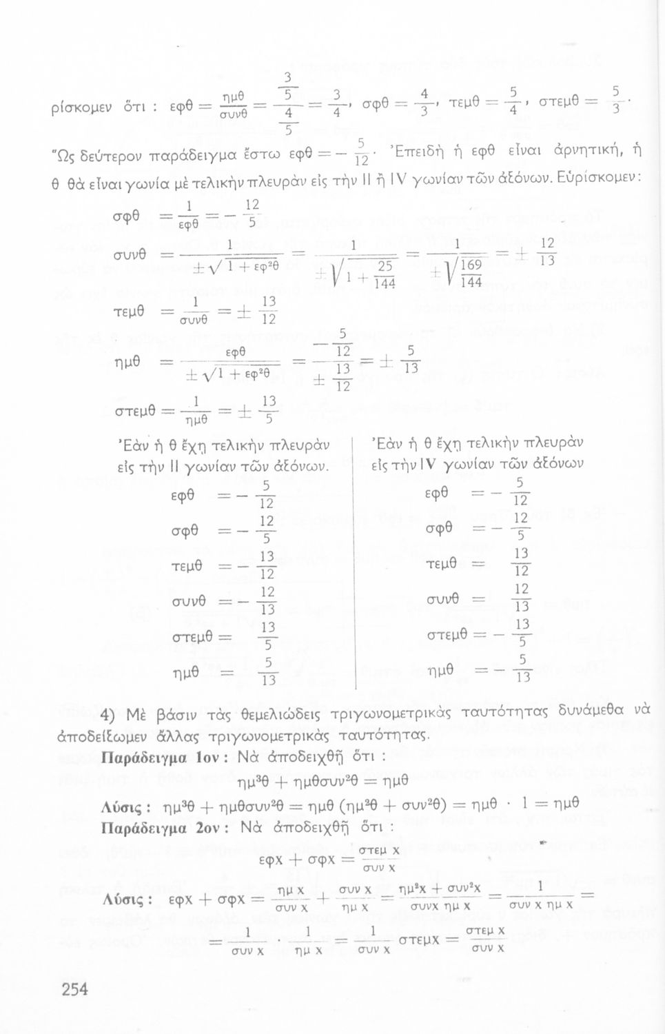 Σχολικό εγχειρίδιο Μαθηματικών για την Ε΄ Γυμνασίου, χωρισμένο σε προβλήματα, εφαρμογές και ασκήσεις, που εστιάζει στην Τριγωνομετρία. Φέρει το σύμβολο της δικτατορίας.