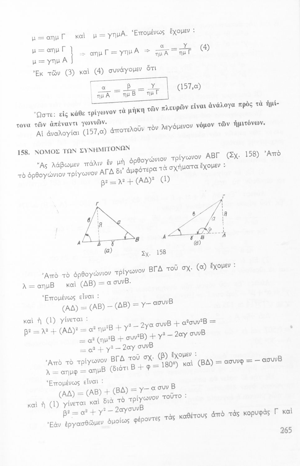 Σχολικό εγχειρίδιο Μαθηματικών για την Ε΄ Γυμνασίου, χωρισμένο σε προβλήματα, εφαρμογές και ασκήσεις, που εστιάζει στην Τριγωνομετρία. Φέρει το σύμβολο της δικτατορίας.