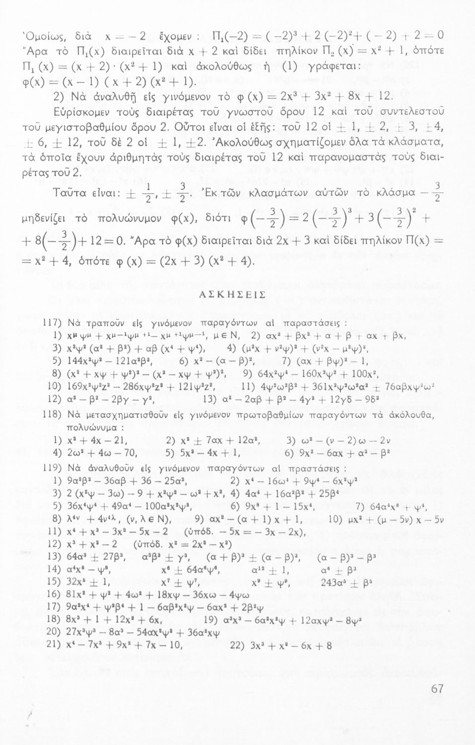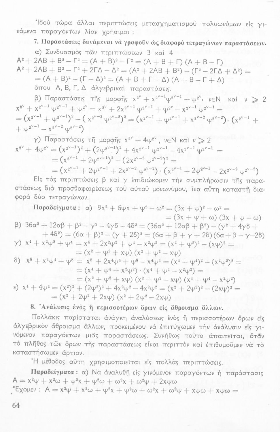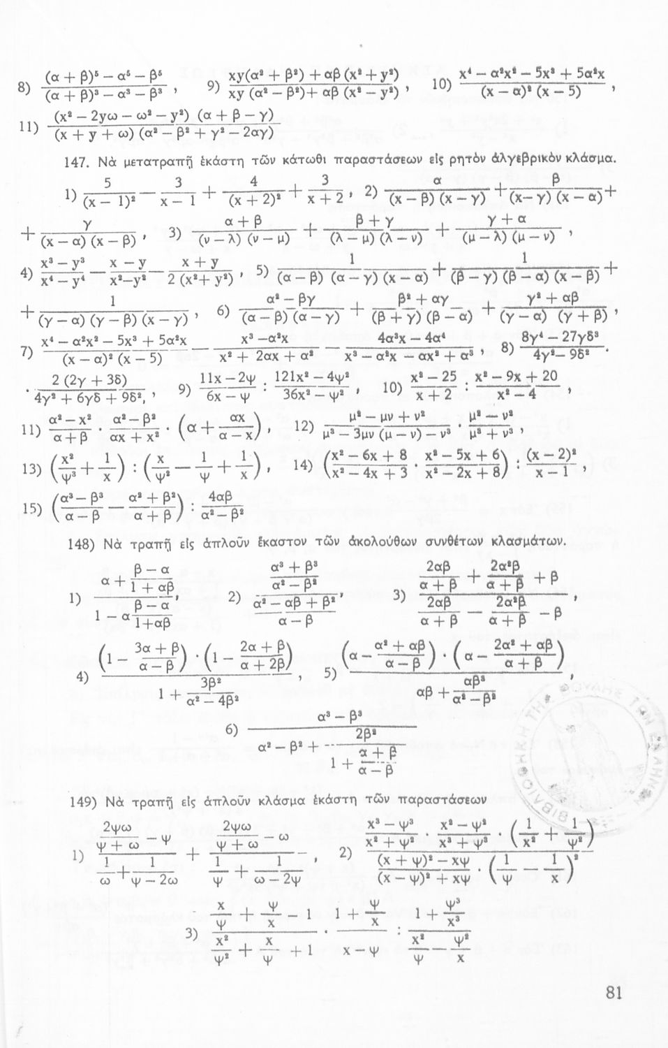 Βαθμίδα εκπαίδευσης: Δευτεροβάθμια Τάξη: Δ' Γυμνασίου Μάθημα: Μαθηματικά Γλώσσα: Καθαρεύουσα Παρουσίαση περιεχομένου: Σχολικό εγχειρίδιο για την Δ΄ Γυμνασίου για το μάθημα των Μαθηματικών. Το εγχειρίδιο περιλαμβάνει στοιχεία λογικής, τα σύνολα των αριθμών, την ανάλυση των πολυωνύμων στο γινόμενο των παραγόντων, τα στοιχεία περιγραφικής στατιστικής κ.α. |