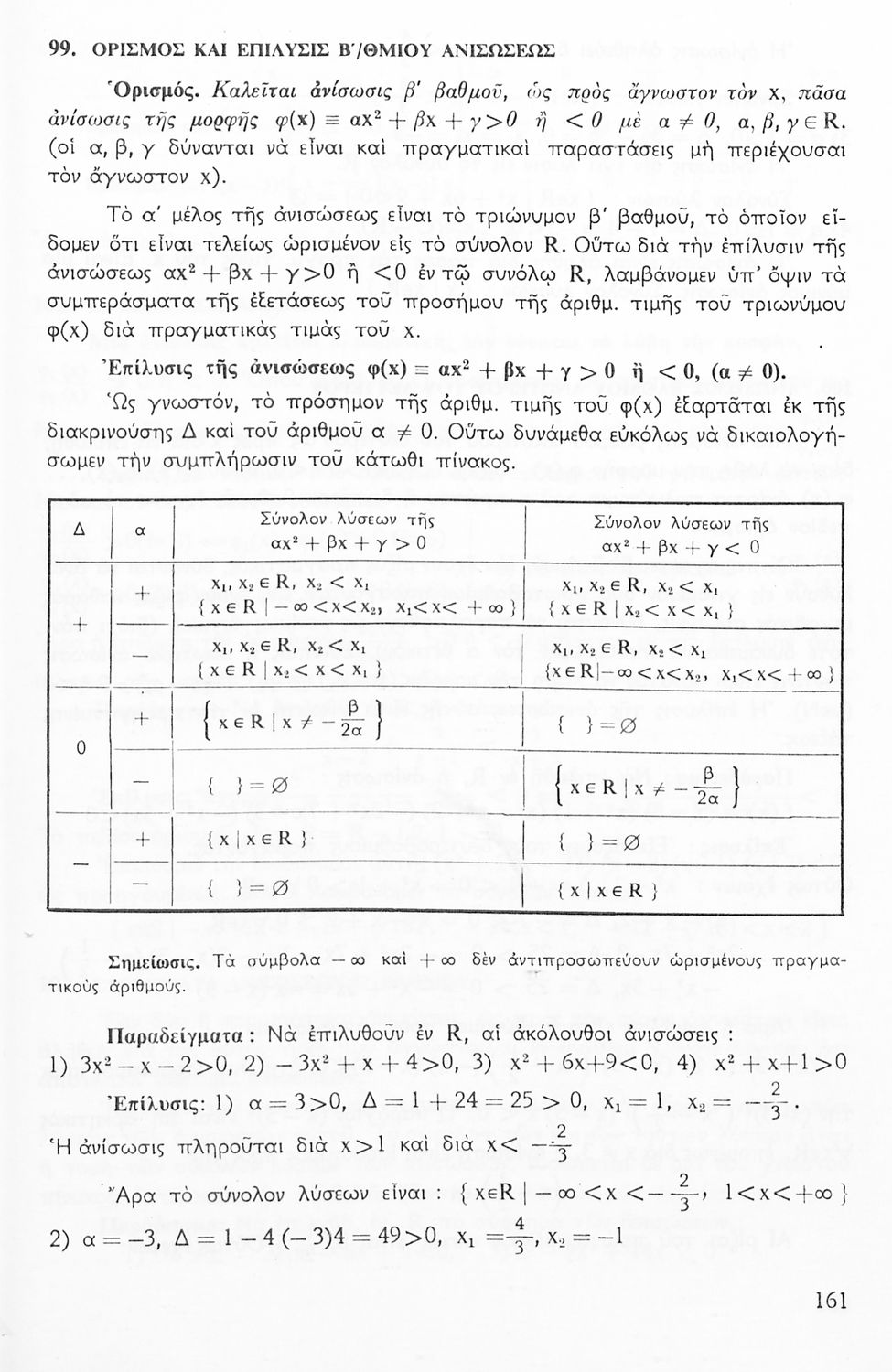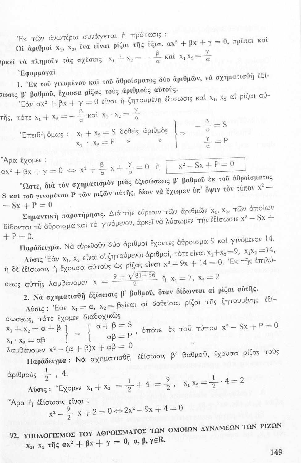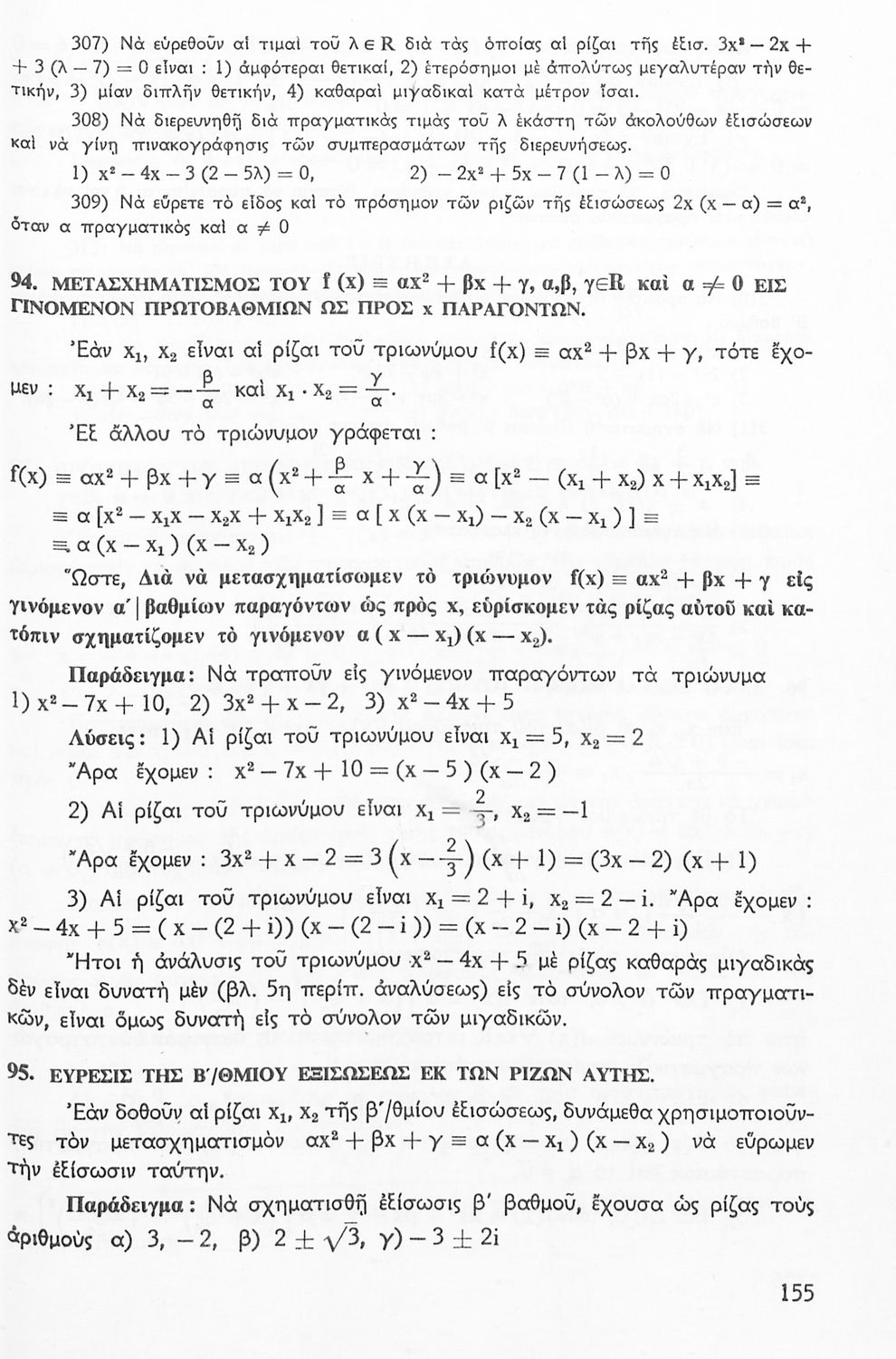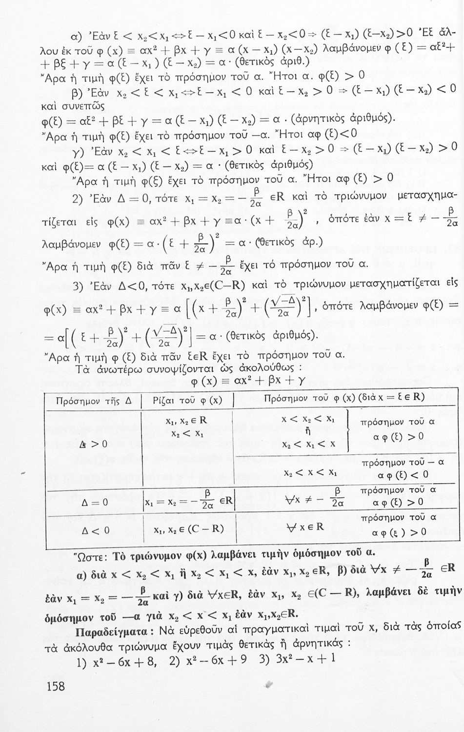 Σχολικό εγχειρίδιο Μαθηματικών Γυμνασίου που είναι χωρισμένο σε θεωρήματα, παραδείγματα και ασκήσεις και περιλαμβάνει στοιχεία Ανώτερης Άλγεβρας και Μαθηματικής Ανάλυσης.