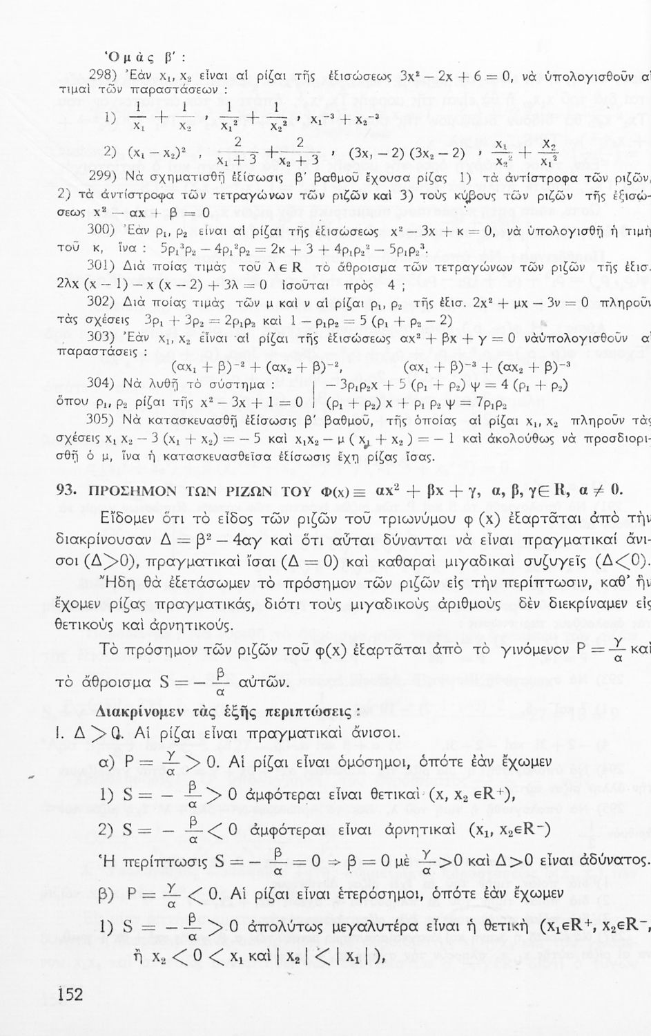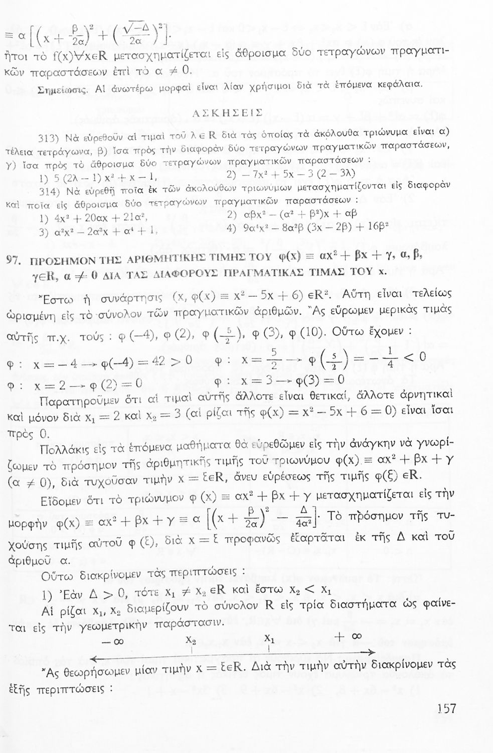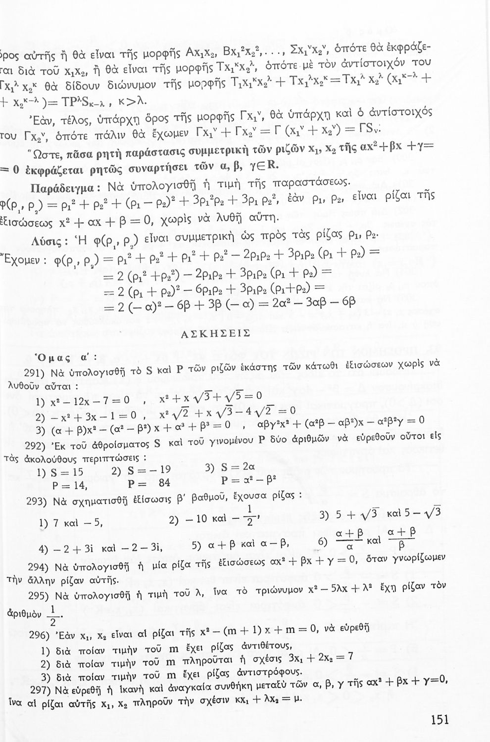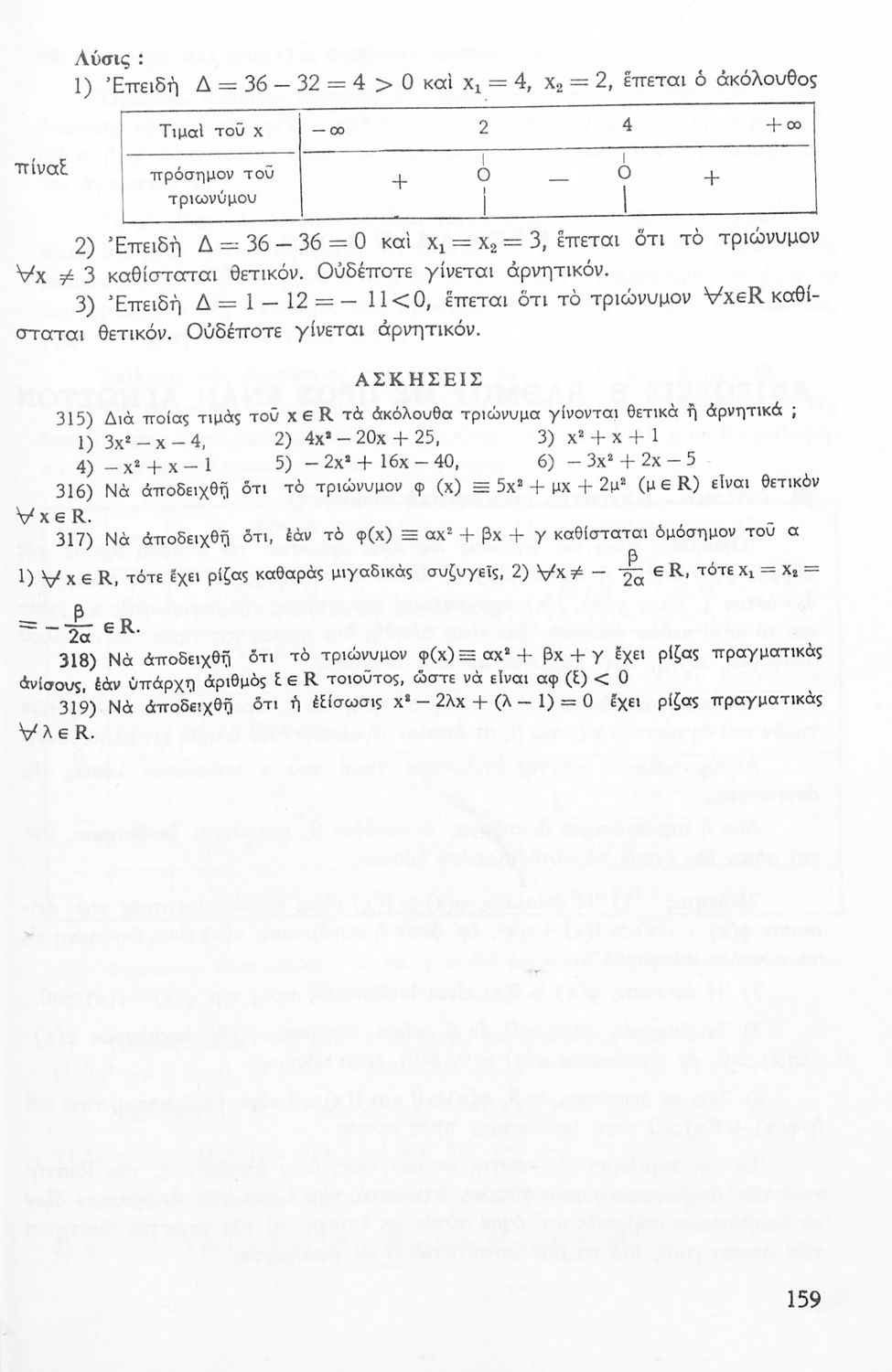 Σχολικό εγχειρίδιο Μαθηματικών Γυμνασίου που είναι χωρισμένο σε θεωρήματα, παραδείγματα και ασκήσεις και περιλαμβάνει στοιχεία Ανώτερης Άλγεβρας και Μαθηματικής Ανάλυσης.