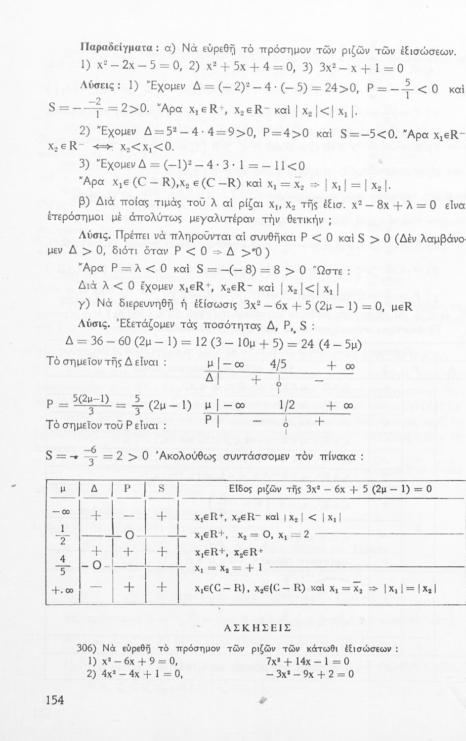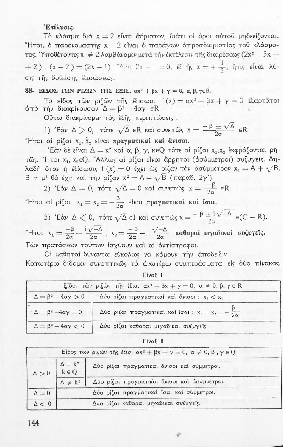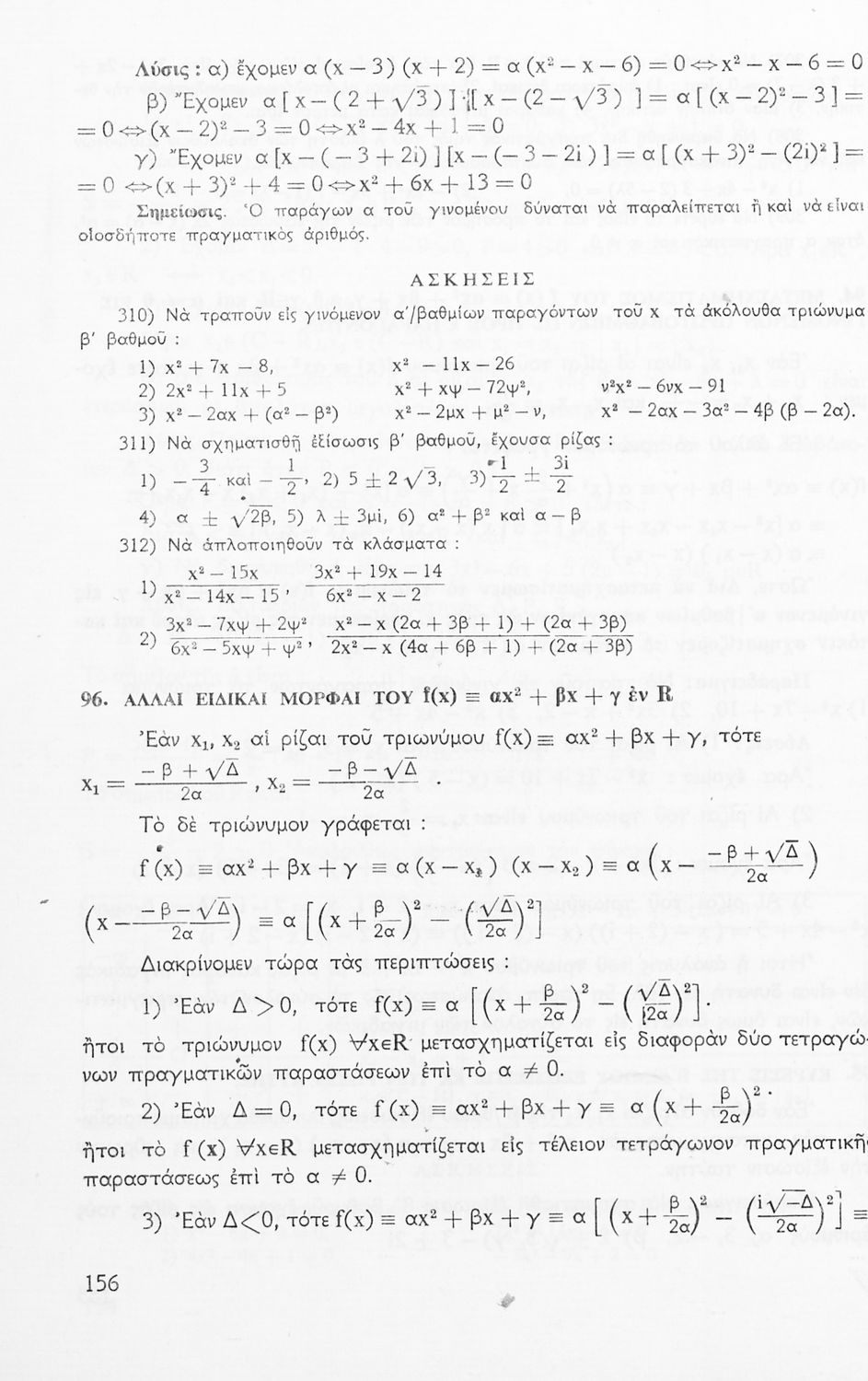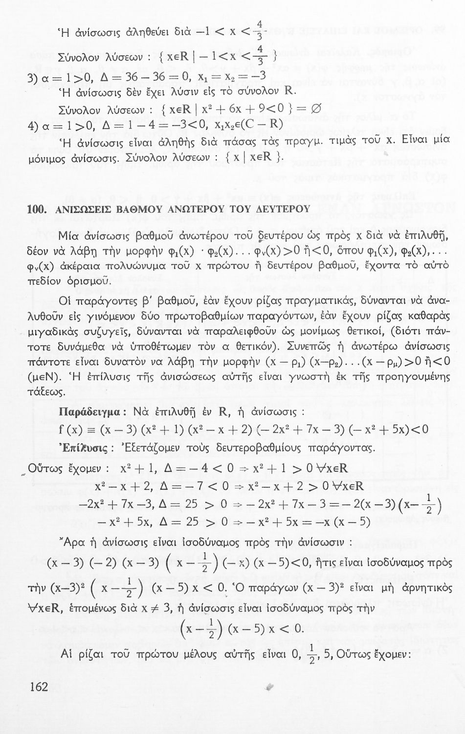 Σχολικό εγχειρίδιο Μαθηματικών Γυμνασίου που είναι χωρισμένο σε θεωρήματα, παραδείγματα και ασκήσεις και περιλαμβάνει στοιχεία Ανώτερης Άλγεβρας και Μαθηματικής Ανάλυσης.