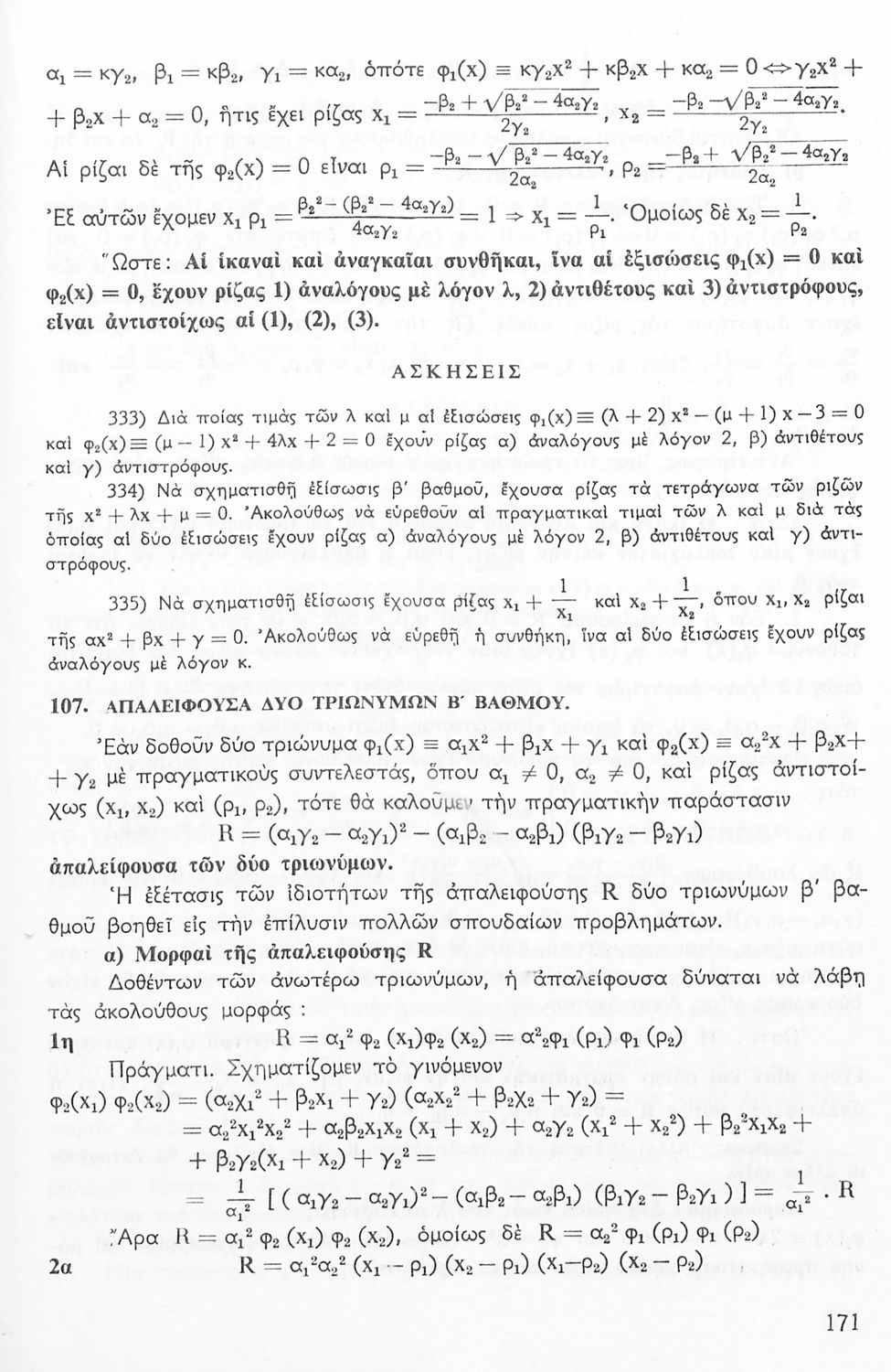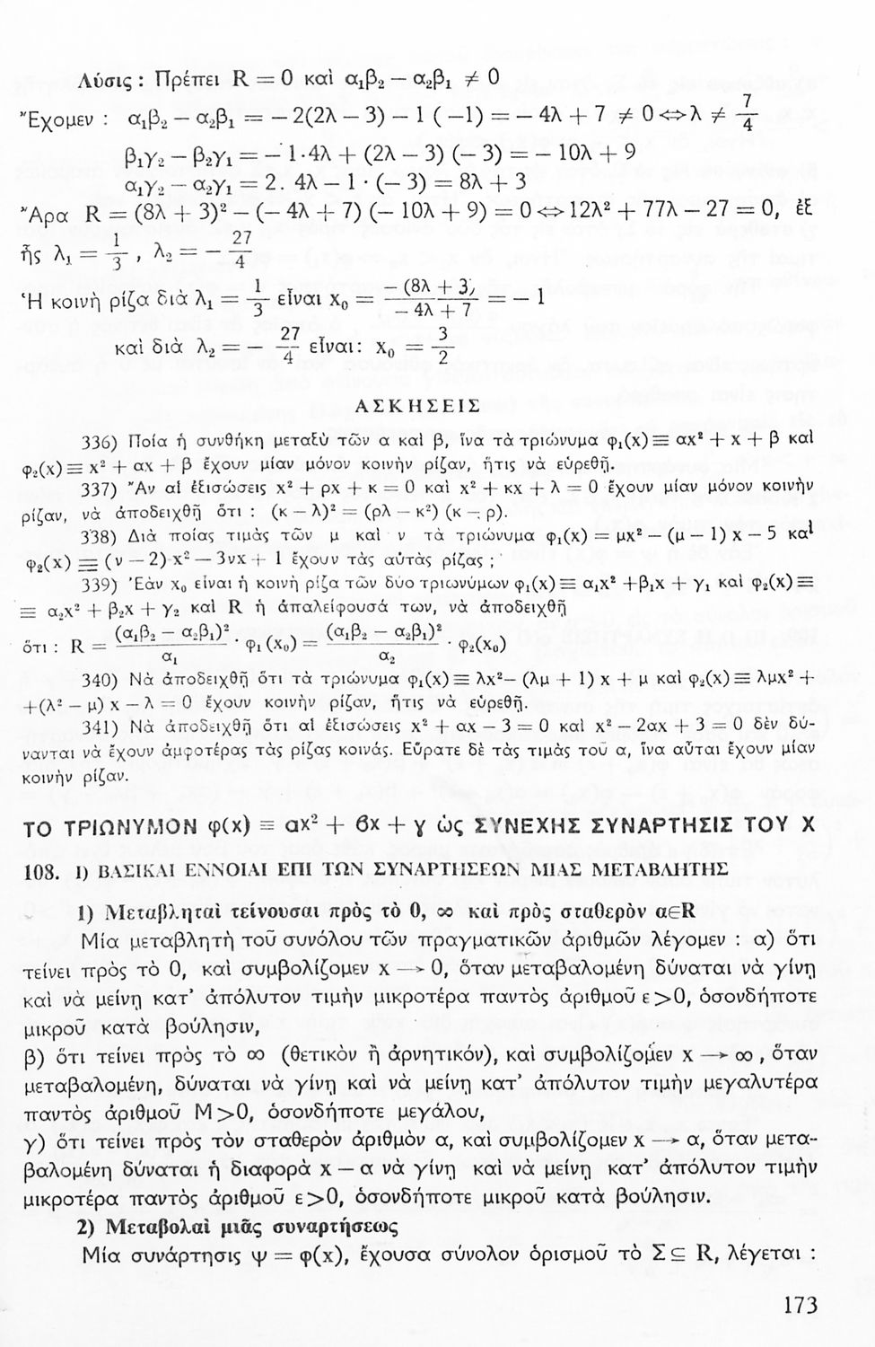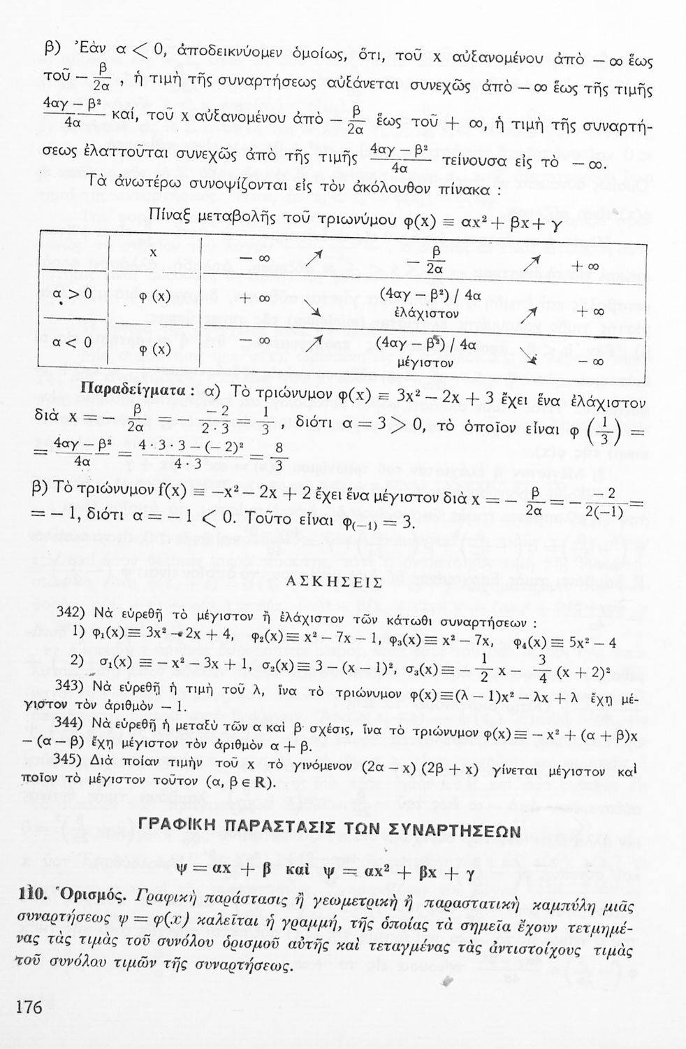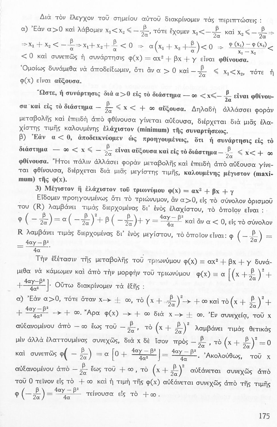 Σχολικό εγχειρίδιο Μαθηματικών Γυμνασίου που είναι χωρισμένο σε θεωρήματα, παραδείγματα και ασκήσεις και περιλαμβάνει στοιχεία Ανώτερης Άλγεβρας και Μαθηματικής Ανάλυσης.