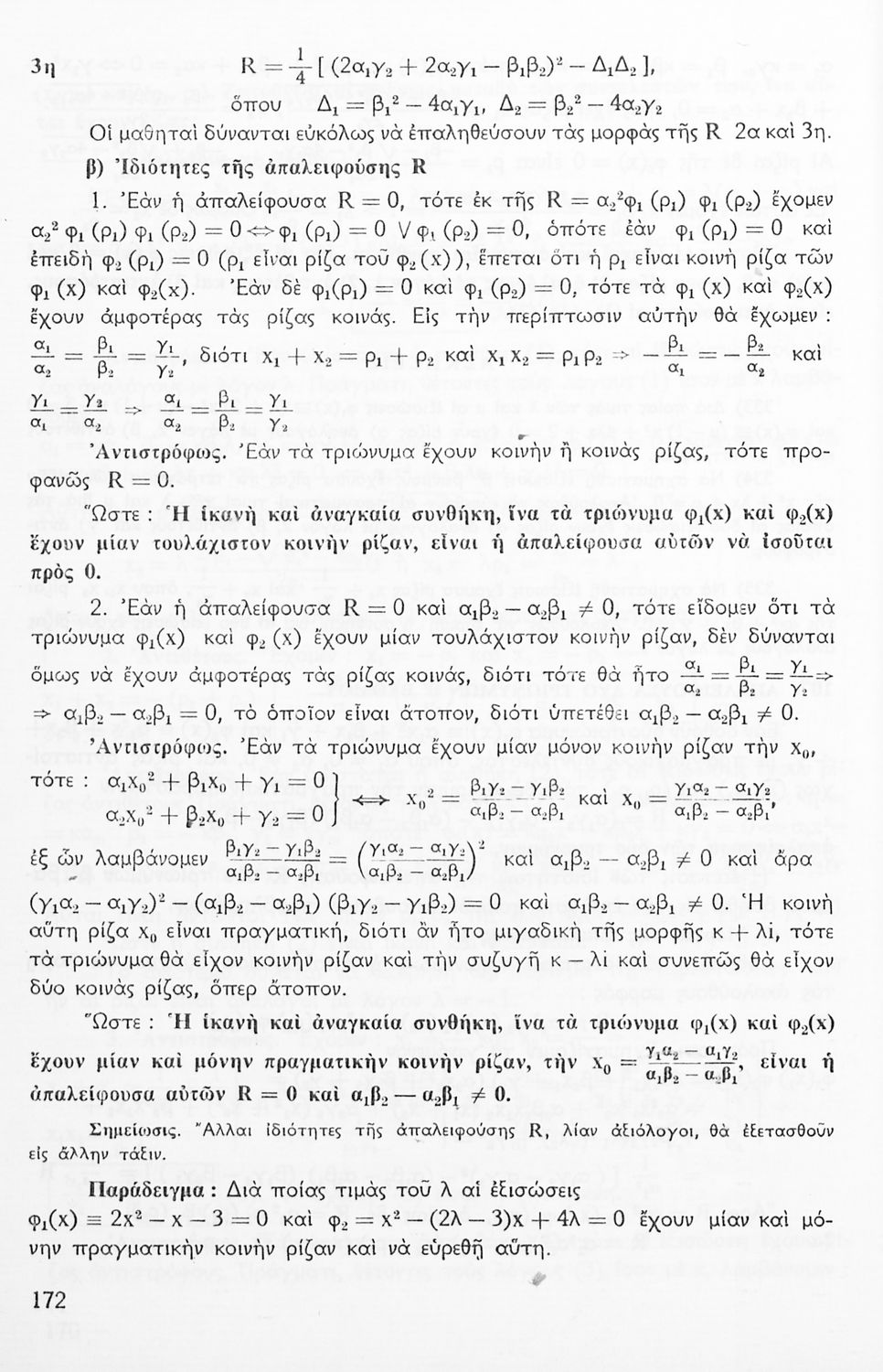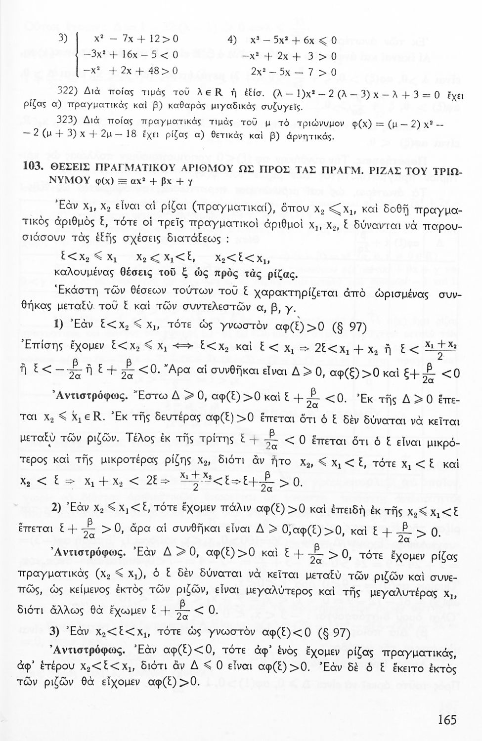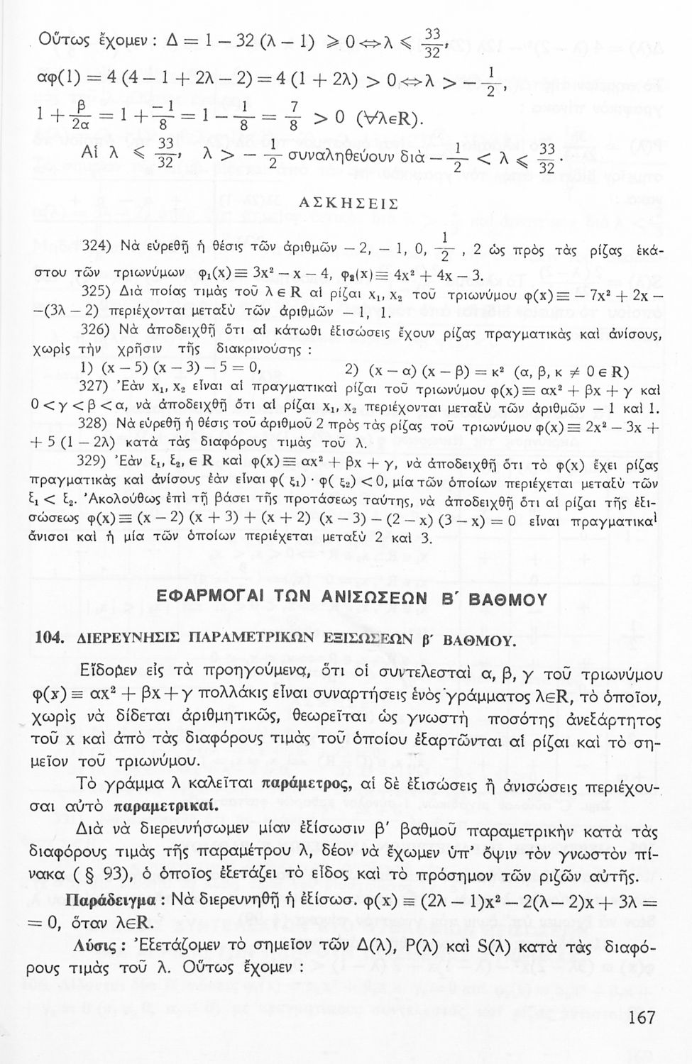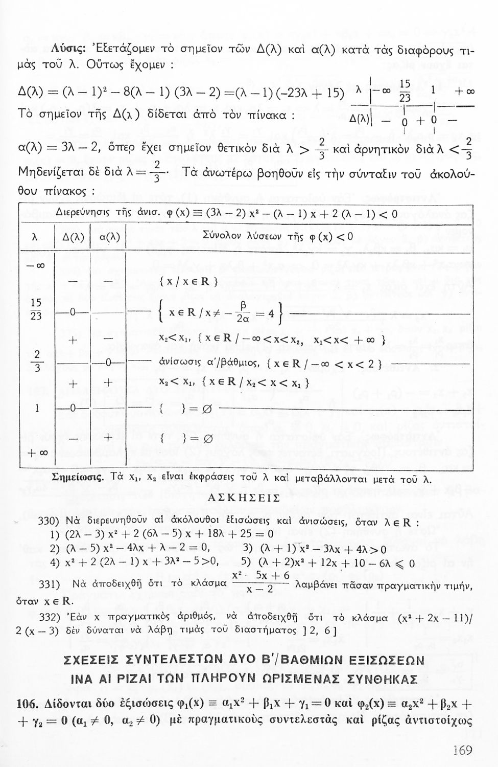 Σχολικό εγχειρίδιο Μαθηματικών Γυμνασίου που είναι χωρισμένο σε θεωρήματα, παραδείγματα και ασκήσεις και περιλαμβάνει στοιχεία Ανώτερης Άλγεβρας και Μαθηματικής Ανάλυσης.
