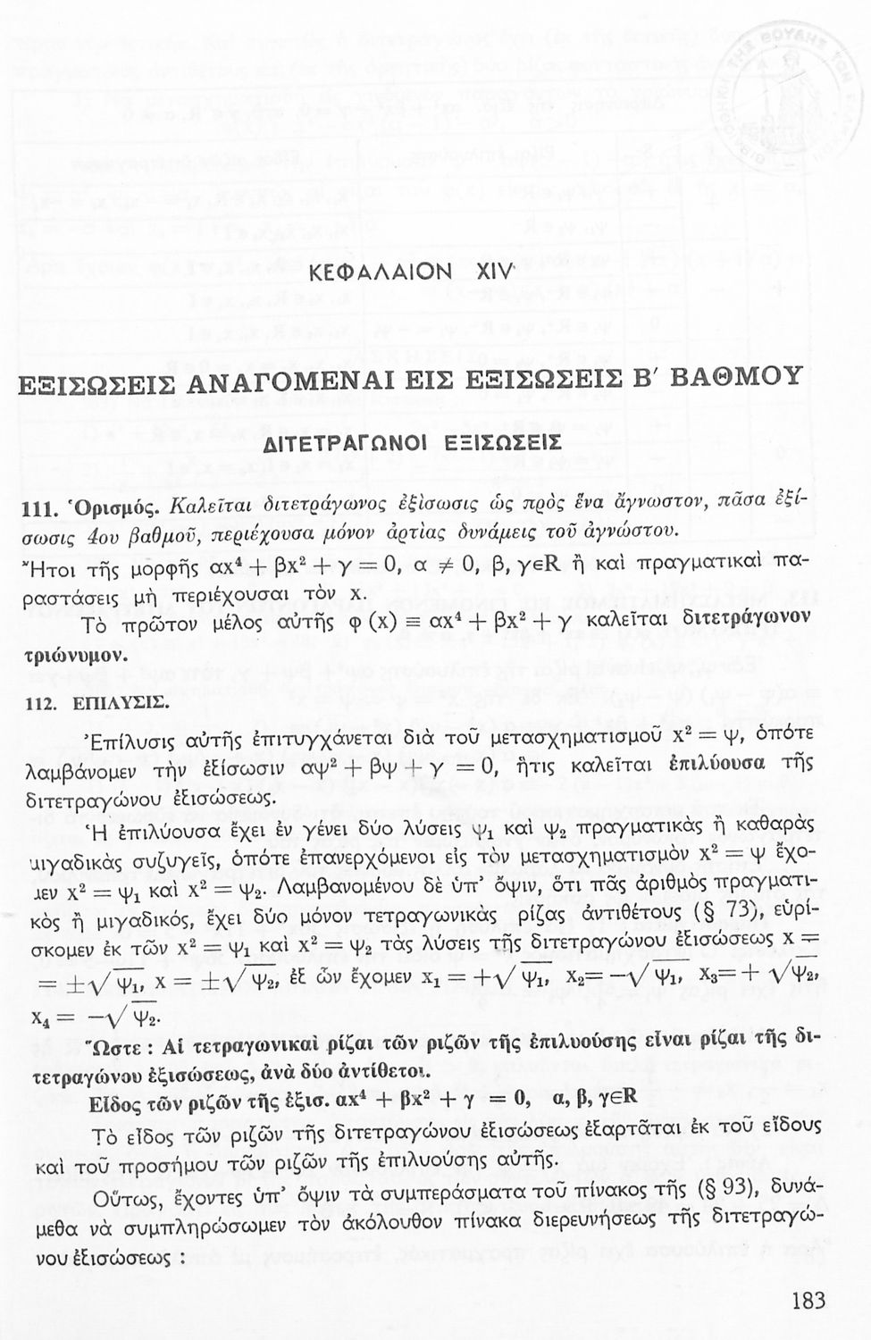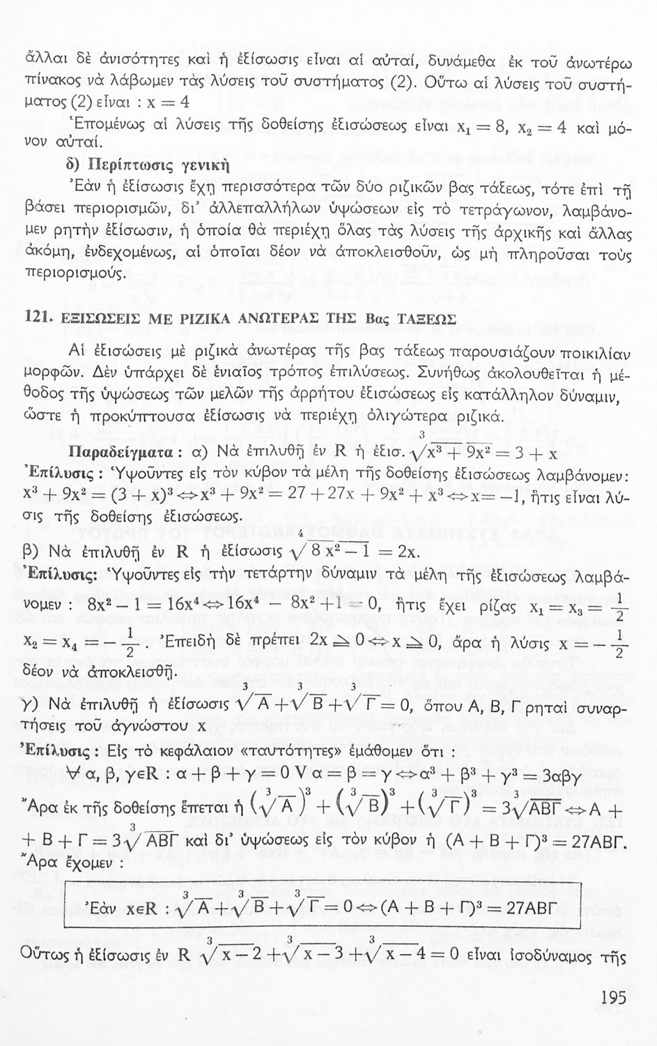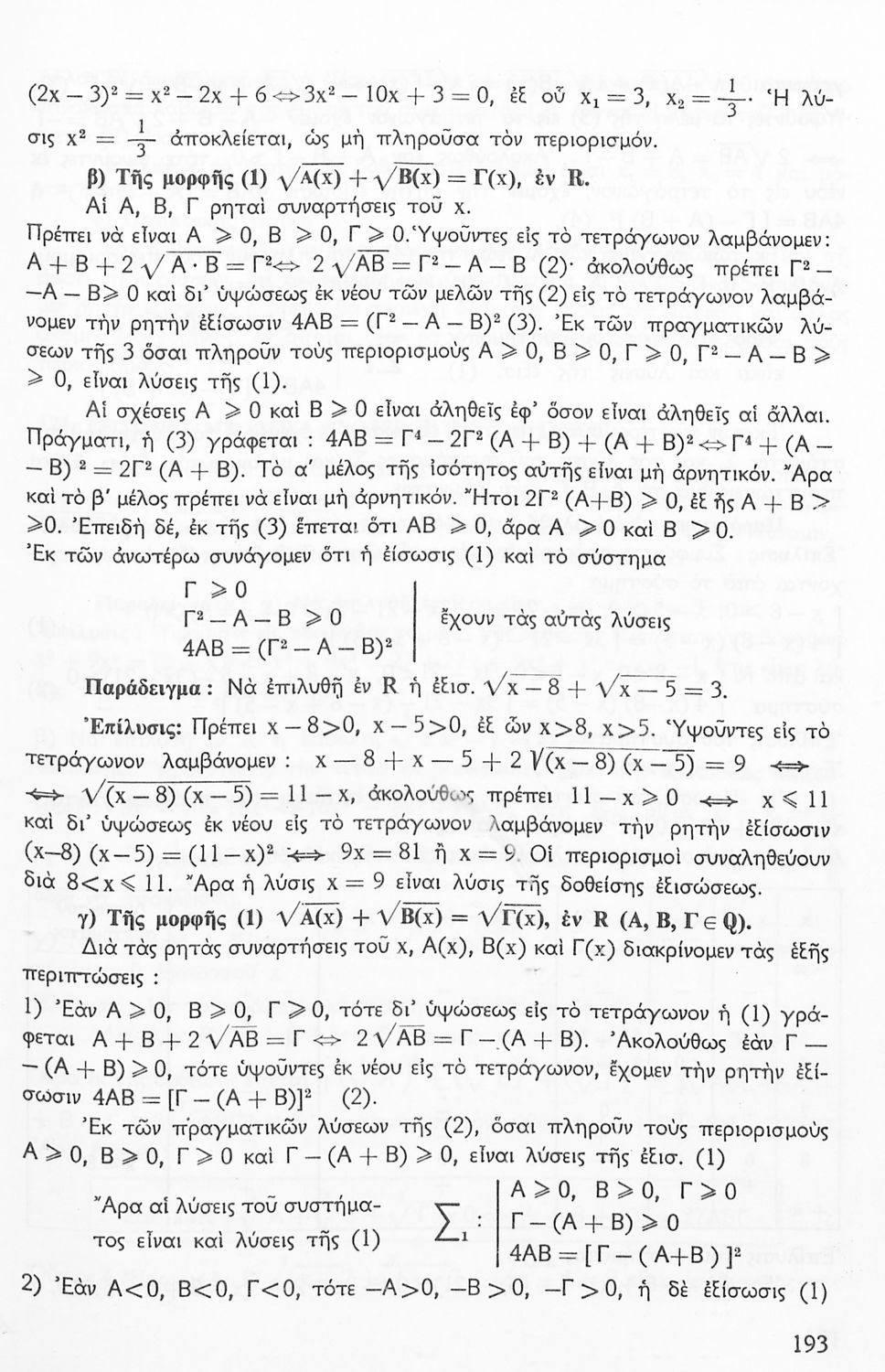 Σχολικό εγχειρίδιο Μαθηματικών Γυμνασίου που είναι χωρισμένο σε θεωρήματα, παραδείγματα και ασκήσεις και περιλαμβάνει στοιχεία Ανώτερης Άλγεβρας και Μαθηματικής Ανάλυσης.