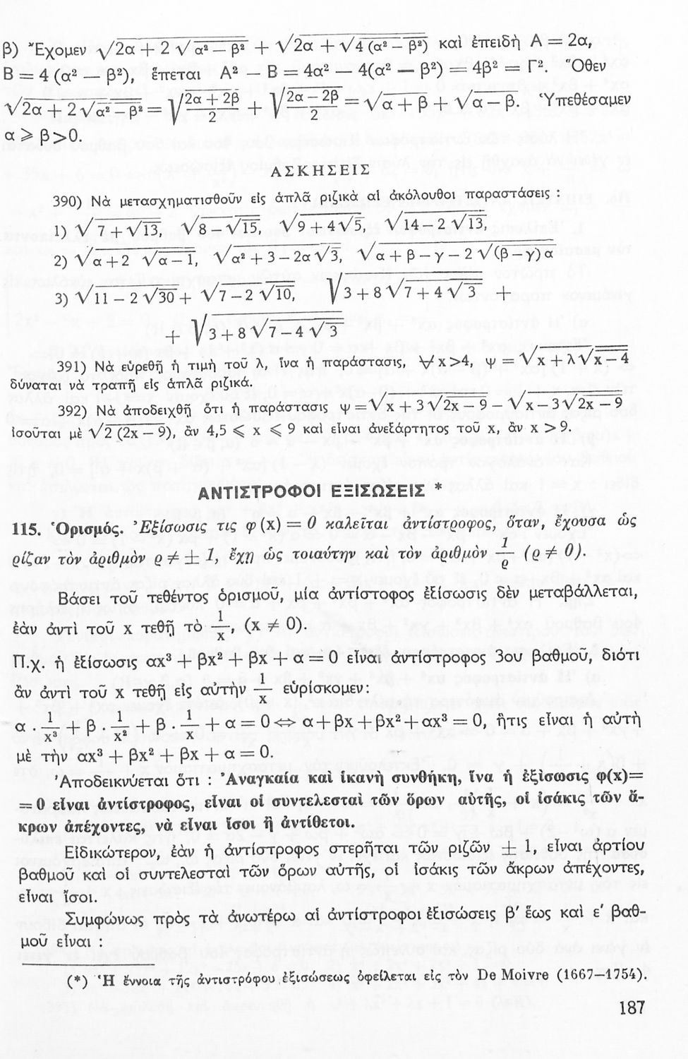 Το σύγγραμμα ήταν σχολικό εγχειρίδιο για το μάθημα των Μαθηματικών στο Γυμνάσιο. Περιέχει βασικές γνώσεις 'Άλγεβρας, σύνολα, συναρτήσεις, ολοκληρώματα, λογάριθμους, παραγώγους συναρτήσεων. Εκτός από τη θεωρία ...