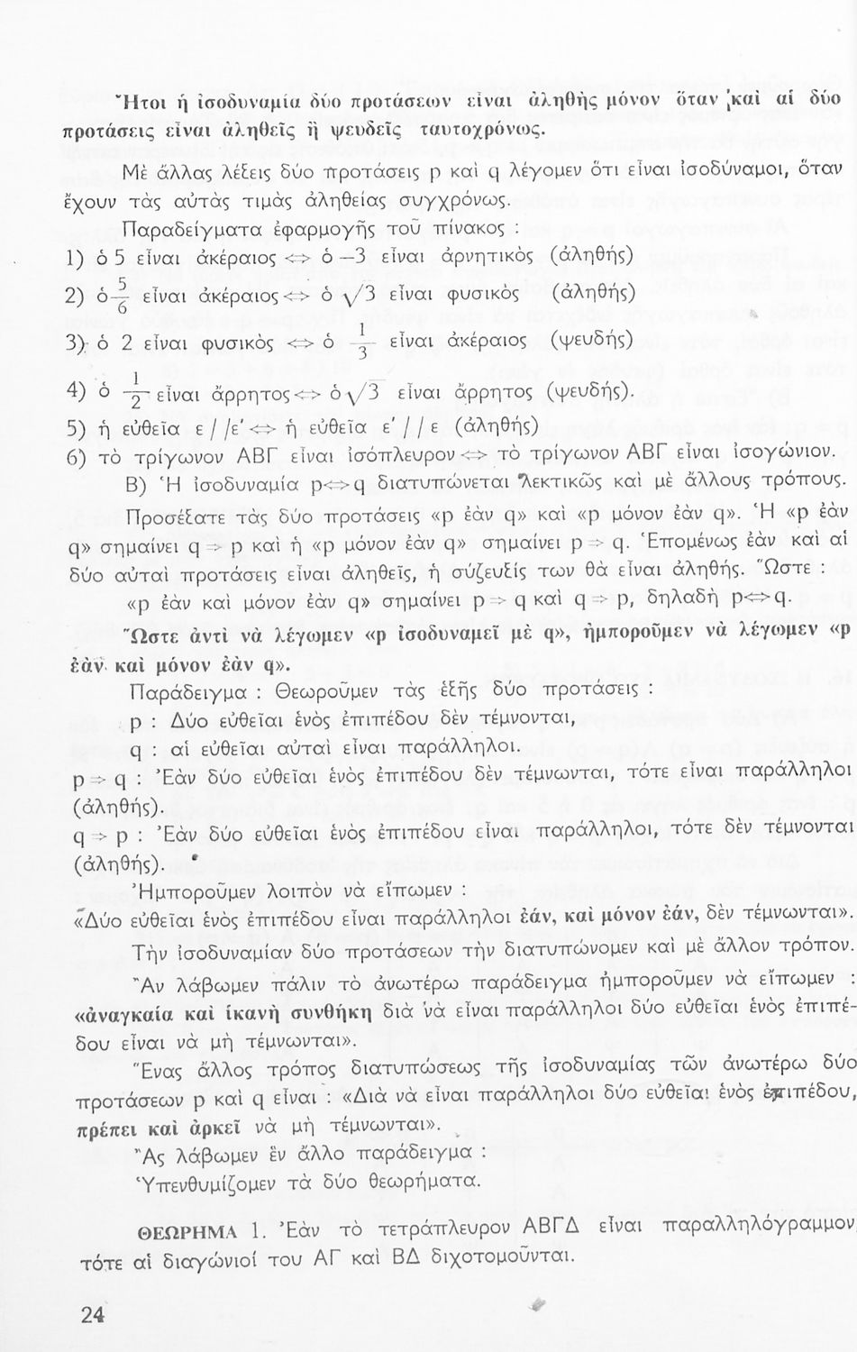 Σχολικό εγχειρίδιο Μαθηματικών Δ΄ και Ε΄ Γυμνασίου που είναι χωρισμένο σε θεωρήματα και ασκήσεις και εστιάζει στη Γεωμετρία. Φέρει το σύμβολο της δικτατορίας.