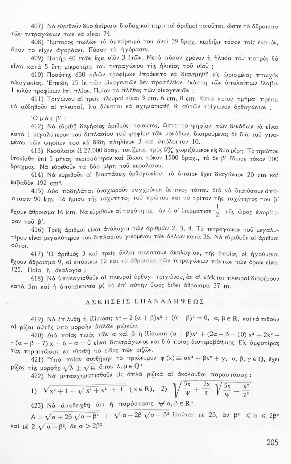Σχολικό εγχειρίδιο Μαθηματικών Γυμνασίου που είναι χωρισμένο σε θεωρήματα, παραδείγματα και ασκήσεις και περιλαμβάνει στοιχεία Ανώτερης Άλγεβρας και Μαθηματικής Ανάλυσης.