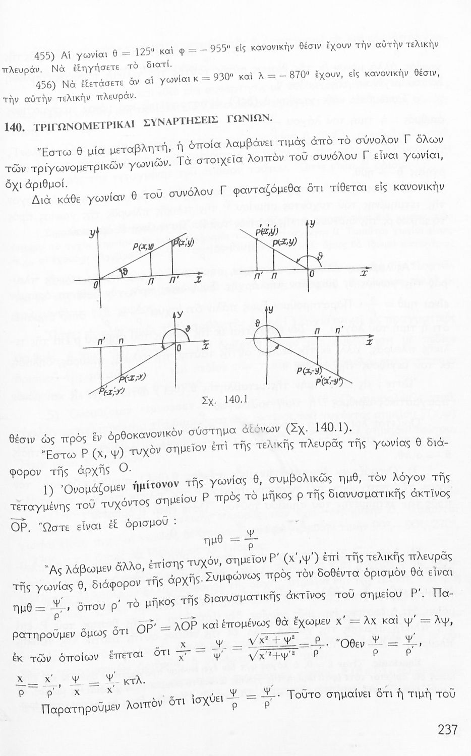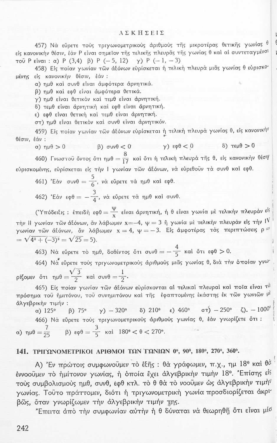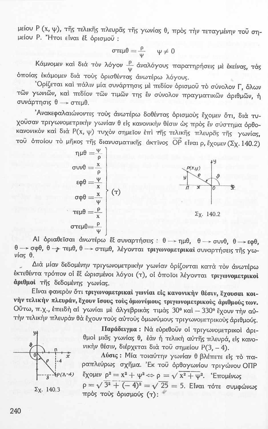 Σχολικό εγχειρίδιο Μαθηματικών για την Ε΄ Γυμνασίου, χωρισμένο σε προβλήματα, εφαρμογές και ασκήσεις, που εστιάζει στην Τριγωνομετρία. Φέρει το σύμβολο της δικτατορίας.