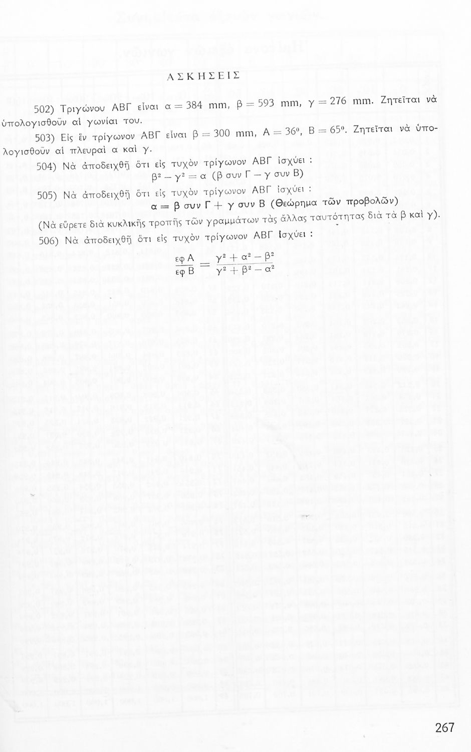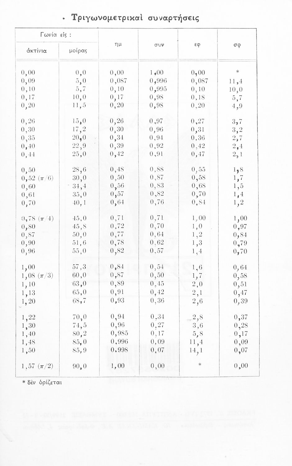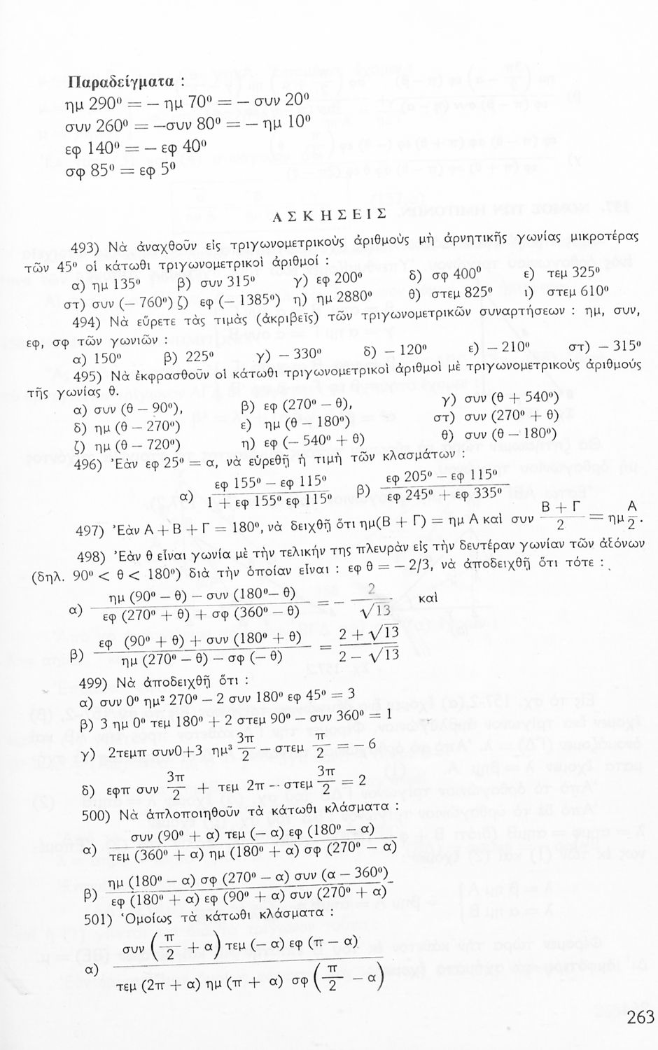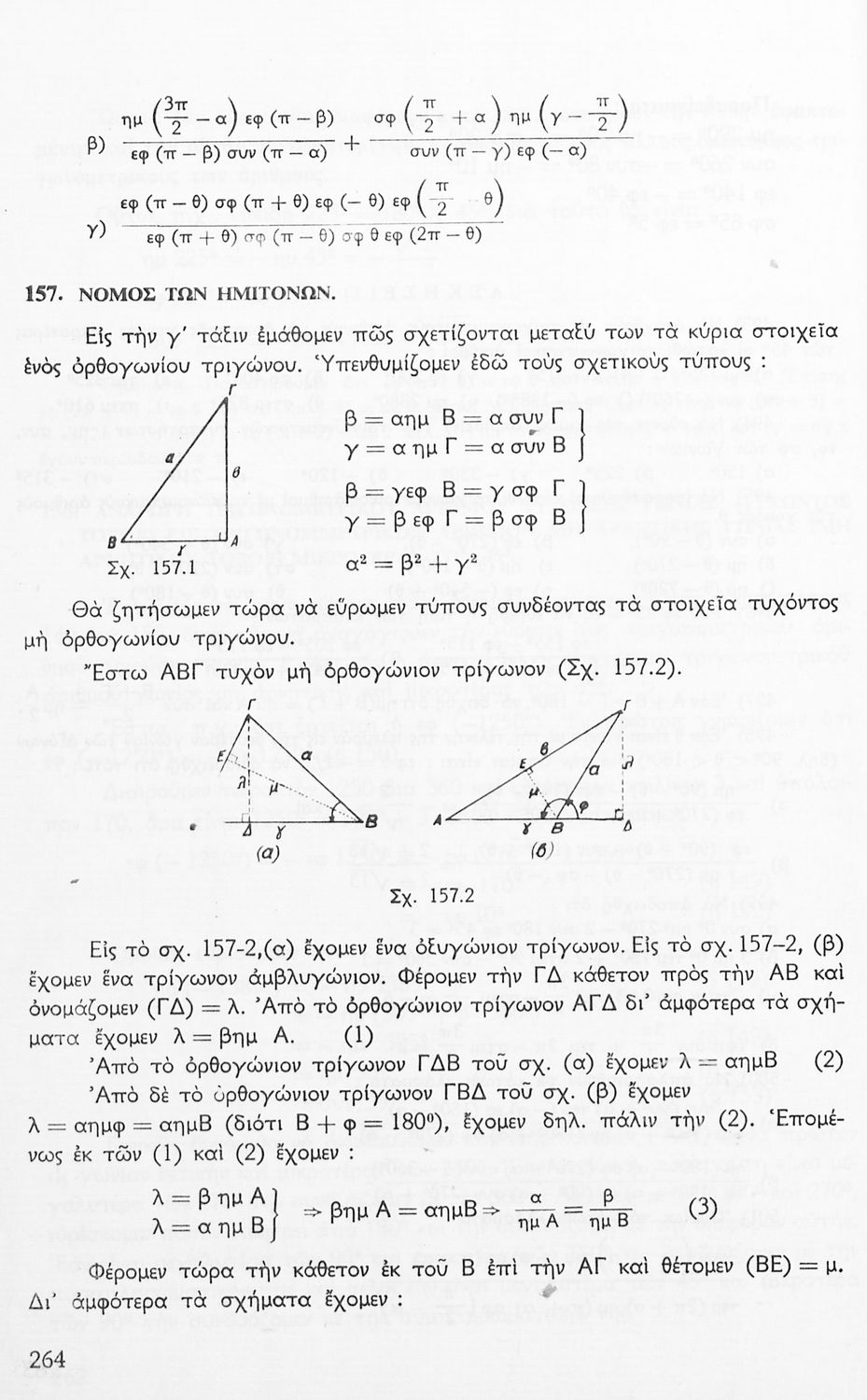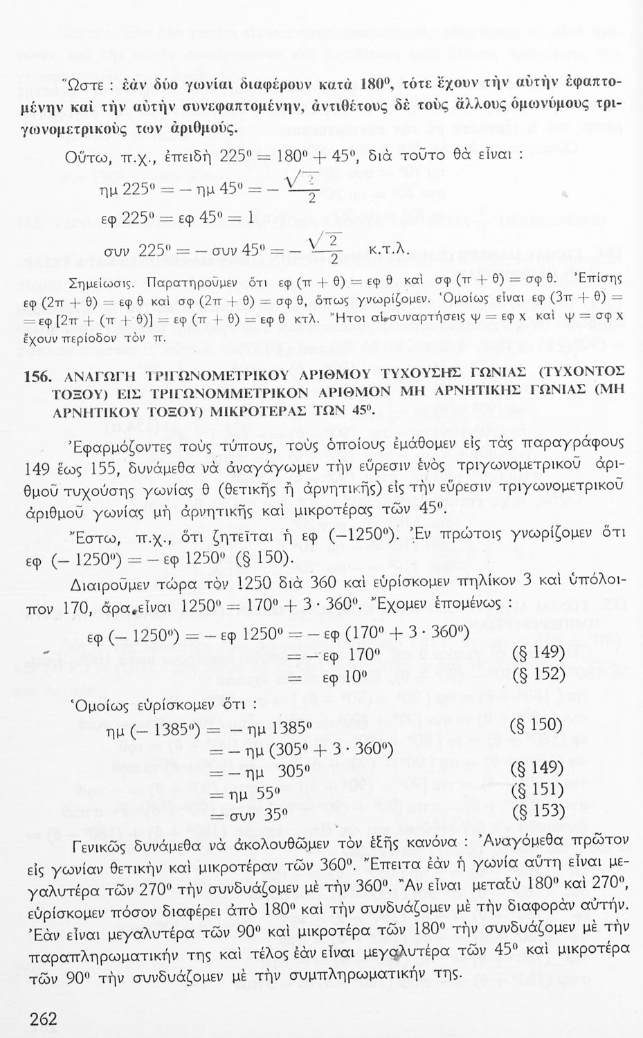 Σχολικό εγχειρίδιο Μαθηματικών για την Ε΄ Γυμνασίου, χωρισμένο σε προβλήματα, εφαρμογές και ασκήσεις, που εστιάζει στην Τριγωνομετρία. Φέρει το σύμβολο της δικτατορίας.