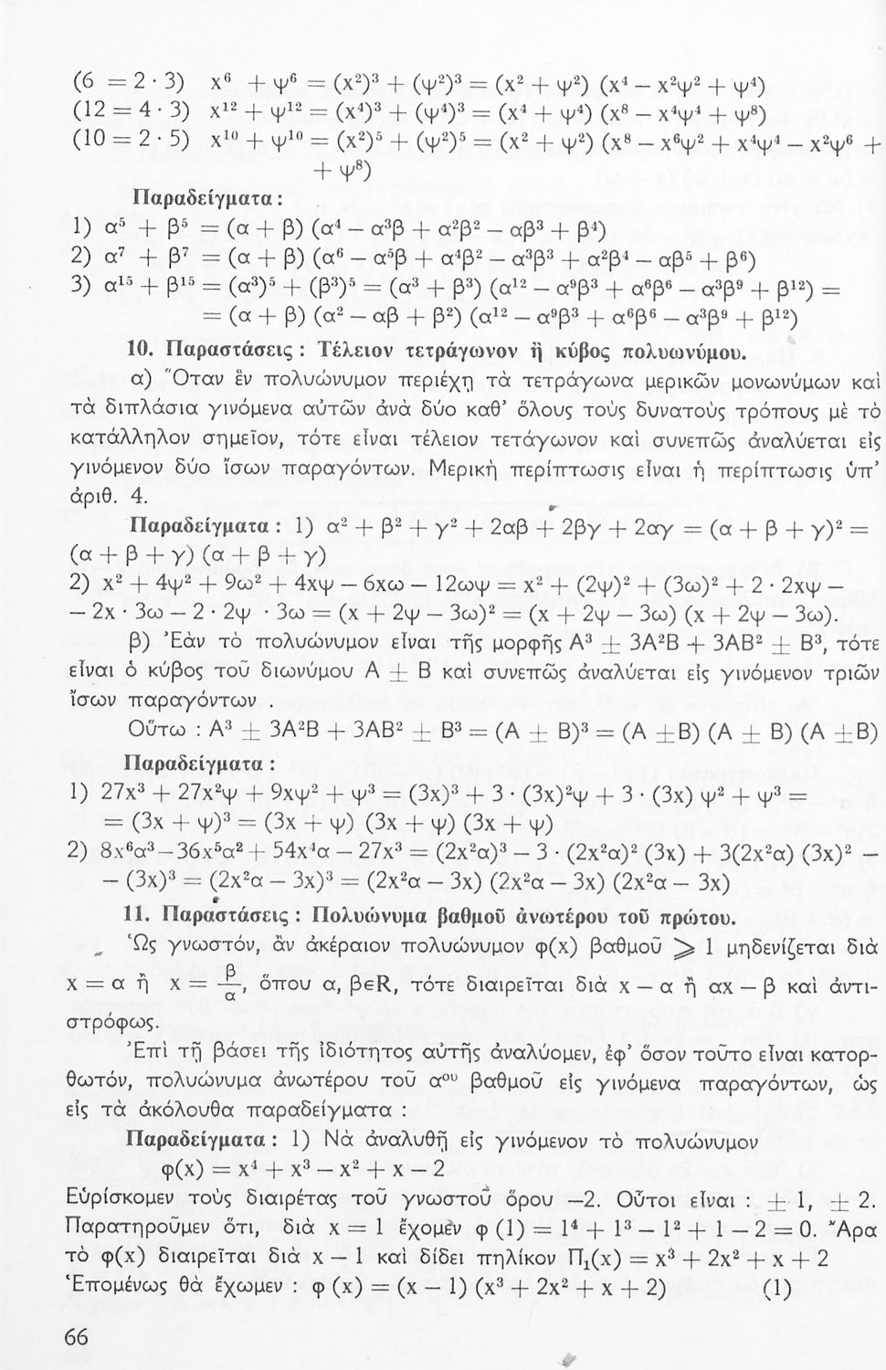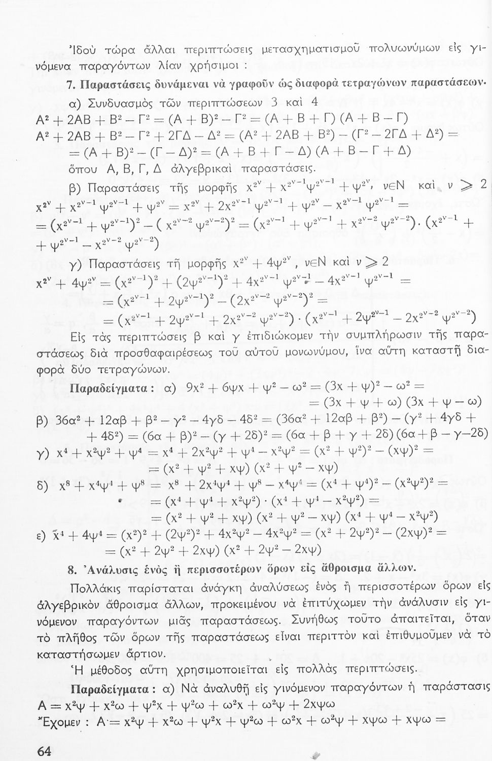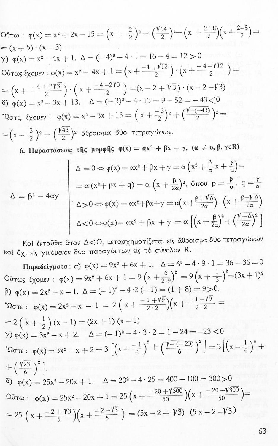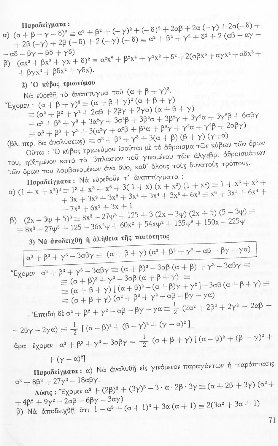 Σχολικό εγχειρίδιο Μαθηματικών Γυμνασίου που είναι χωρισμένο σε θεωρήματα, παραδείγματα και ασκήσεις και περιλαμβάνει στοιχεία Ανώτερης Άλγεβρας και Μαθηματικής Ανάλυσης.