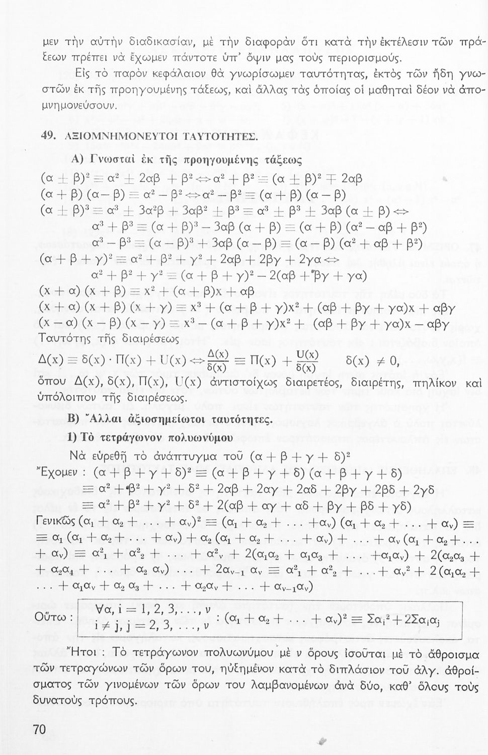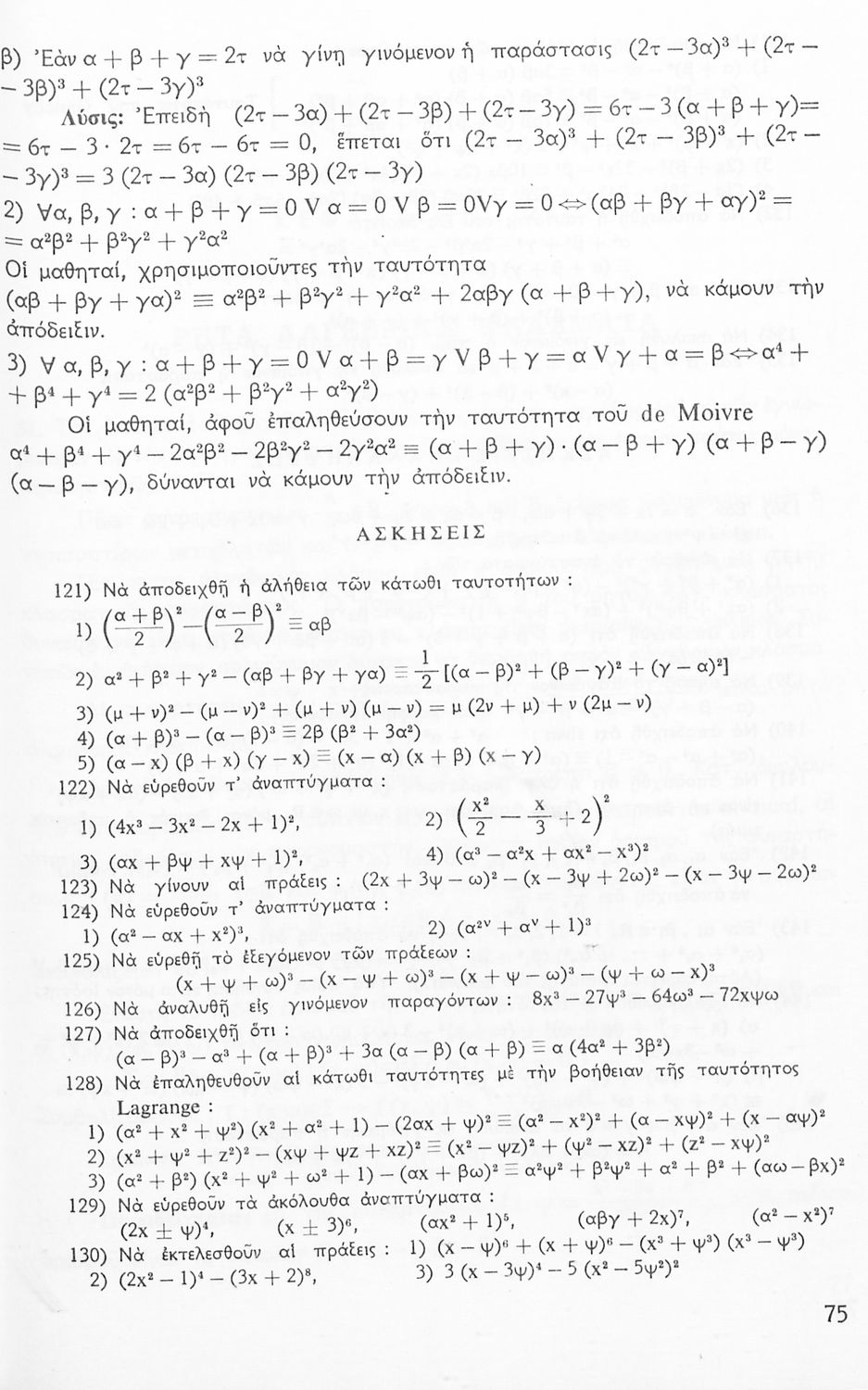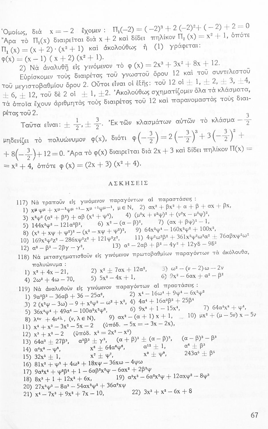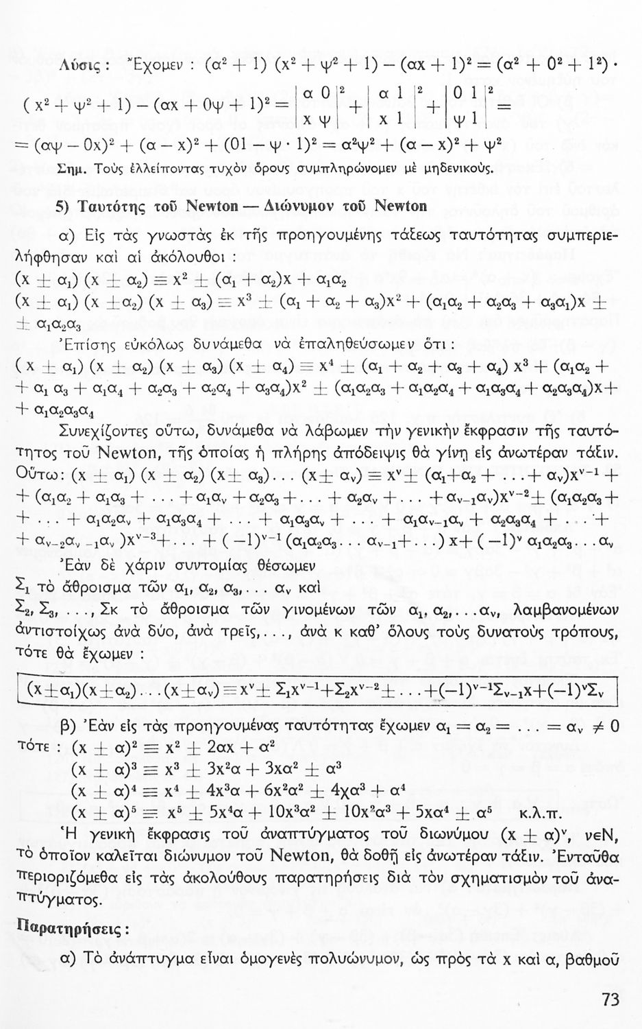 Σχολικό εγχειρίδιο Μαθηματικών Γυμνασίου που είναι χωρισμένο σε θεωρήματα, παραδείγματα και ασκήσεις και περιλαμβάνει στοιχεία Ανώτερης Άλγεβρας και Μαθηματικής Ανάλυσης.
