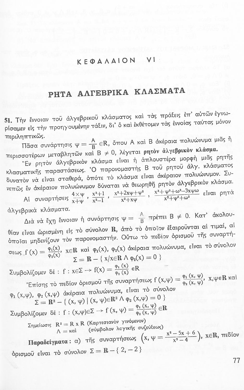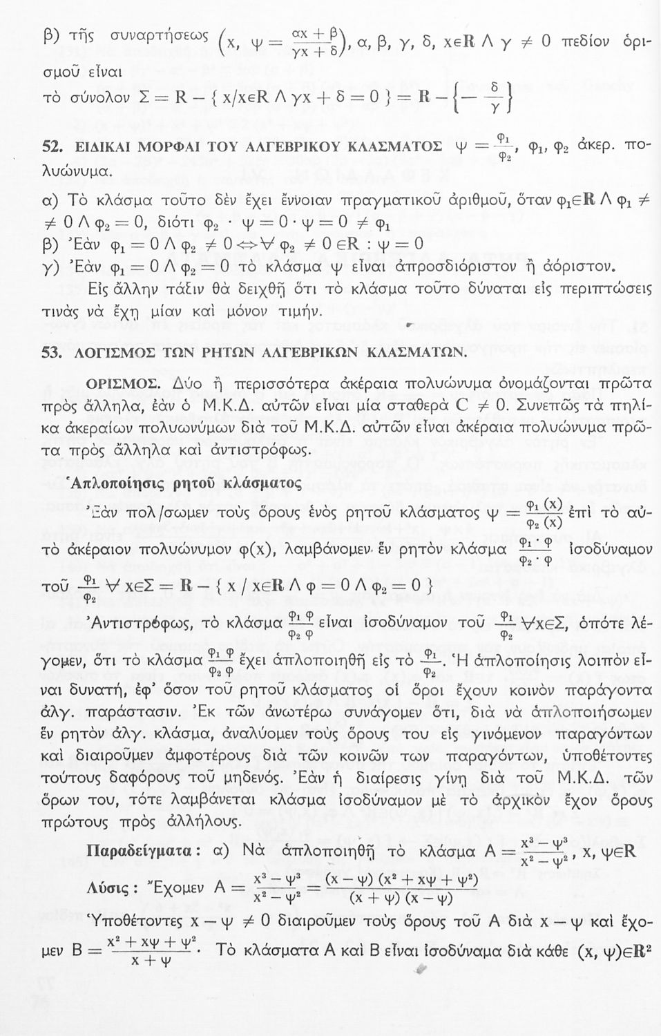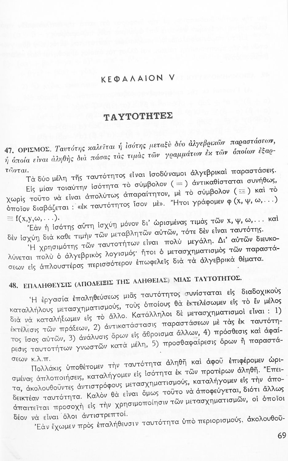 Το σύγγραμμα ήταν σχολικό εγχειρίδιο για το μάθημα των Μαθηματικών στο Γυμνάσιο. Περιέχει βασικές γνώσεις 'Άλγεβρας, σύνολα, συναρτήσεις, ολοκληρώματα, λογάριθμους, παραγώγους συναρτήσεων. Εκτός από τη θεωρία ...