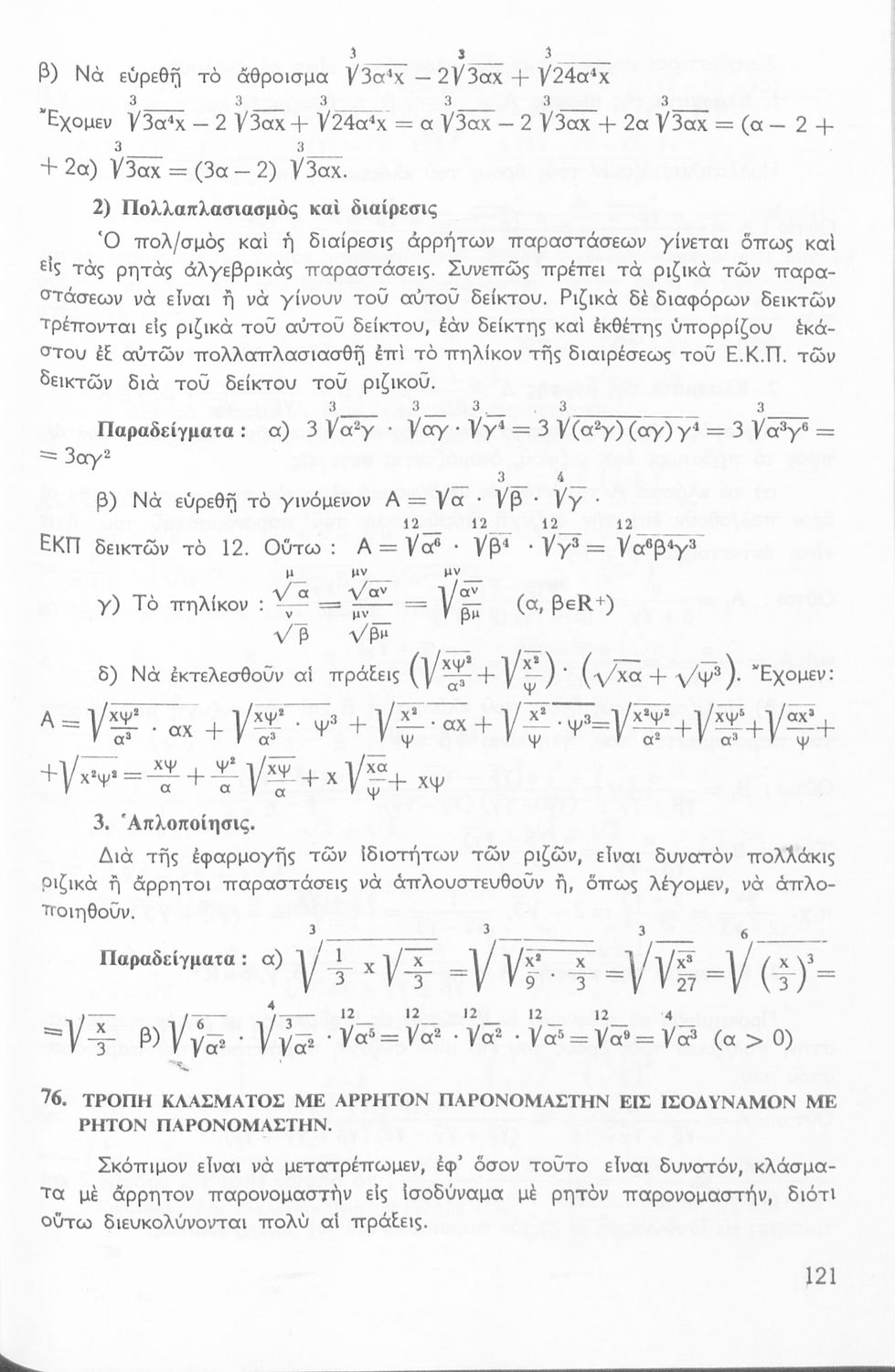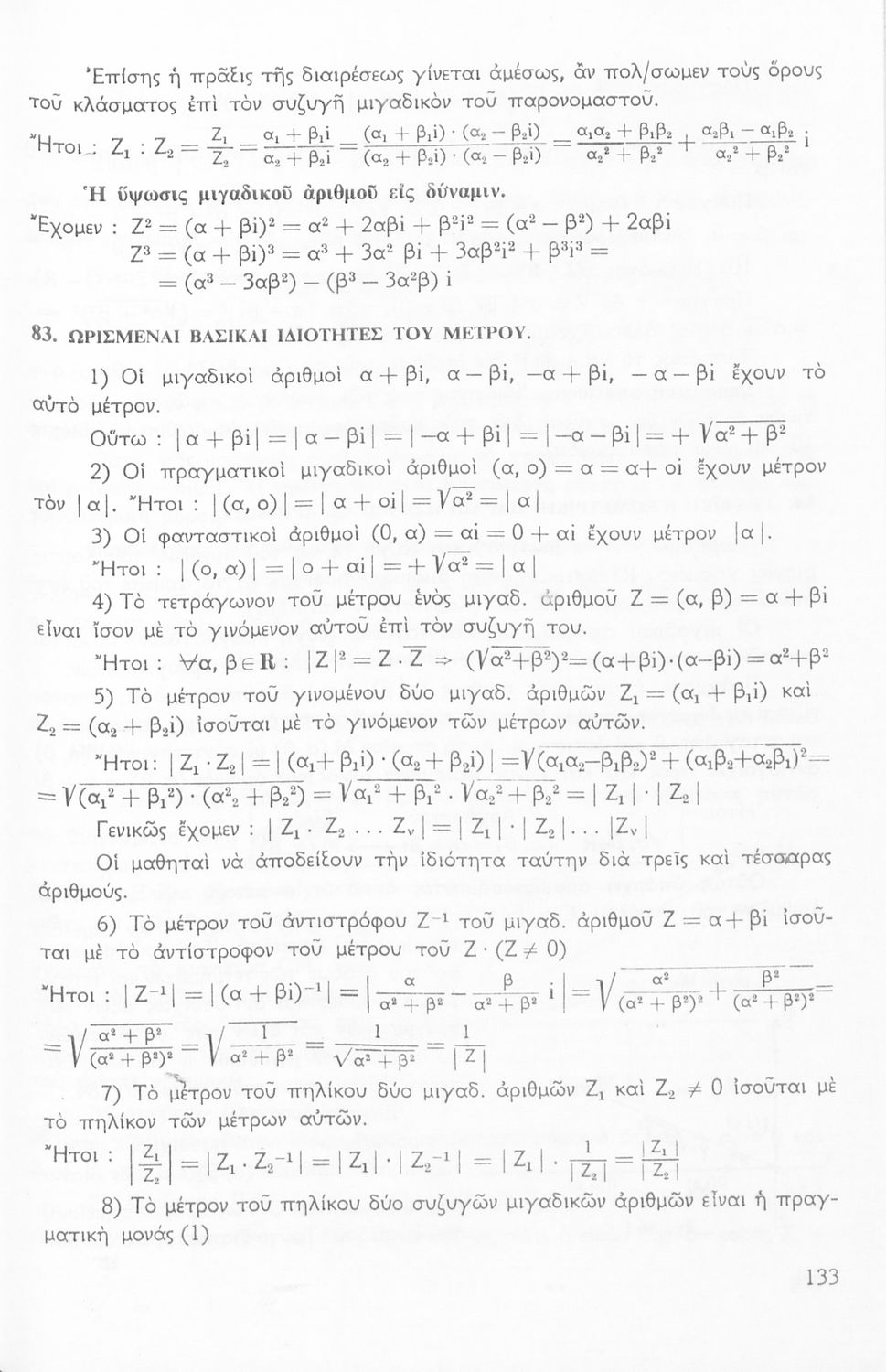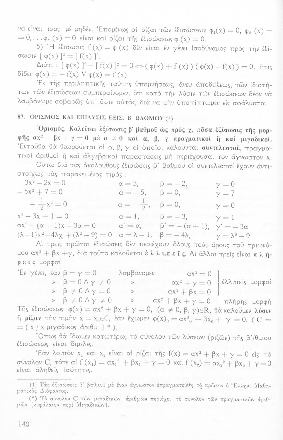 Σχολικό εγχειρίδιο Μαθηματικών Γυμνασίου που είναι χωρισμένο σε θεωρήματα, παραδείγματα και ασκήσεις και περιλαμβάνει στοιχεία Ανώτερης Άλγεβρας και Μαθηματικής Ανάλυσης.