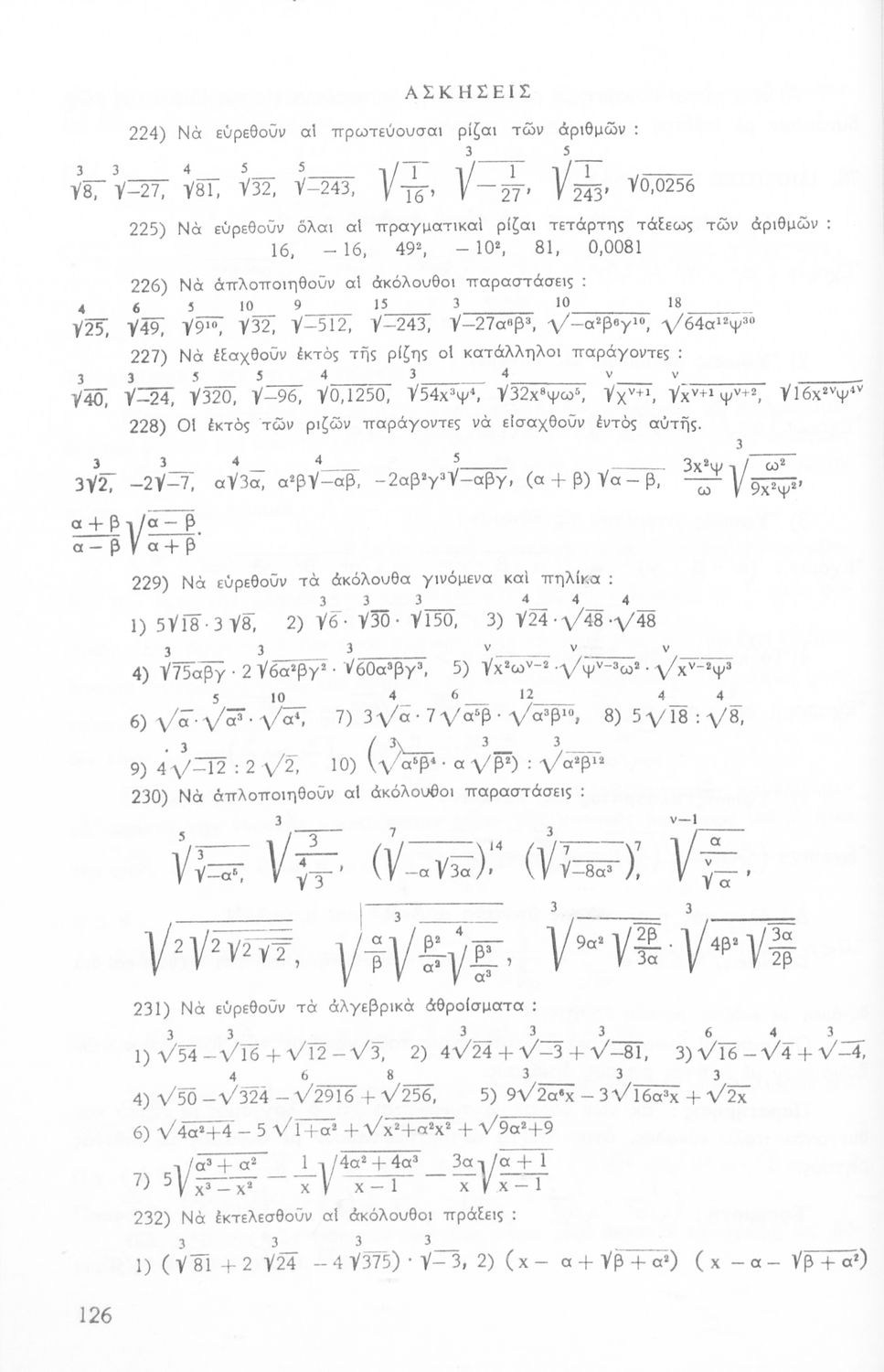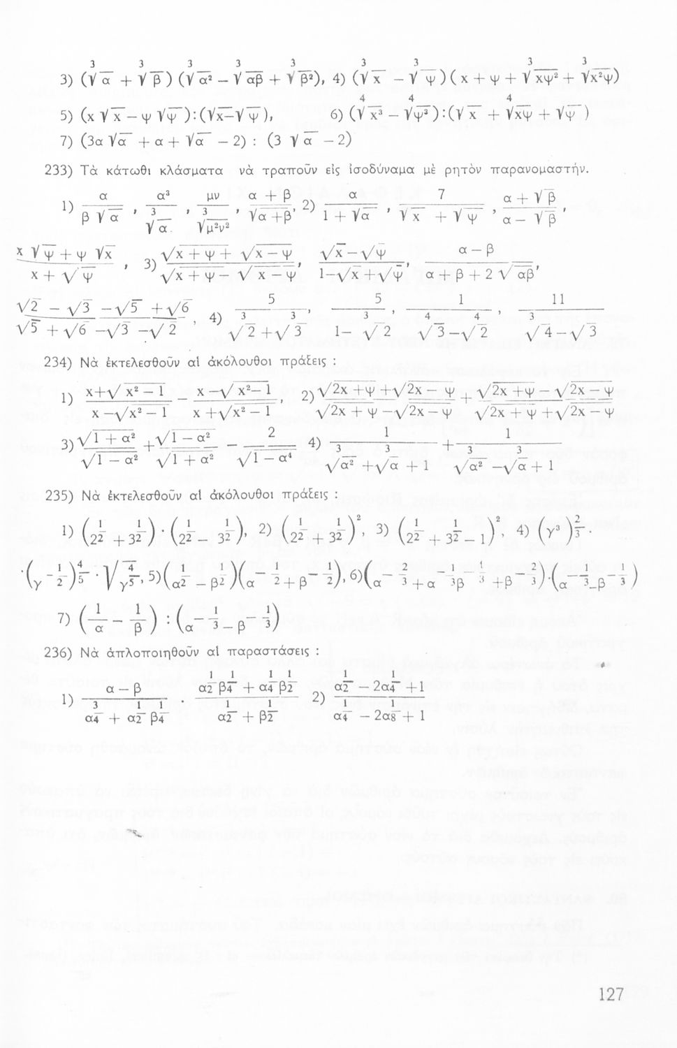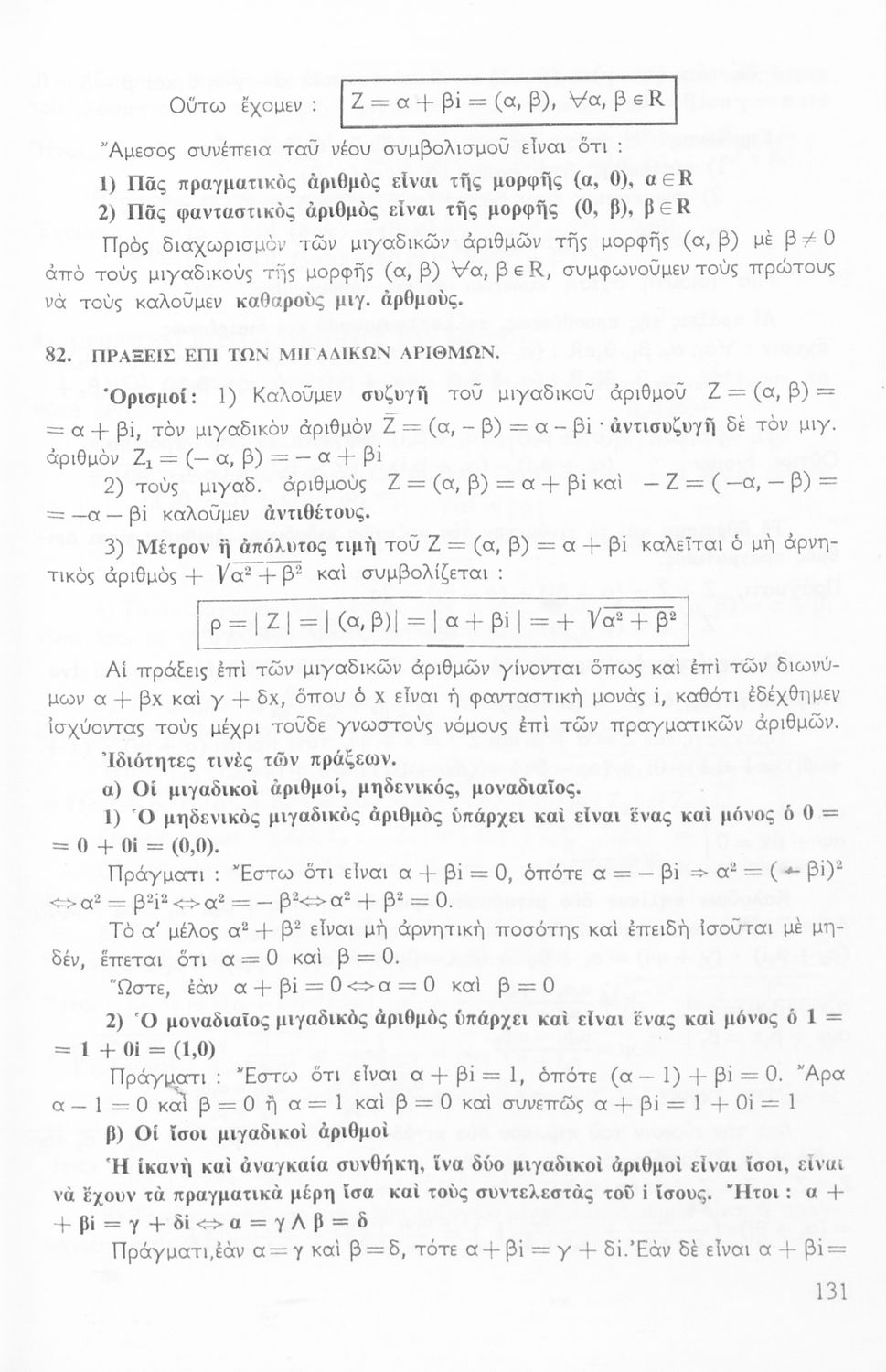 Σχολικό εγχειρίδιο Μαθηματικών Γυμνασίου που είναι χωρισμένο σε θεωρήματα, παραδείγματα και ασκήσεις και περιλαμβάνει στοιχεία Ανώτερης Άλγεβρας και Μαθηματικής Ανάλυσης.