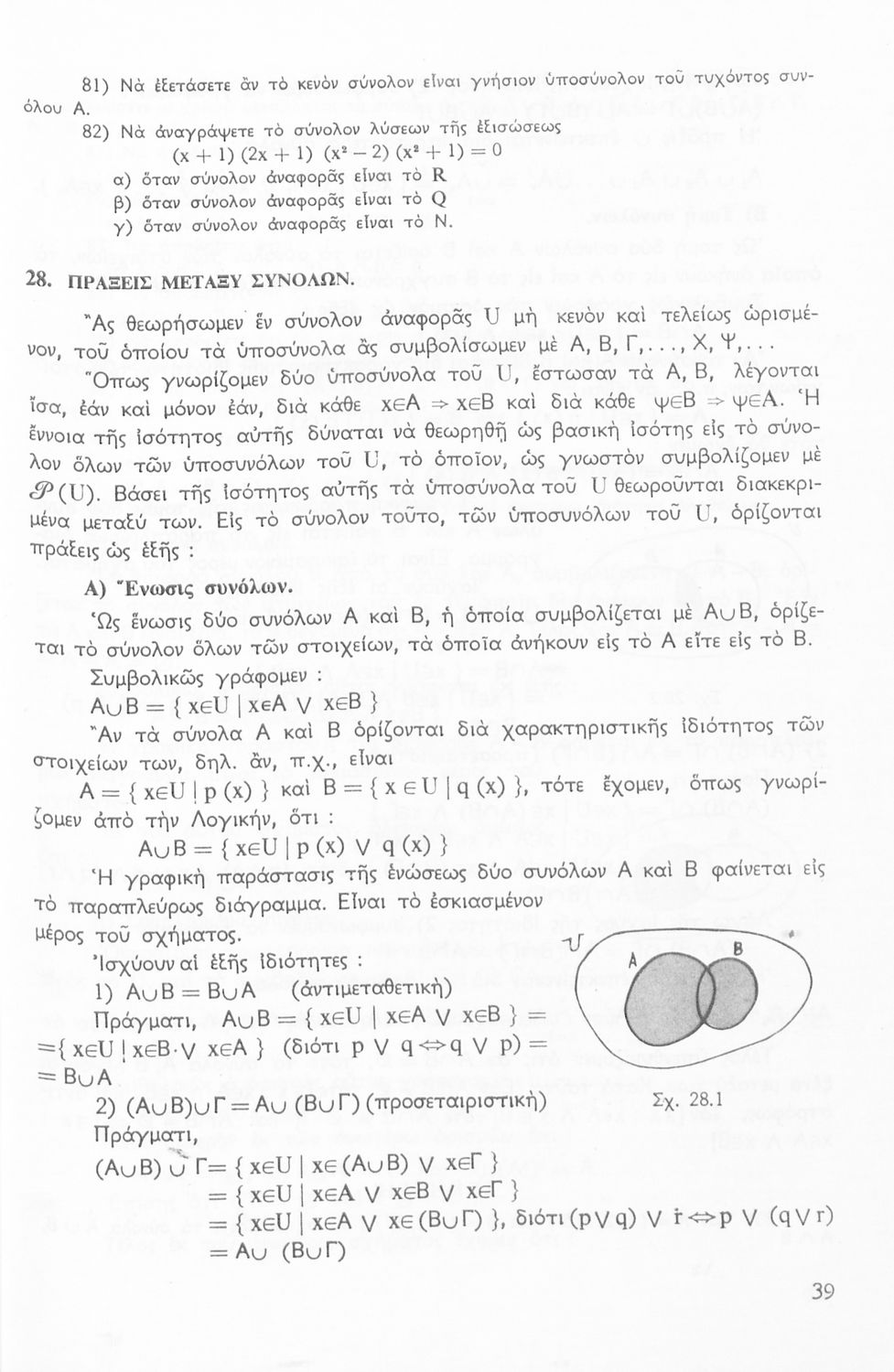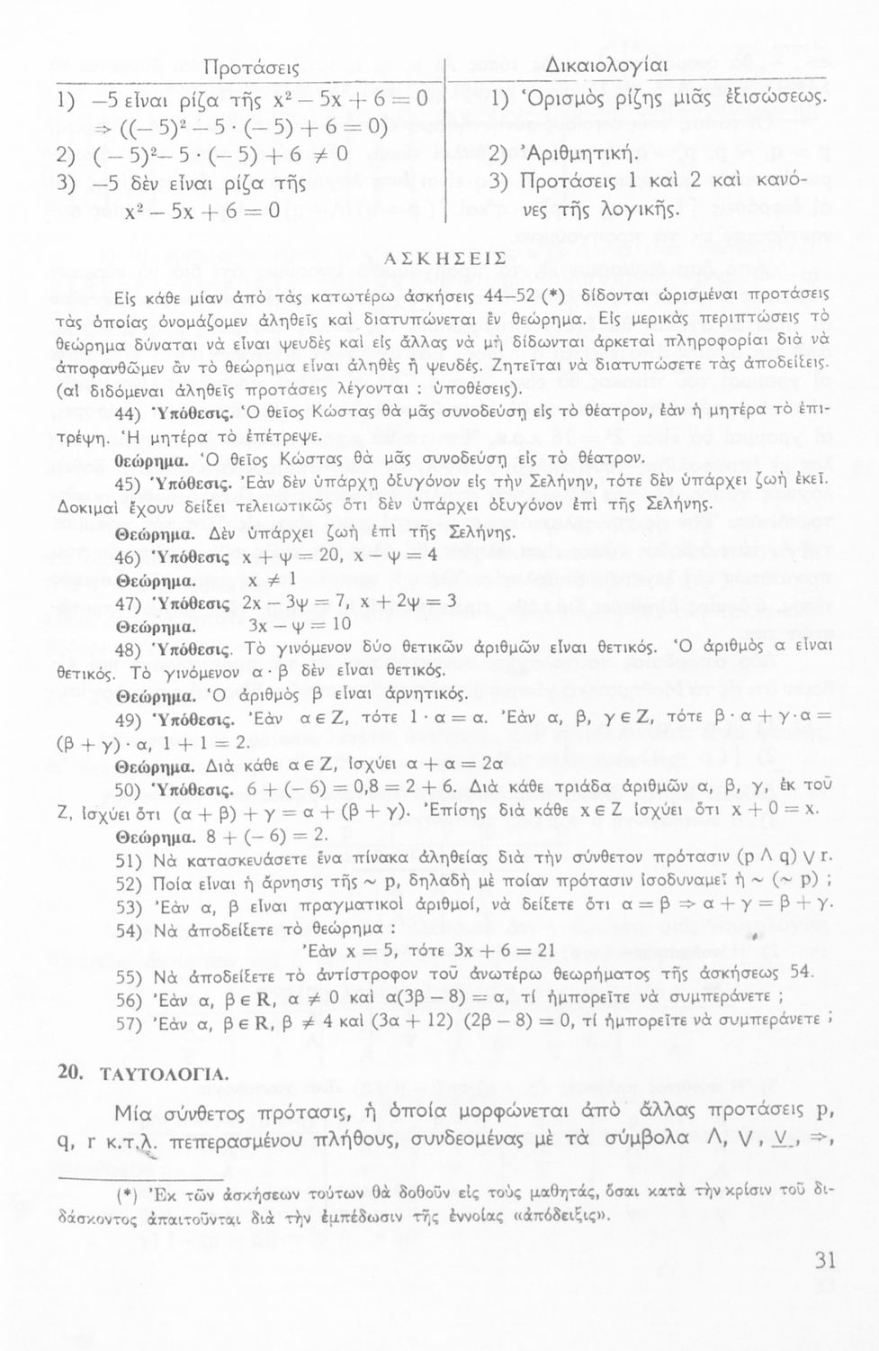 Σχολικό εγχειρίδιο Μαθηματικών Γυμνασίου που είναι χωρισμένο σε θεωρήματα, παραδείγματα και ασκήσεις και περιλαμβάνει στοιχεία Ανώτερης Άλγεβρας και Μαθηματικής Ανάλυσης.