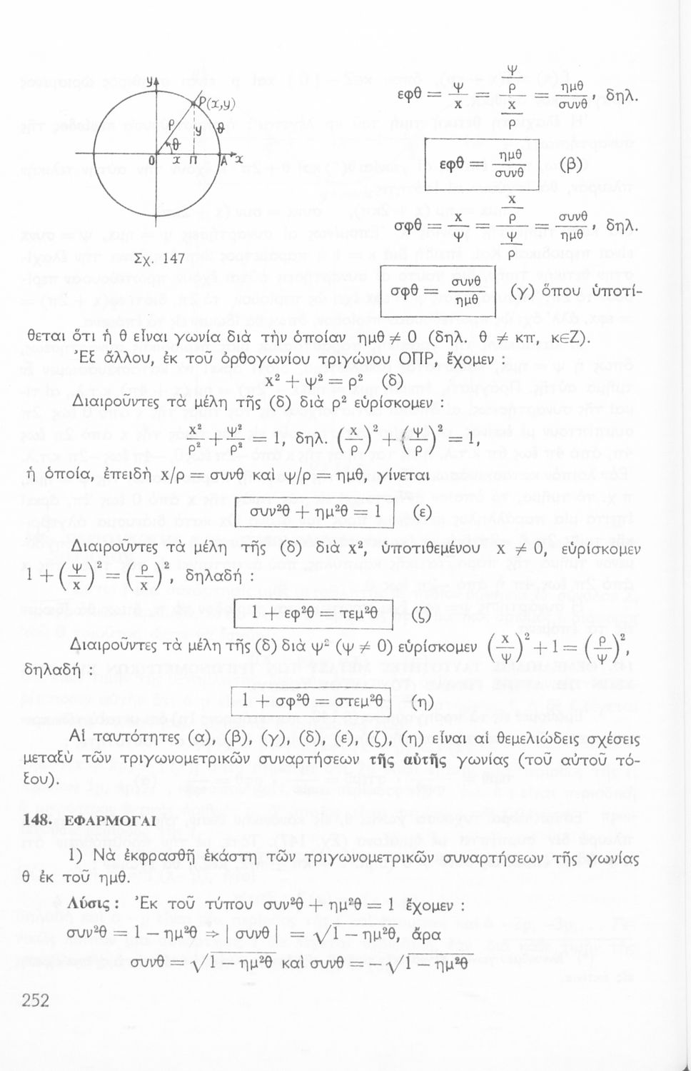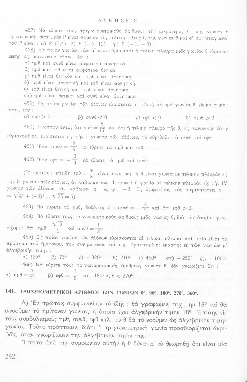Σχολικό εγχειρίδιο Μαθηματικών για την Ε΄ Γυμνασίου, χωρισμένο σε προβλήματα, εφαρμογές και ασκήσεις, που εστιάζει στην Τριγωνομετρία. Φέρει το σύμβολο της δικτατορίας.