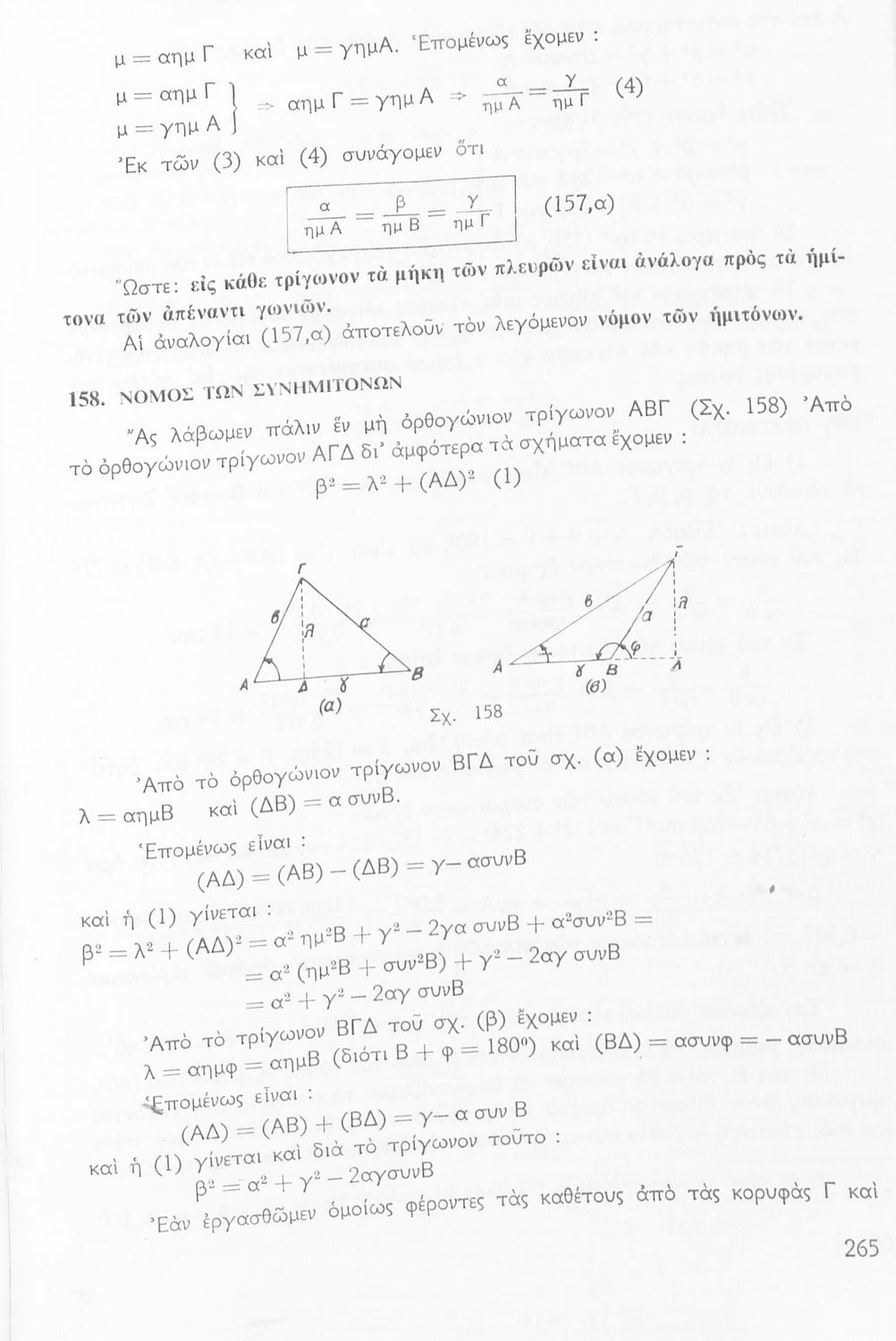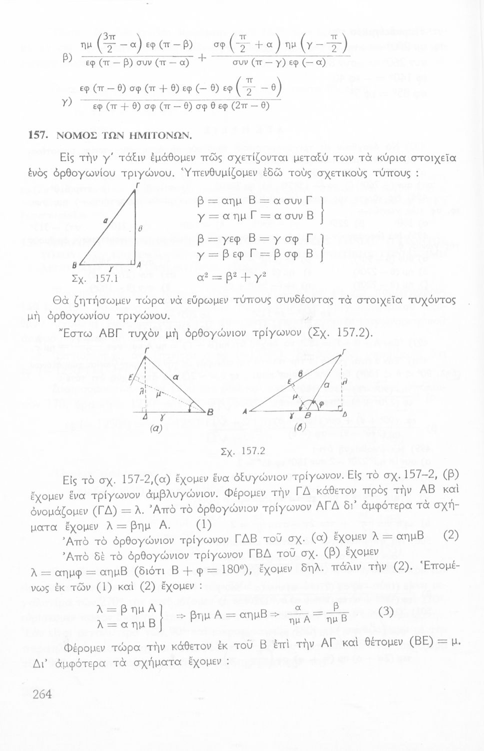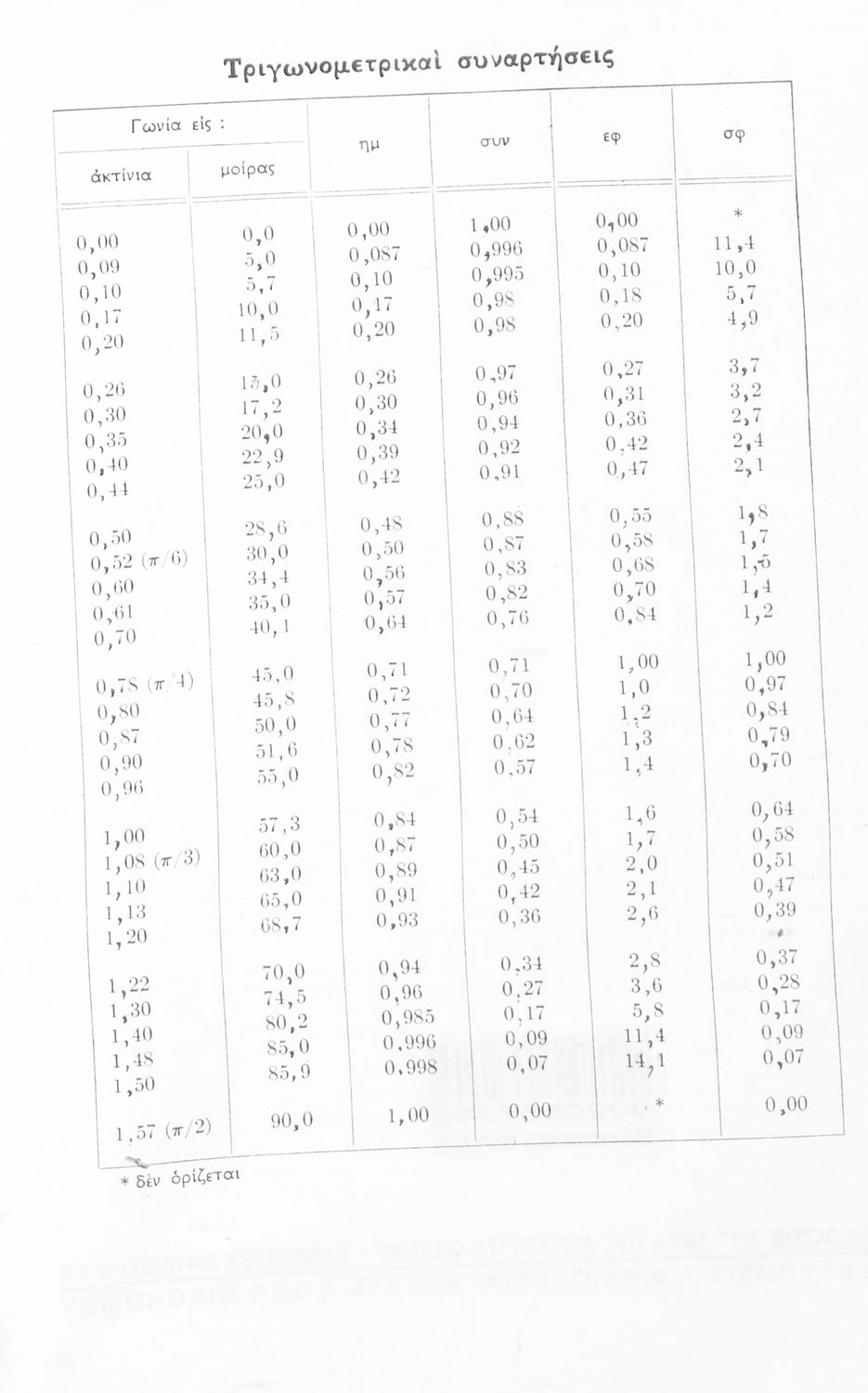 Σχολικό εγχειρίδιο Μαθηματικών για την Ε΄ Γυμνασίου, χωρισμένο σε προβλήματα, εφαρμογές και ασκήσεις, που εστιάζει στην Τριγωνομετρία. Φέρει το σύμβολο της δικτατορίας.