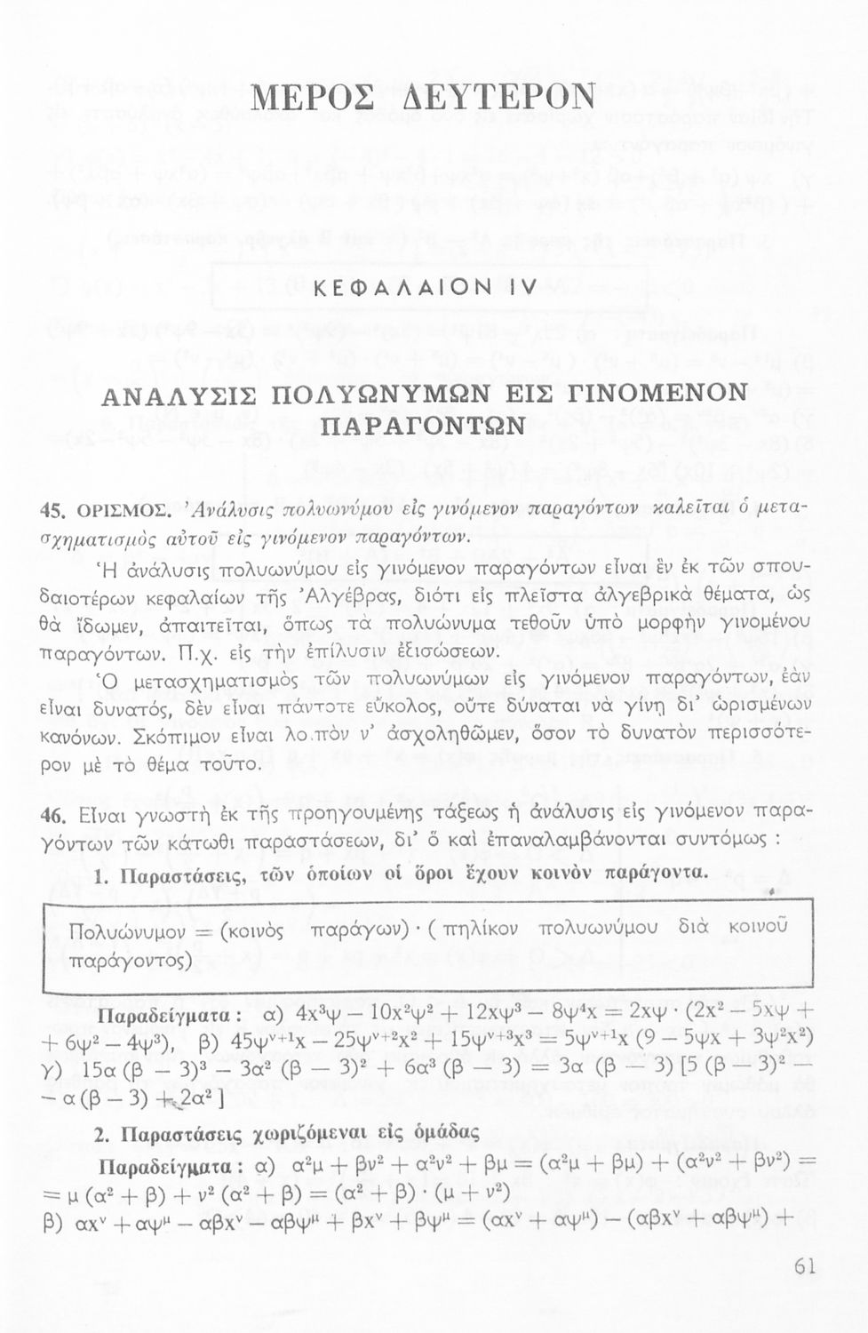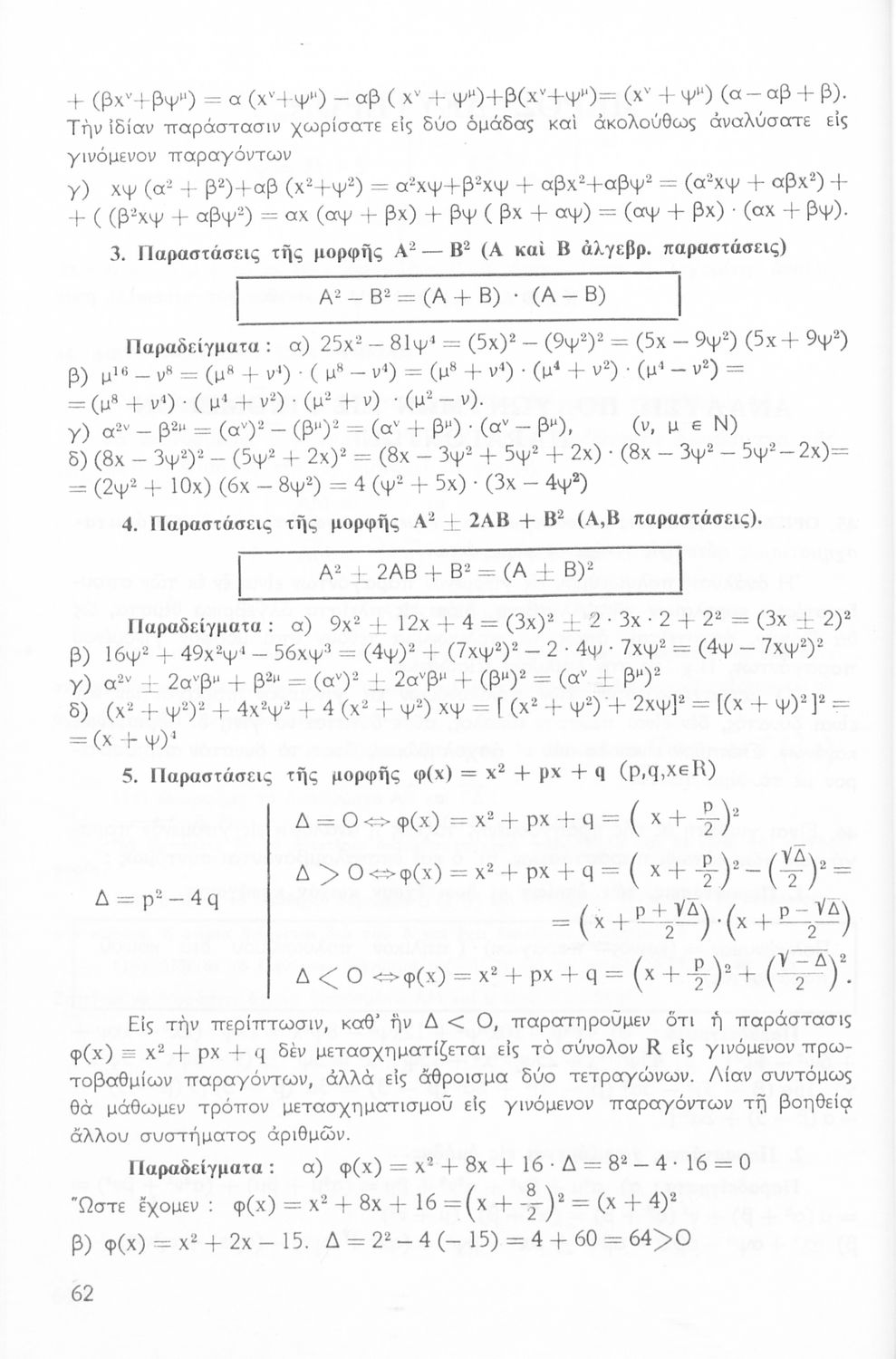 Σχολικό εγχειρίδιο Μαθηματικών Γυμνασίου που είναι χωρισμένο σε θεωρήματα, παραδείγματα και ασκήσεις και περιλαμβάνει στοιχεία Ανώτερης Άλγεβρας και Μαθηματικής Ανάλυσης.