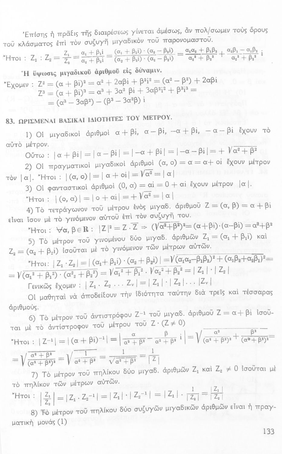 Σχολικό εγχειρίδιο Μαθηματικών Γυμνασίου που είναι χωρισμένο σε θεωρήματα, παραδείγματα και ασκήσεις και περιλαμβάνει στοιχεία Ανώτερης Άλγεβρας και Μαθηματικής Ανάλυσης.