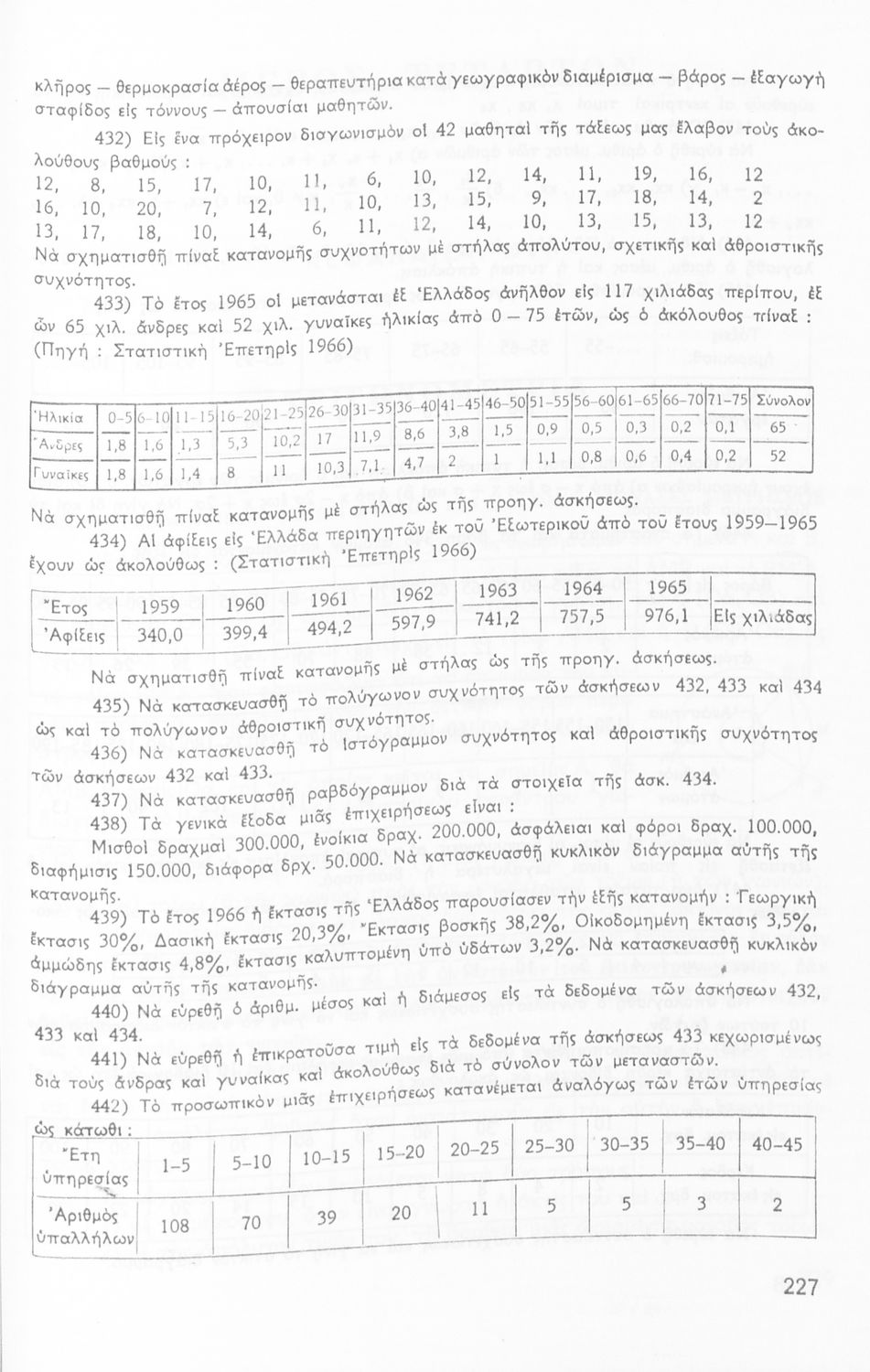 Σχολικό εγχειρίδιο Μαθηματικών Δ΄ Γυμνασίου χωρισμένο σε ορισμούς, παραδείγματα και ασκήσεις. Περιέχει στοιχεία Περιγραφικής Στατιστικής και Τριγωνομετρίας. Φέρει το σύμβολο της δικτατορίας.