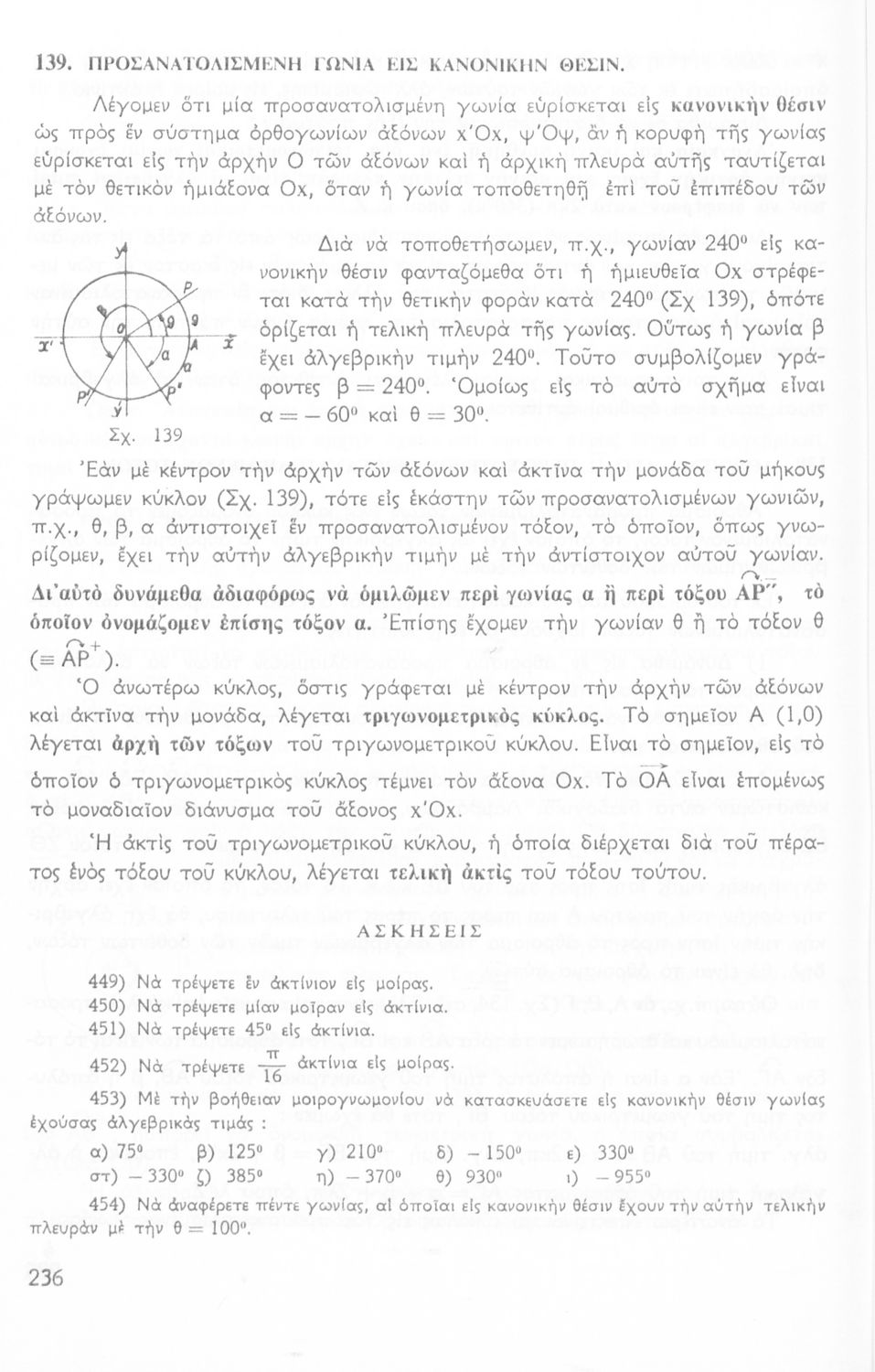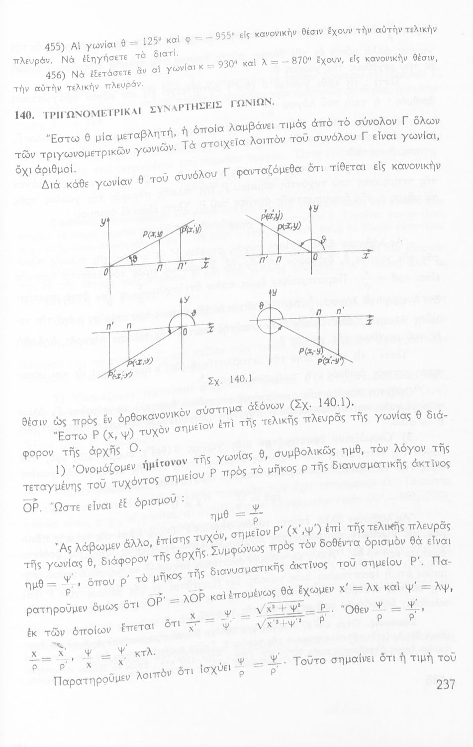 Σχολικό εγχειρίδιο Μαθηματικών για την Ε΄ Γυμνασίου, χωρισμένο σε προβλήματα, εφαρμογές και ασκήσεις, που εστιάζει στην Τριγωνομετρία. Φέρει το σύμβολο της δικτατορίας.