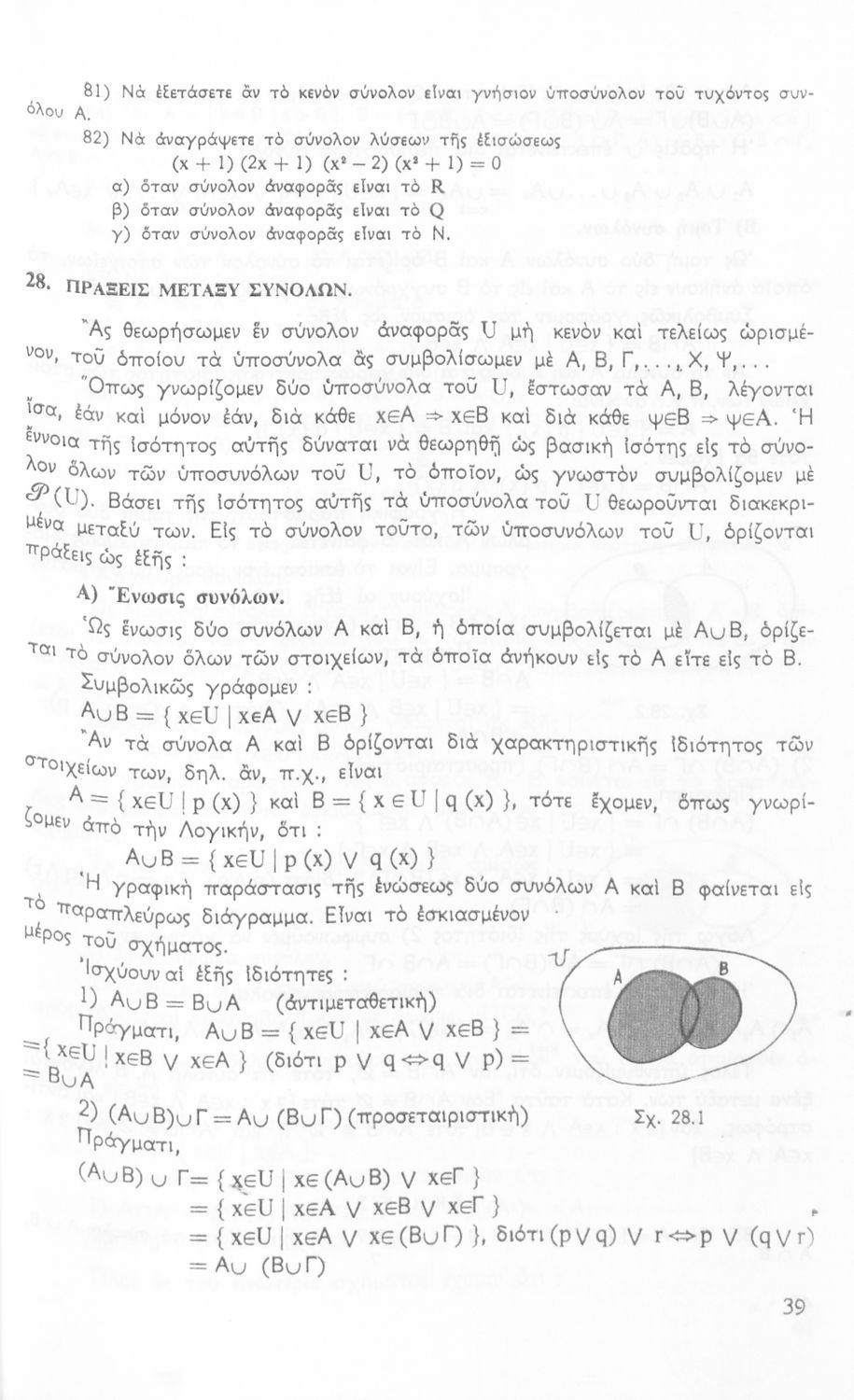 Σχολικό εγχειρίδιο Μαθηματικών Γυμνασίου που είναι χωρισμένο σε θεωρήματα, παραδείγματα και ασκήσεις και περιλαμβάνει στοιχεία Ανώτερης Άλγεβρας και Μαθηματικής Ανάλυσης.