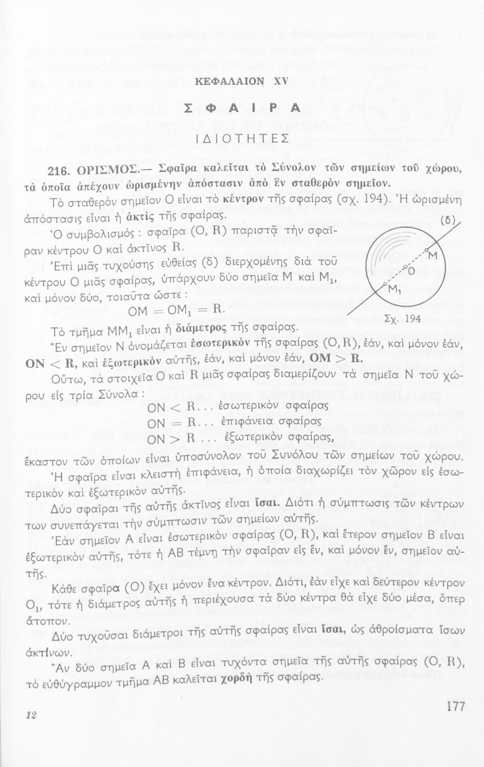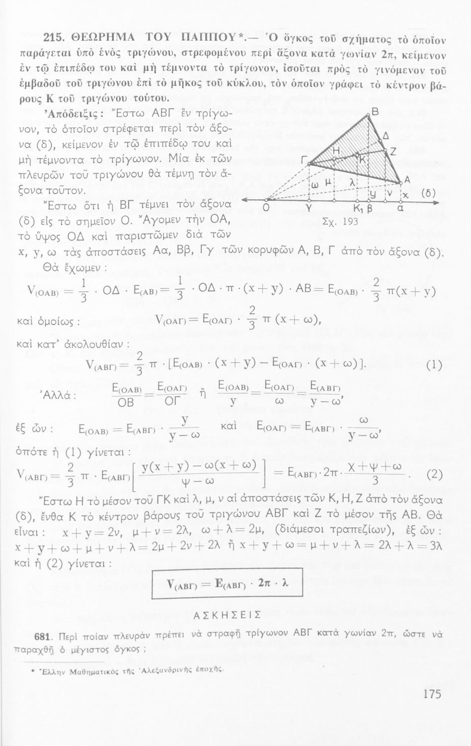 Σχολικό εγχειρίδιο Μαθηματικών Δ΄ και Ε΄ Γυμνασίου που είναι χωρισμένο σε θεωρήματα και ασκήσεις και εστιάζει στη Γεωμετρία. Φέρει το σύμβολο της δικτατορίας.