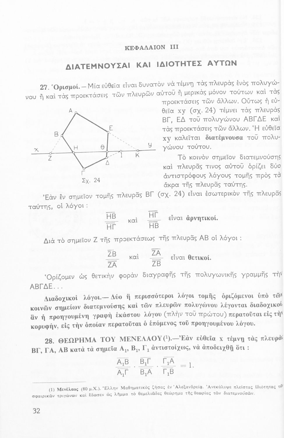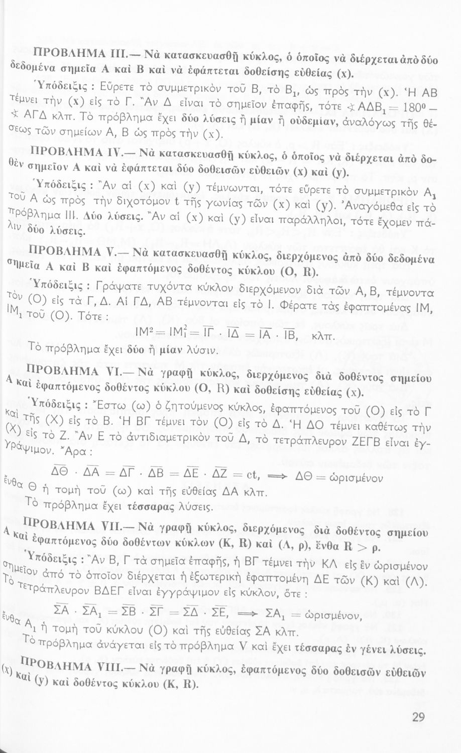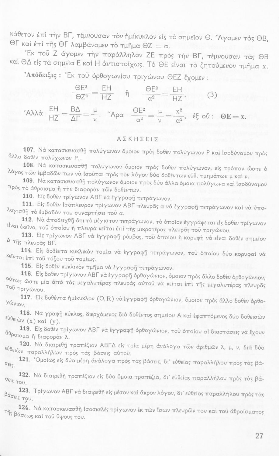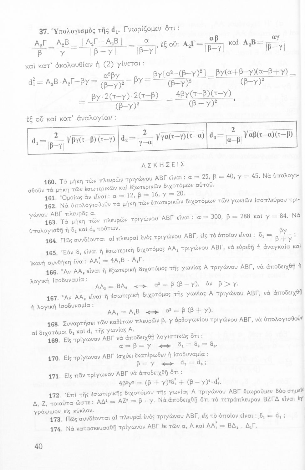 Βαθμίδα εκπαίδευσης: Δευτεροβάθμια Τάξη: Δ' Γυμνασίου / Ε' Γυμνασίου Μάθημα: Μαθηματικά Γλώσσα: Καθαρεύουσα Παρουσίαση περιεχομένου: Σχολικό εγχειρίδιο Μαθηματικών Δ΄ και Ε΄ Γυμνασίου που είναι χωρισμένο σε θεωρήματα και ασκήσεις και εστιάζει στη Γεωμετρία. Φέρει το σύμβολο της δικτατορίας. |