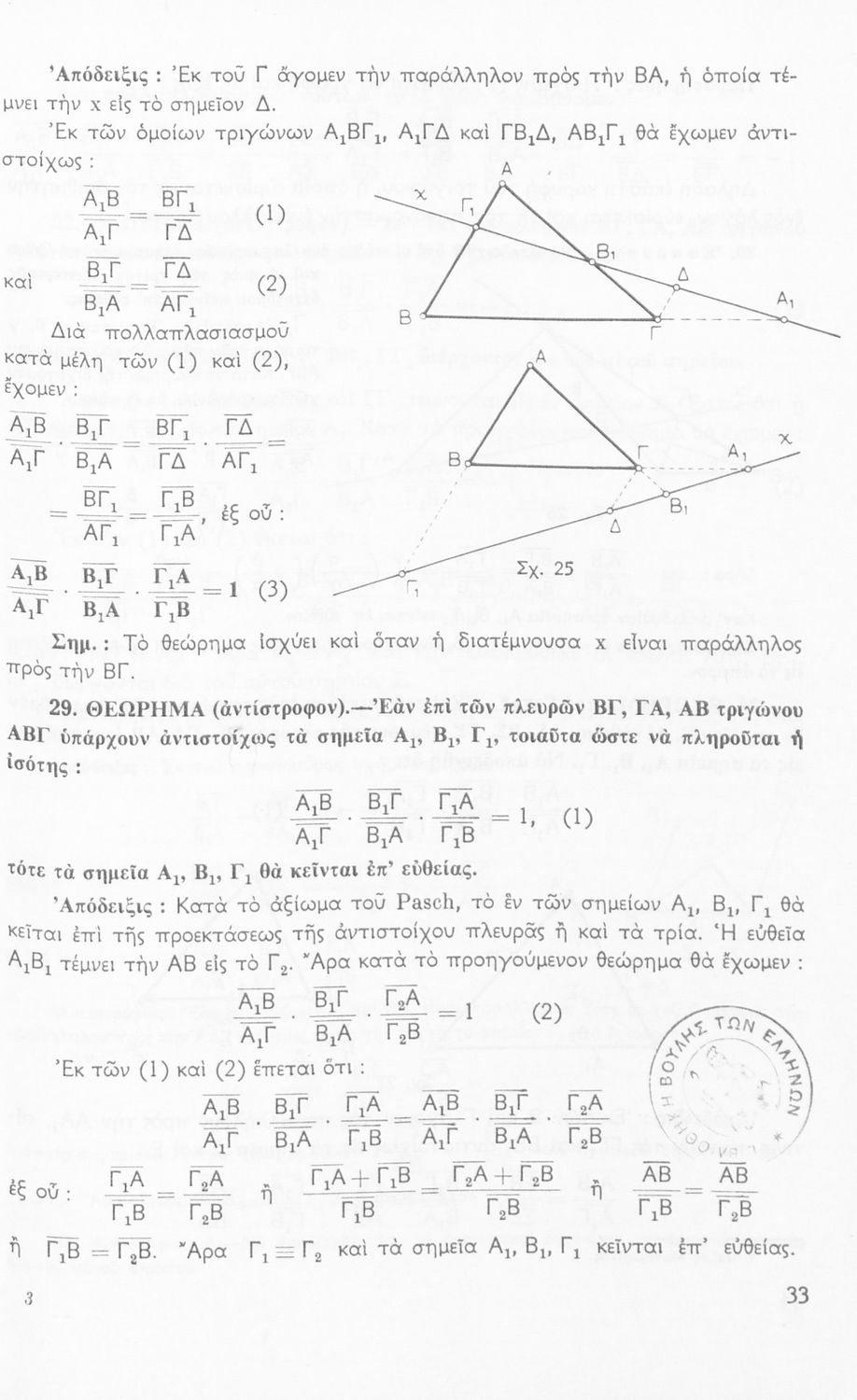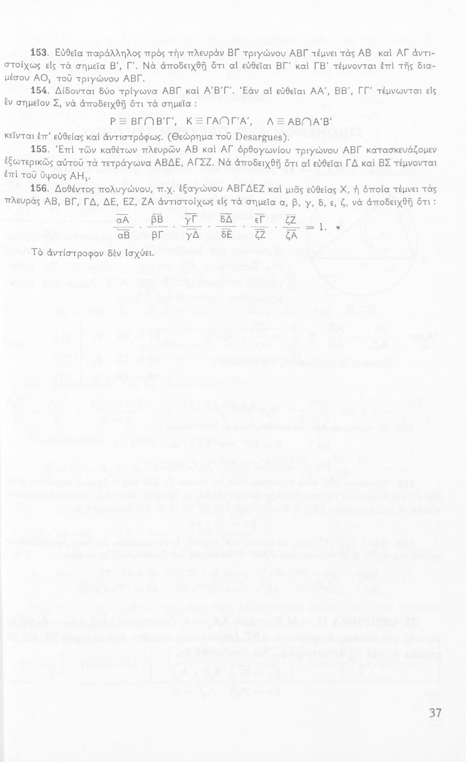 Σχολικό εγχειρίδιο Μαθηματικών Δ΄ και Ε΄ Γυμνασίου που είναι χωρισμένο σε θεωρήματα και ασκήσεις και εστιάζει στη Γεωμετρία. Φέρει το σύμβολο της δικτατορίας.