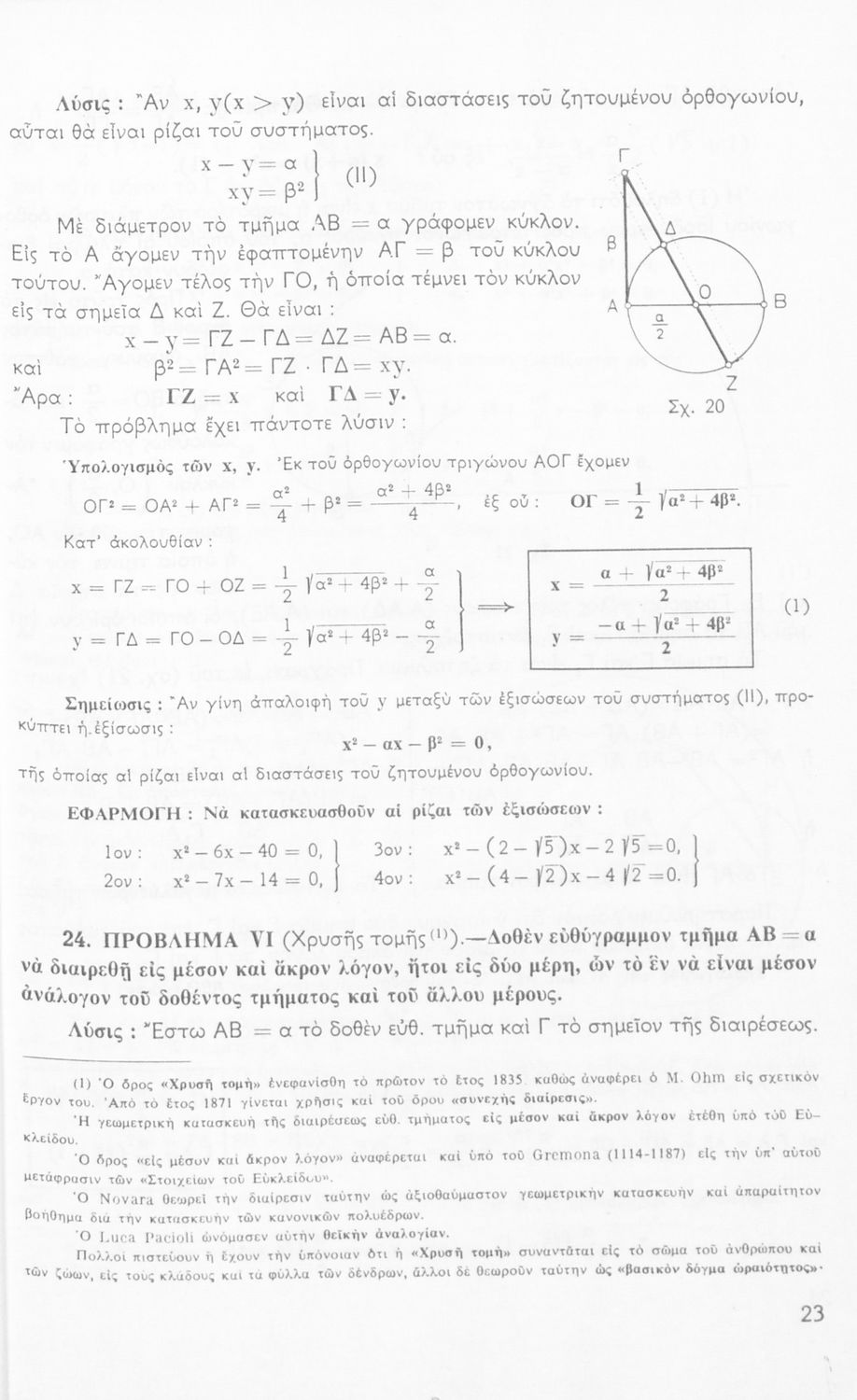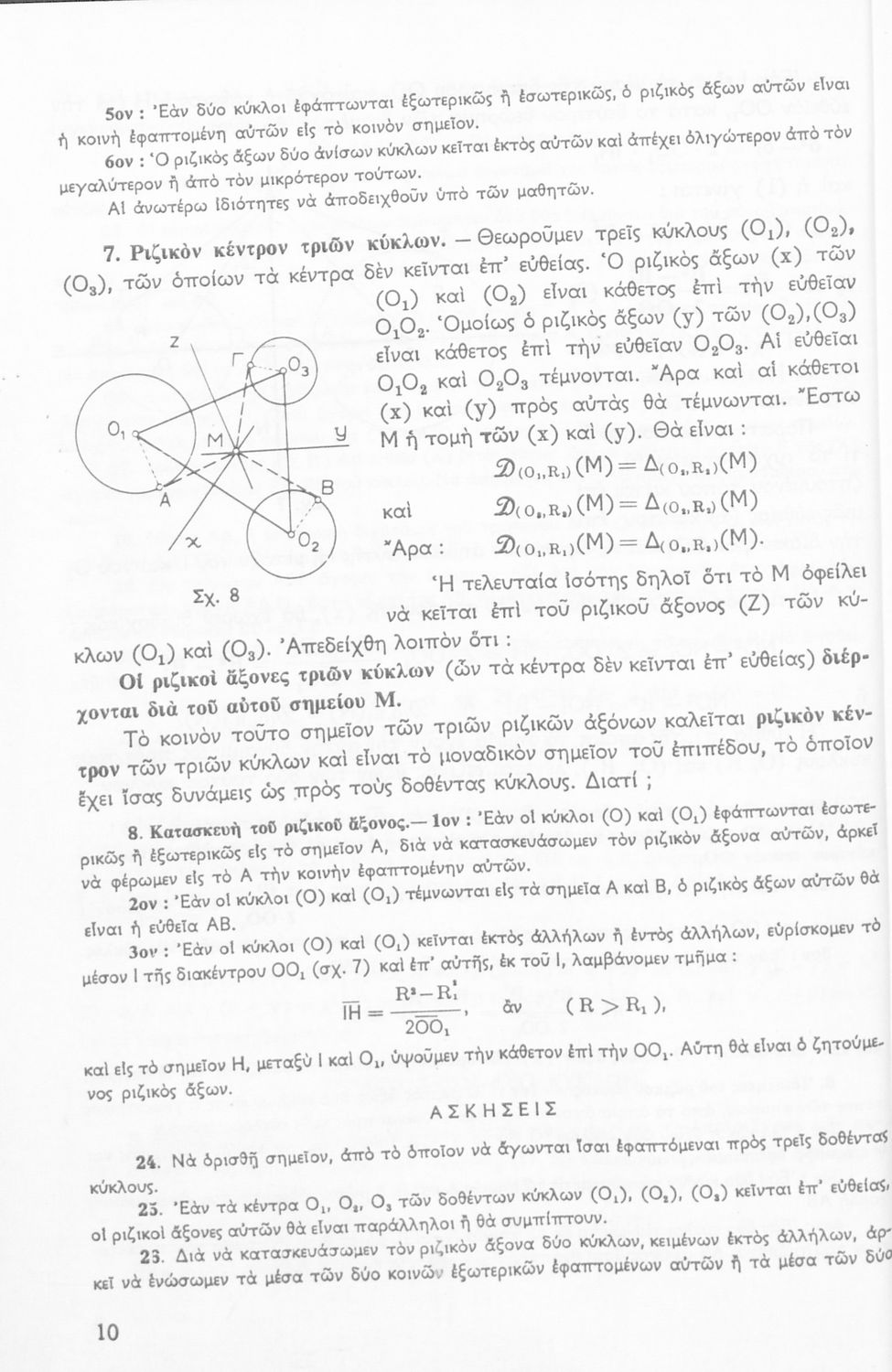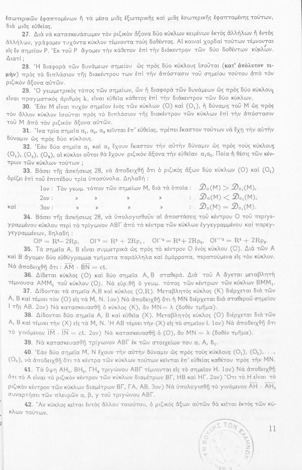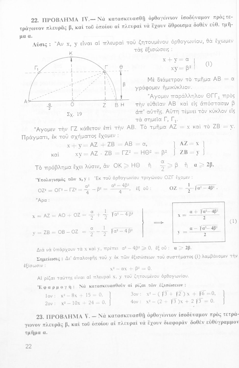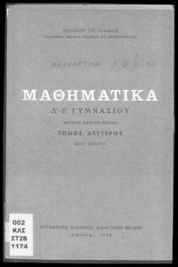 Βαθμίδα εκπαίδευσης: Δευτεροβάθμια Τάξη: Δ' Γυμνασίου / Ε' Γυμνασίου Μάθημα: Μαθηματικά Γλώσσα: Καθαρεύουσα Παρουσίαση περιεχομένου: Σχολικό εγχειρίδιο Μαθηματικών Δ΄ και Ε΄ Γυμνασίου που είναι χωρισμένο σε θεωρήματα και ασκήσεις και εστιάζει στη Γεωμετρία. Φέρει το σύμβολο της δικτατορίας. |