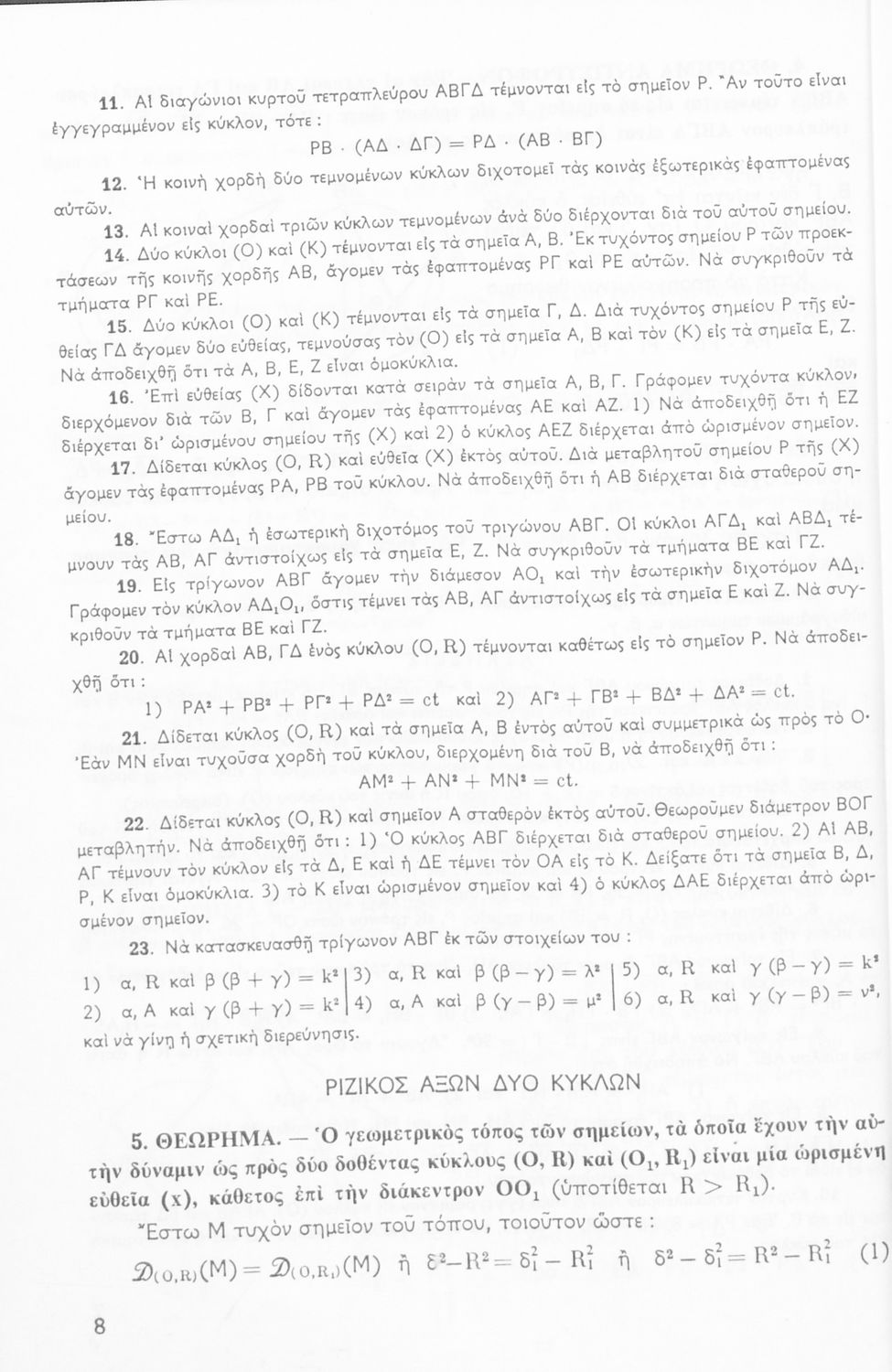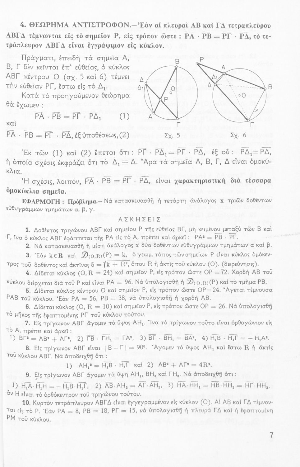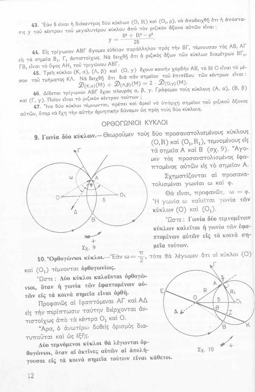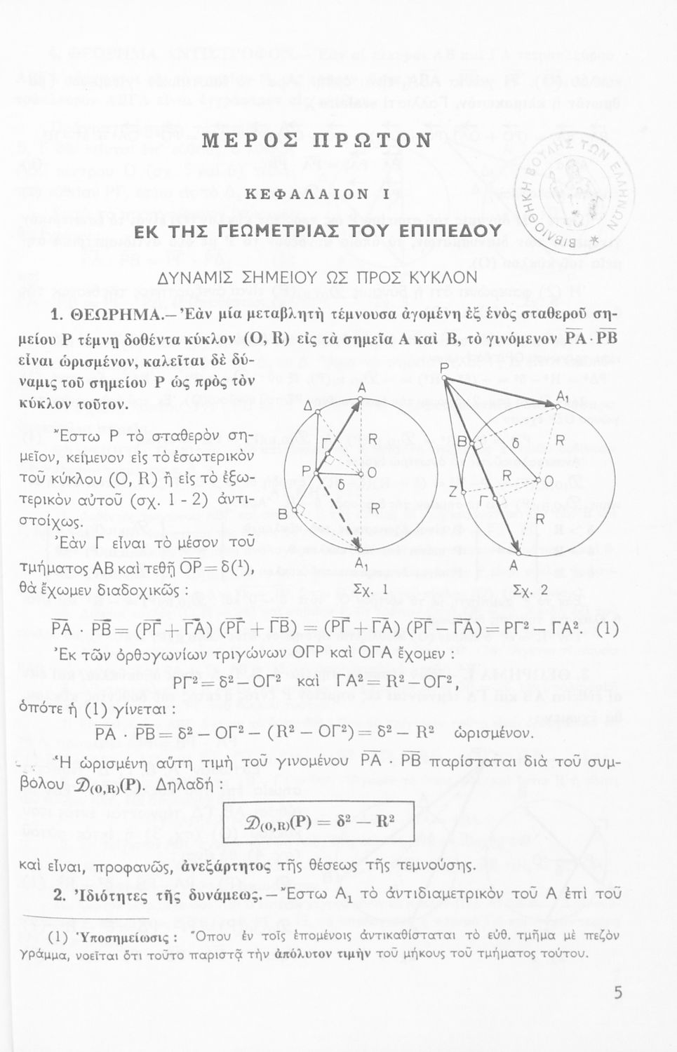 Σχολικό εγχειρίδιο Μαθηματικών Δ΄ και Ε΄ Γυμνασίου που είναι χωρισμένο σε θεωρήματα και ασκήσεις και εστιάζει στη Γεωμετρία. Φέρει το σύμβολο της δικτατορίας.