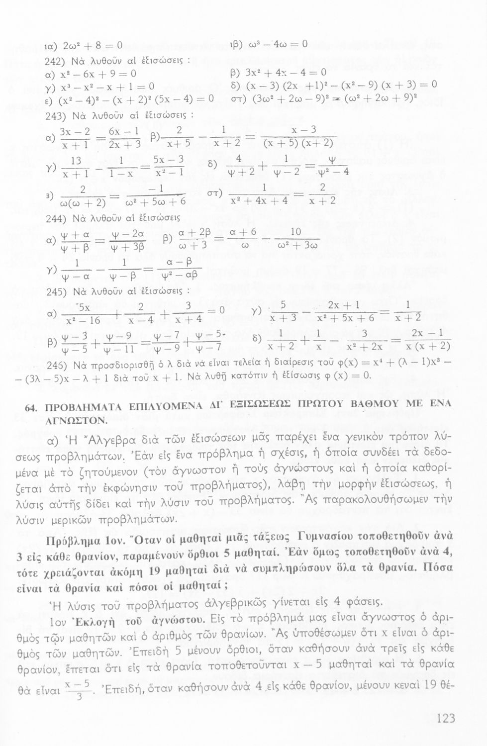 Σχολικό εγχειρίδιο μαθηματικών Γ΄ Γυμνασίου που περιλαμβάνει θεωρία, παραδείγματα και ασκήσεις. Φέρει το σύμβολο της δικτατορίας.