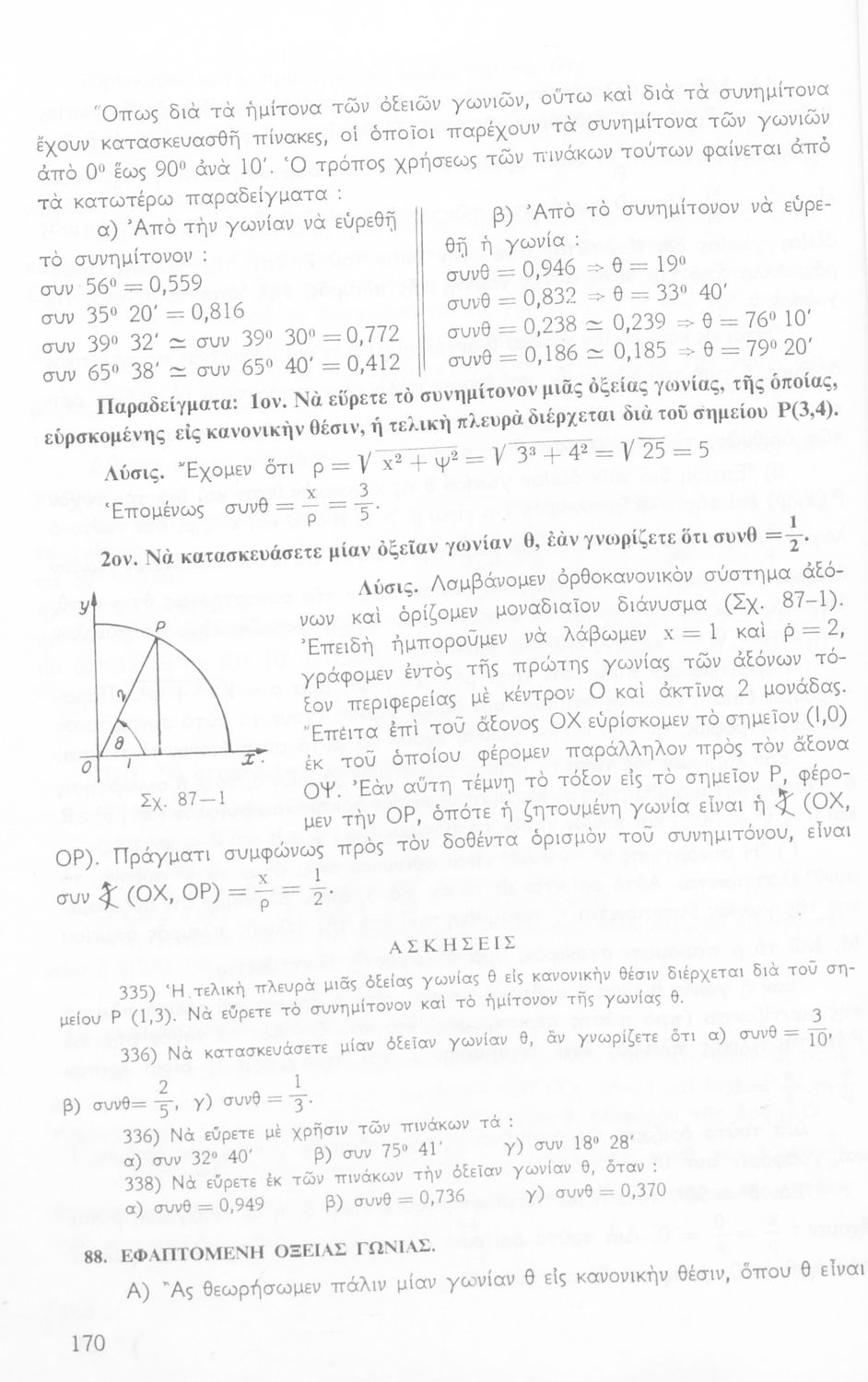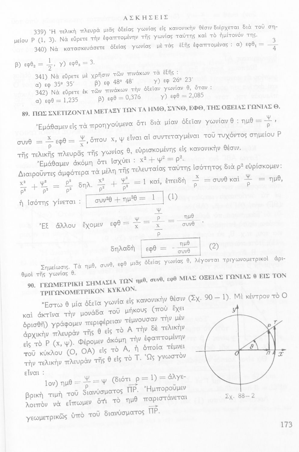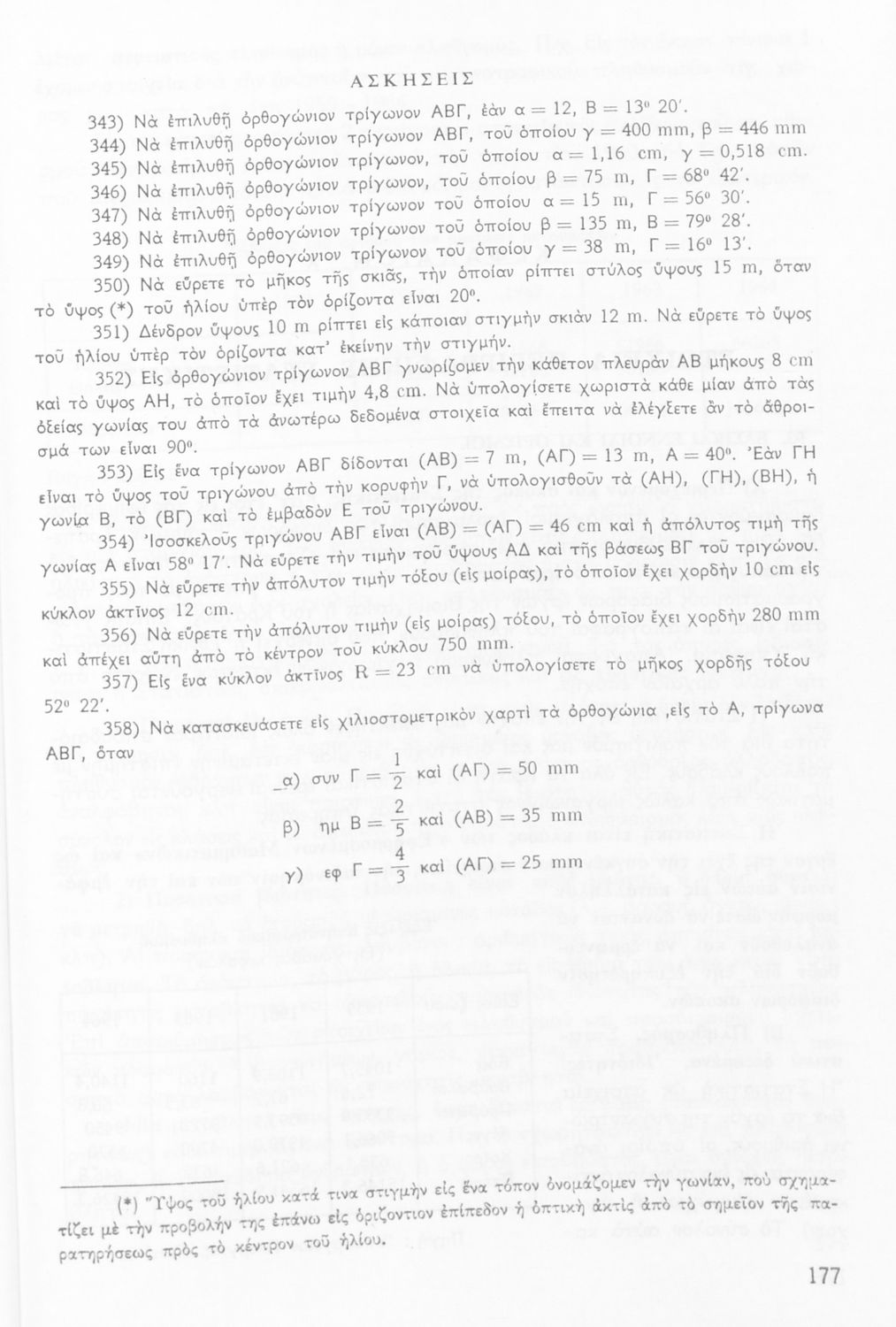 Σχολικό εγχειρίδιο Μαθηματικών για την Ε΄ Γυμνασίου, χωρισμένο σε προβλήματα, εφαρμογές και ασκήσεις, που εστιάζει στην Τριγωνομετρία. Φέρει το σύμβολο της δικτατορίας.