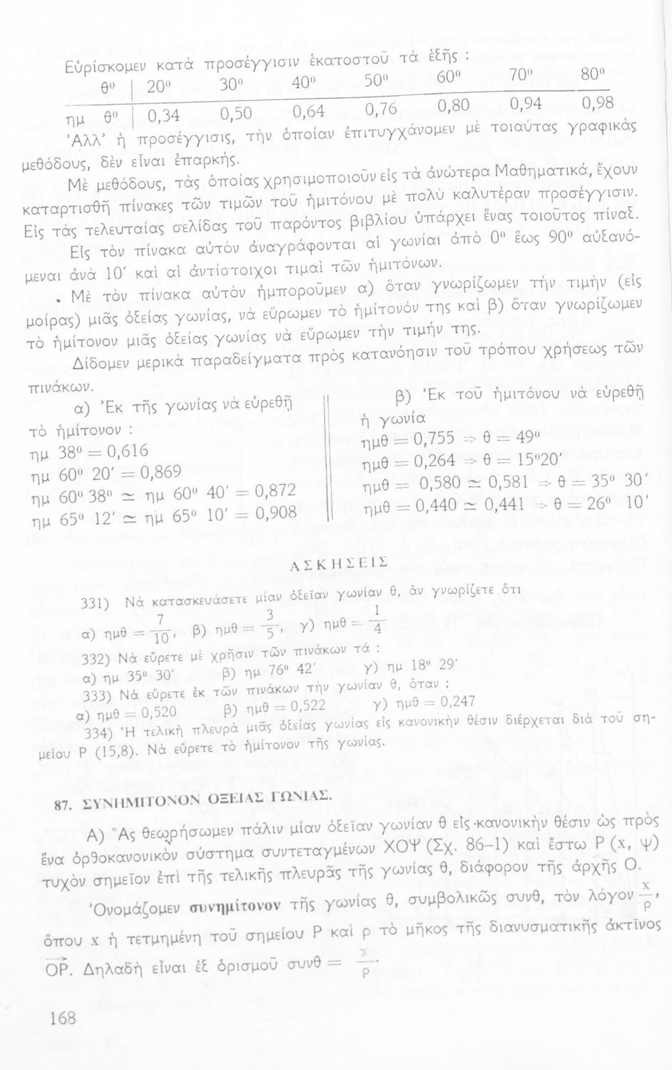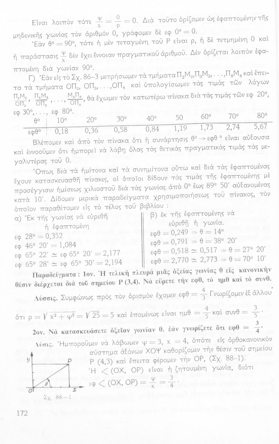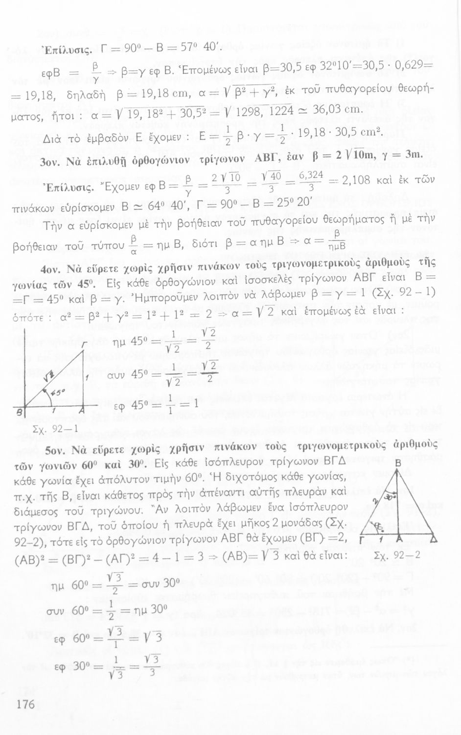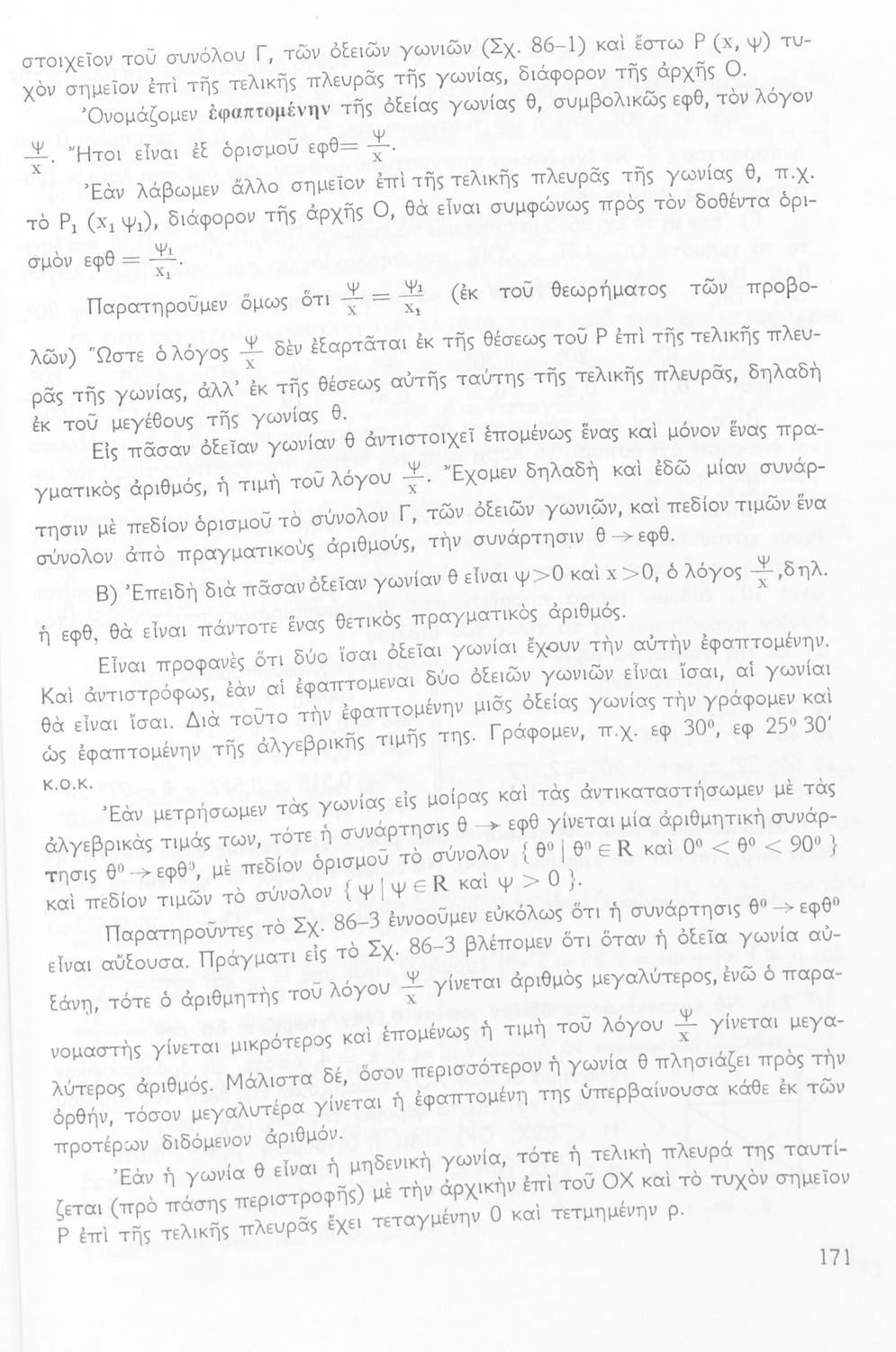 Σχολικό εγχειρίδιο Μαθηματικών για την Ε΄ Γυμνασίου, χωρισμένο σε προβλήματα, εφαρμογές και ασκήσεις, που εστιάζει στην Τριγωνομετρία. Φέρει το σύμβολο της δικτατορίας.