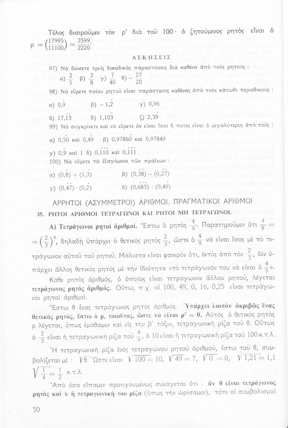 Μαθηματικά Γ΄ Γυμνασίου, τόμος πρώτος