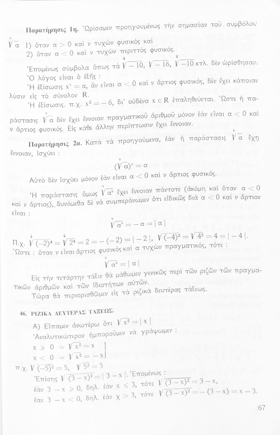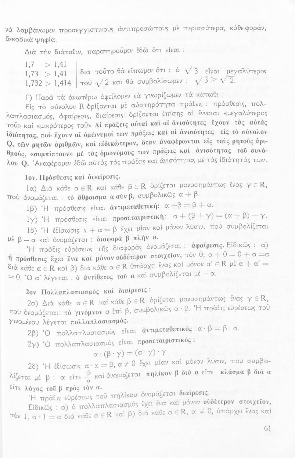 Μαθηματικά Γ΄ Γυμνασίου, τόμος πρώτος