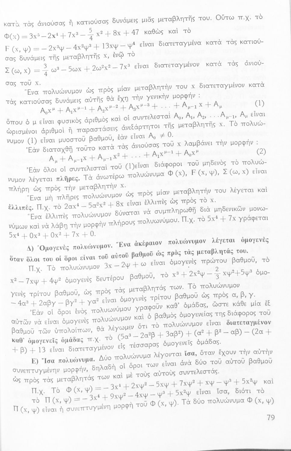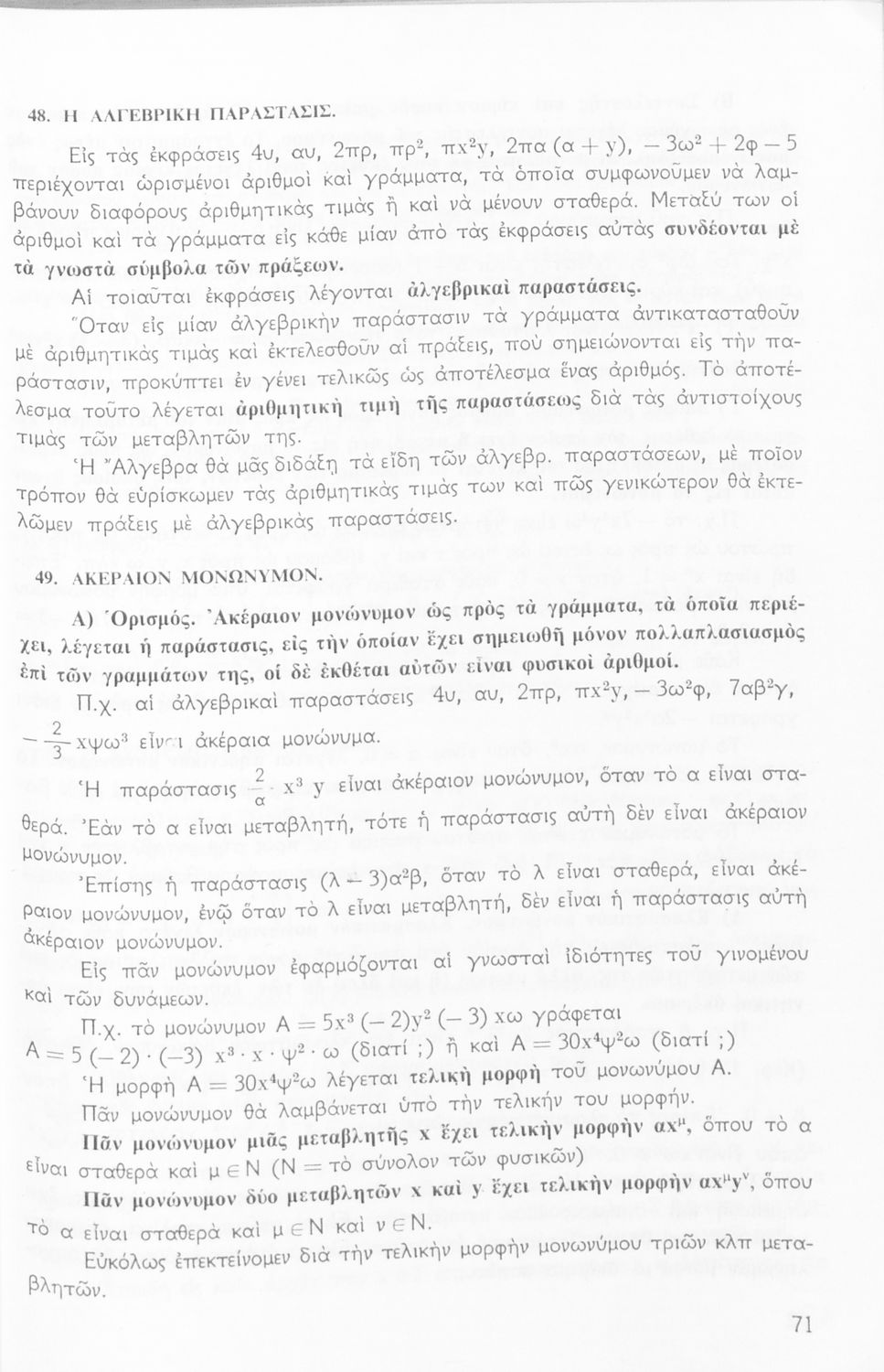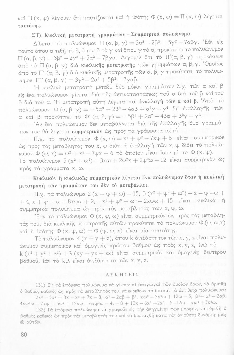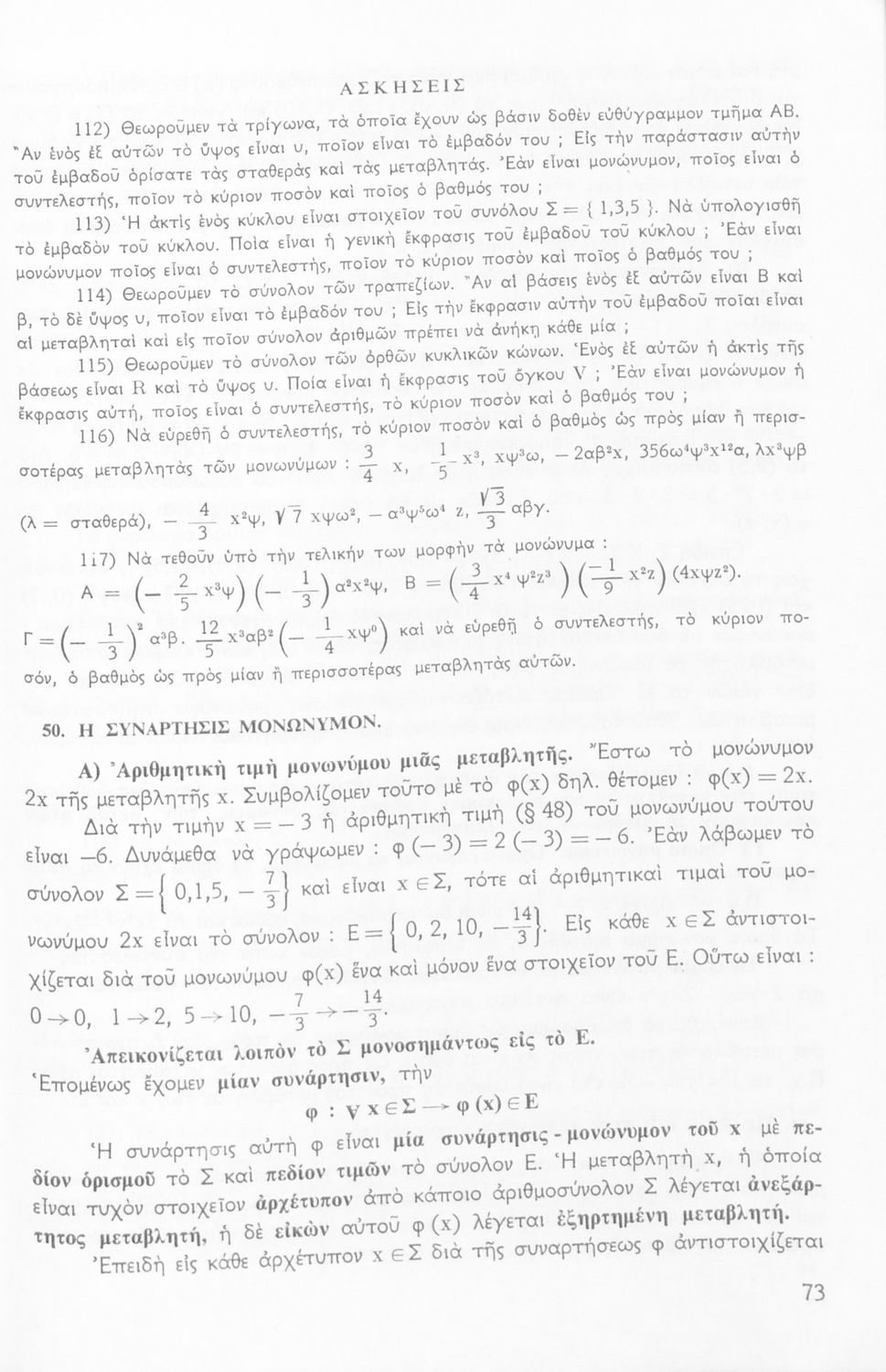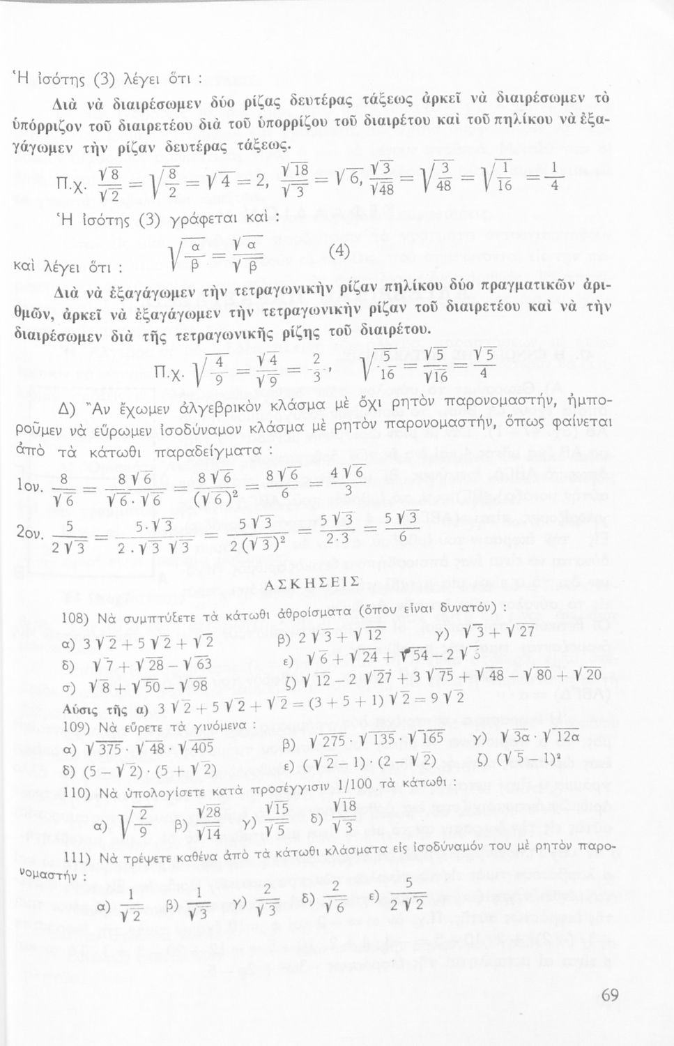Σχολικό εγχειρίδιο μαθηματικών Γ΄ Γυμνασίου που περιλαμβάνει θεωρία, παραδείγματα και ασκήσεις. Φέρει το σύμβολο της δικτατορίας.