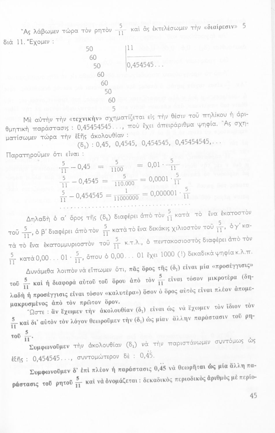 Σχολικό εγχειρίδιο Μαθηματικών Ε΄ Γυμνασίου χωρισμένο σε θεωρία και ασκήσεις. Φέρει το σύμβολο της δικτατορίας.