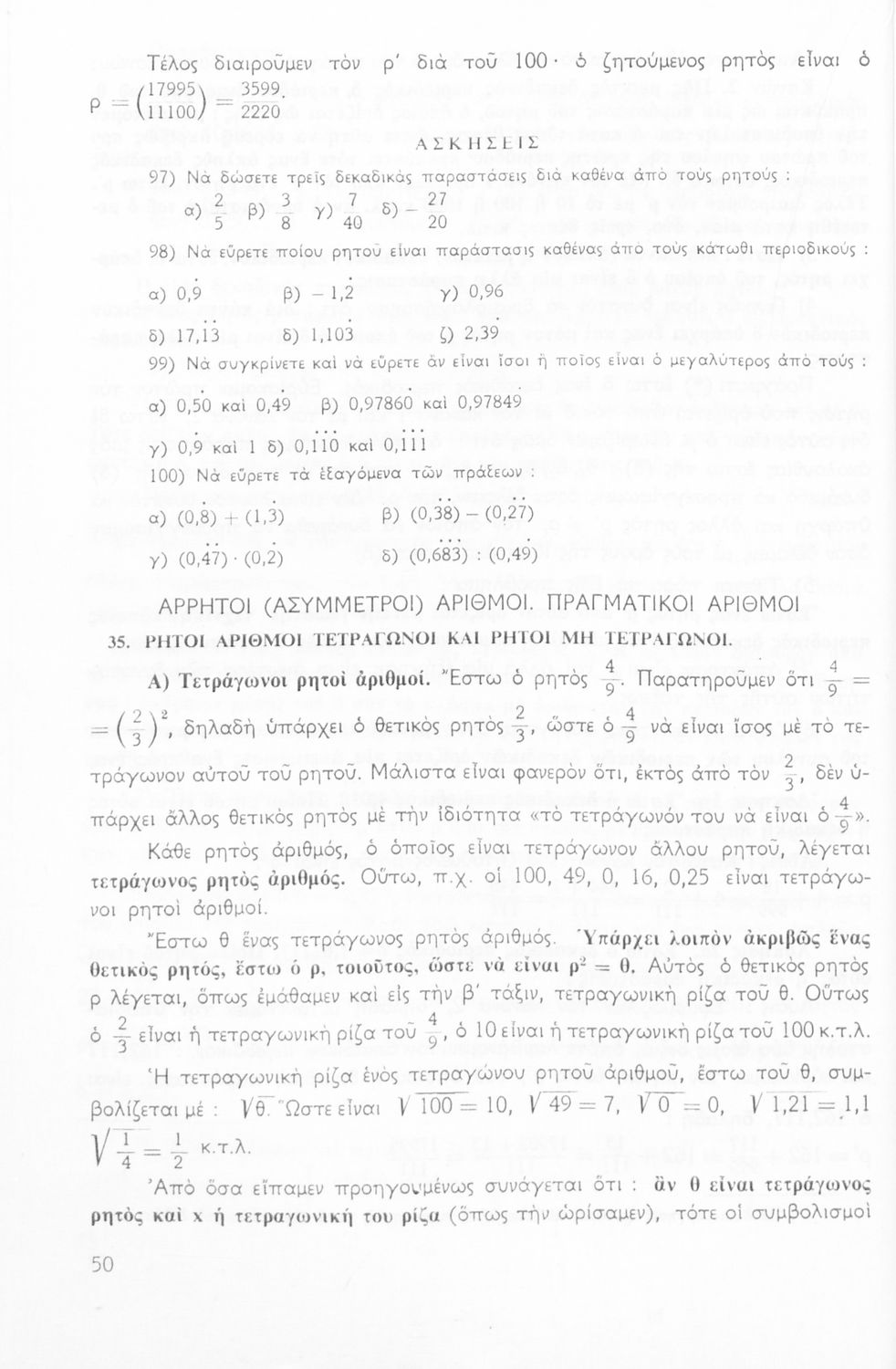 Σχολικό εγχειρίδιο Αριθμητικής για τις Α΄, Β΄, Γ΄ Γυμνασίου που είναι χωρισμένο σε ορισμούς και ασκήσεις και εστιάζει στις ιδιότητες των αριθμητικών πράξεων, τα κλάσματα και την τετραγωνική ρίζα.