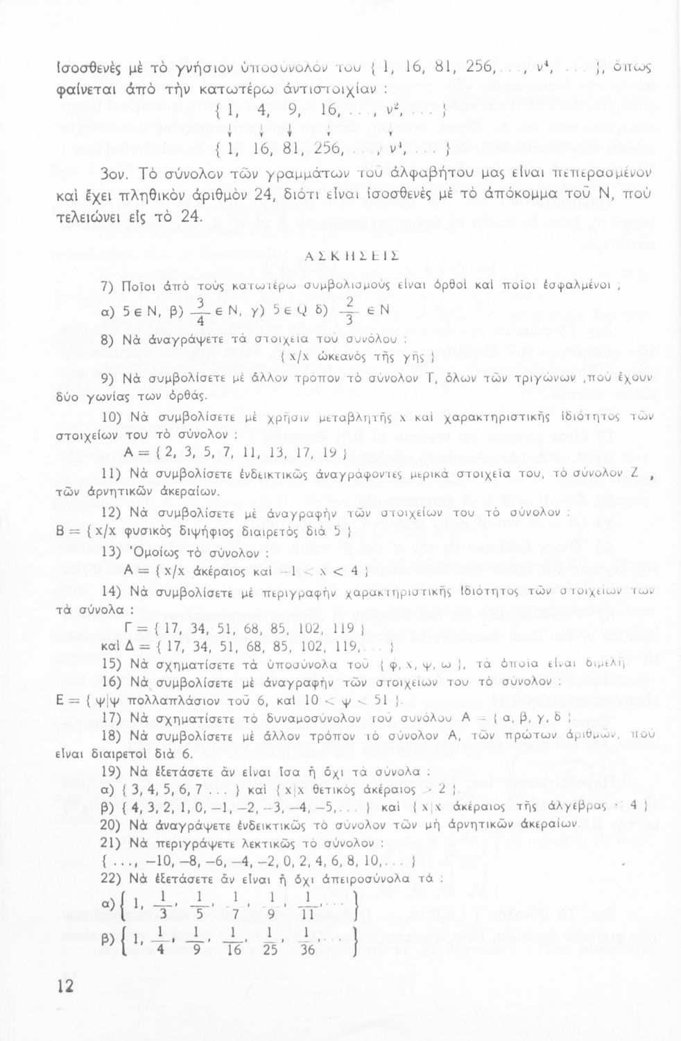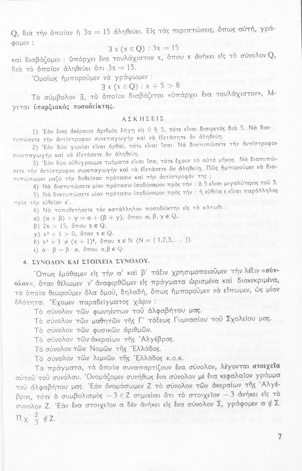 Σχολικό εγχειρίδιο Μαθηματικών Γ΄ Γυμνασίου που περιλαμβάνει θεωρία, παραδείγματα και ασκήσεις. Φέρει το σύμβολο της δικτατορίας.