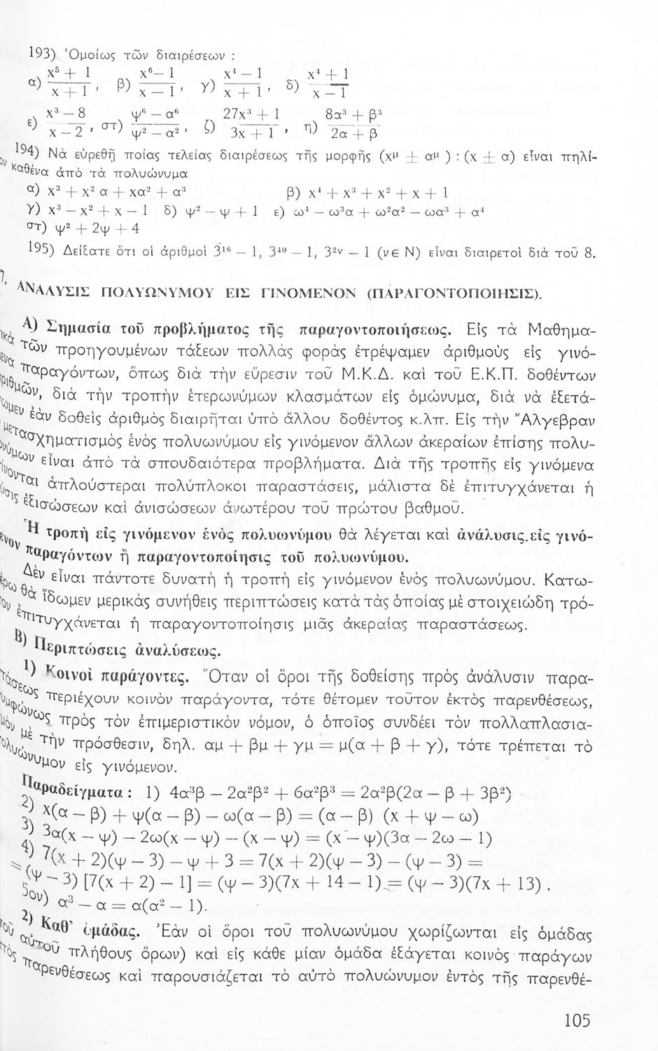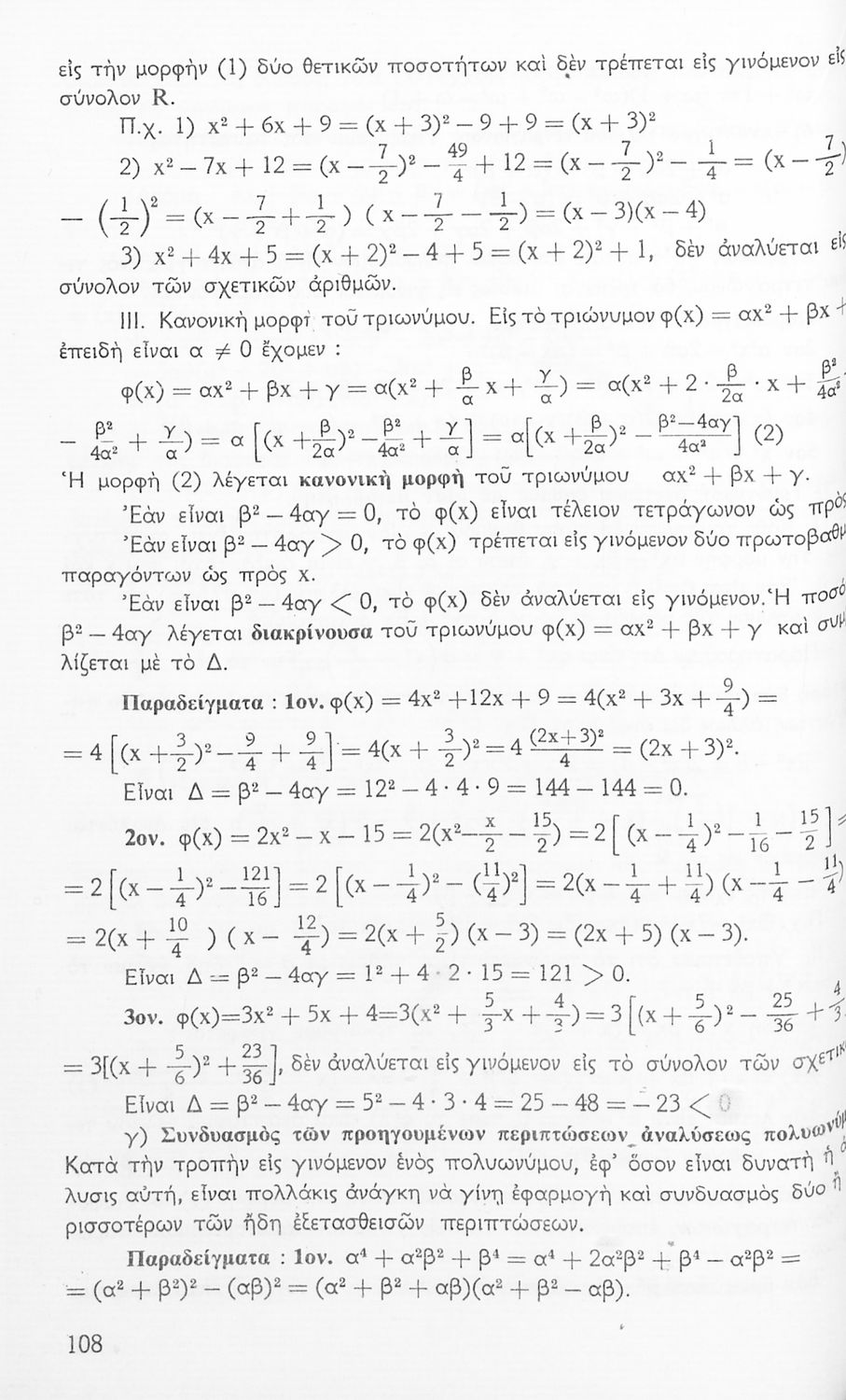 Σχολικό εγχειρίδιο Μαθηματικών Γ΄ Γυμνασίου που περιλαμβάνει θεωρία, παραδείγματα και ασκήσεις. Φέρει το σύμβολο της δικτατορίας.