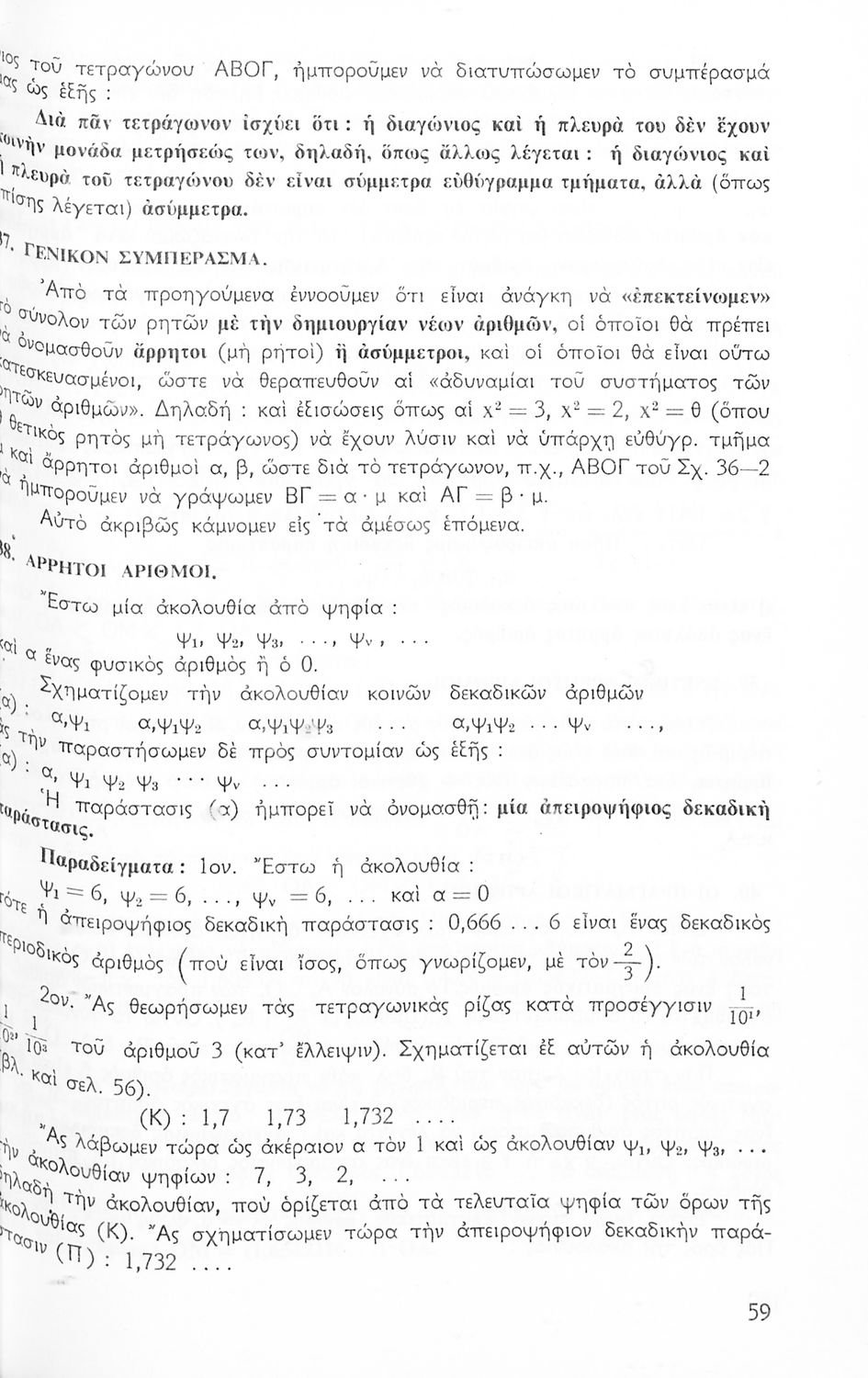 Σχολικό εγχειρίδιο της Γ' Γυμνασίου για το μάθημα των Μαθηματικών. Περιέχει τα σύνολα, τα όρια, δυνάμεις και ρίζες των πραγματικών αριθμών. Περιλαμβάνει θεωρία και ασκήσεις της τριγωνομετρίας.