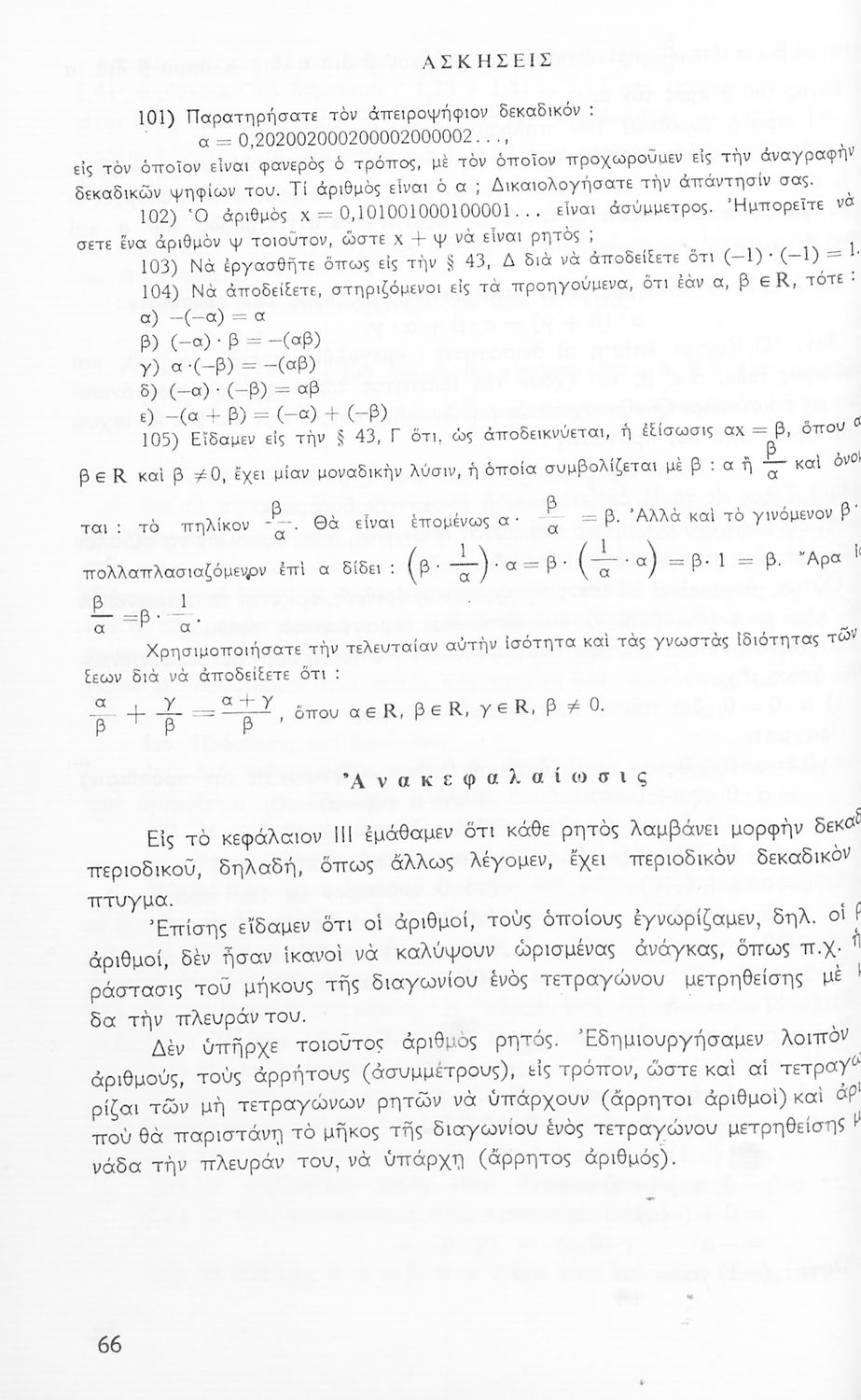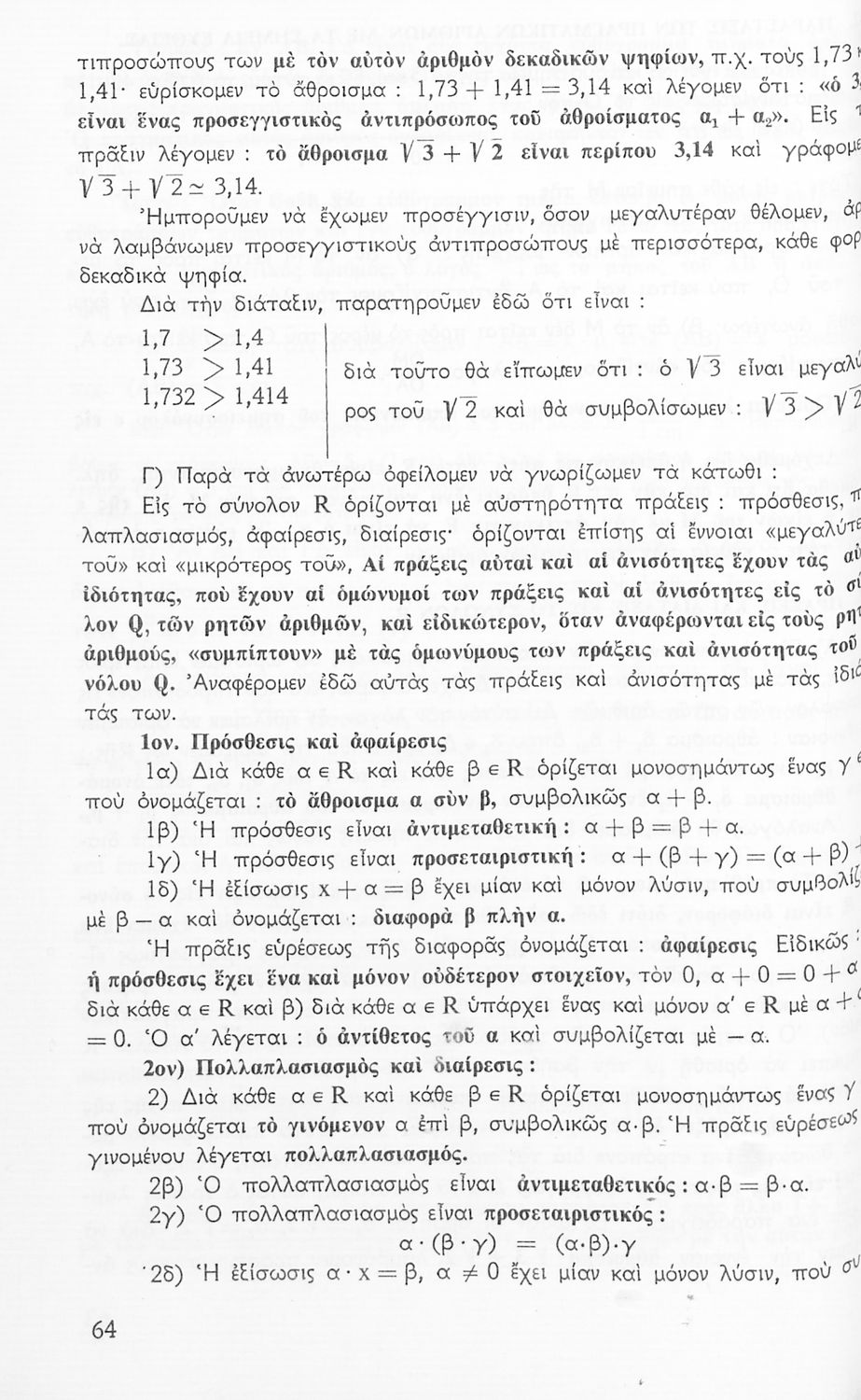 Σχολικό εγχειρίδιο Αριθμητικής για τις Α΄, Β΄, Γ΄ Γυμνασίου που είναι χωρισμένο σε ορισμούς και ασκήσεις και εστιάζει στις ιδιότητες των αριθμητικών πράξεων, τα κλάσματα και την τετραγωνική ρίζα.