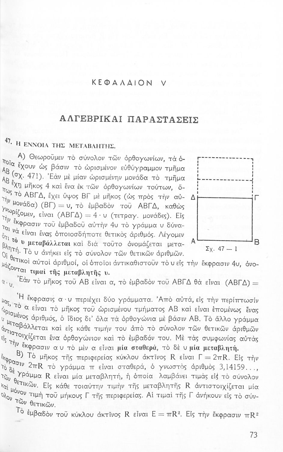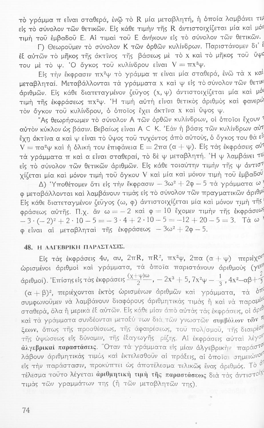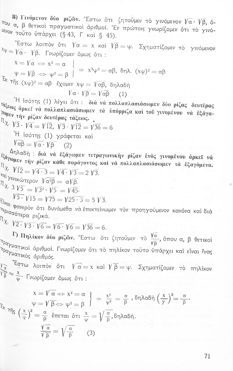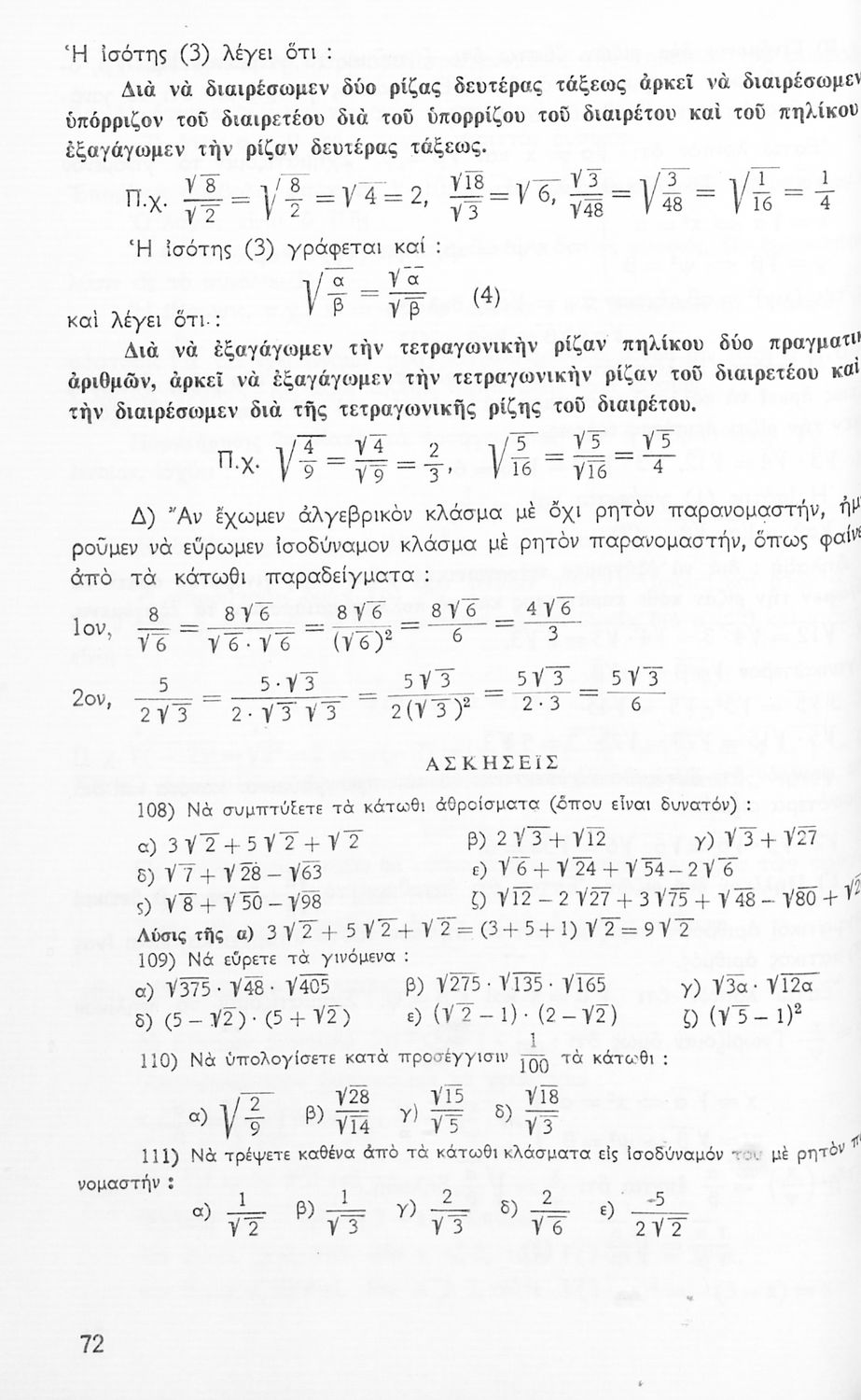 Σχολικό εγχειρίδιο Μαθηματικών Γ΄ Γυμνασίου που περιλαμβάνει θεωρία, παραδείγματα και ασκήσεις. Φέρει το σύμβολο της δικτατορίας.