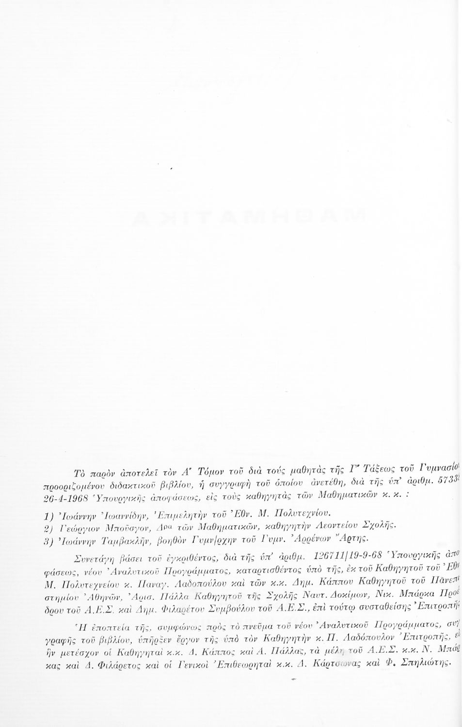 Εκδότης: Οργανισμός Εκδόσεως Διδακτικών Βιβλίων Έτος έκδοσης: 1968 Τόπος έκδοσης: Αθήνα Έκδοση: 1η Υπουργική απόφαση / Σύμβαση: 1786/12-10-1968 Έτος έγκρισης: 1968 |